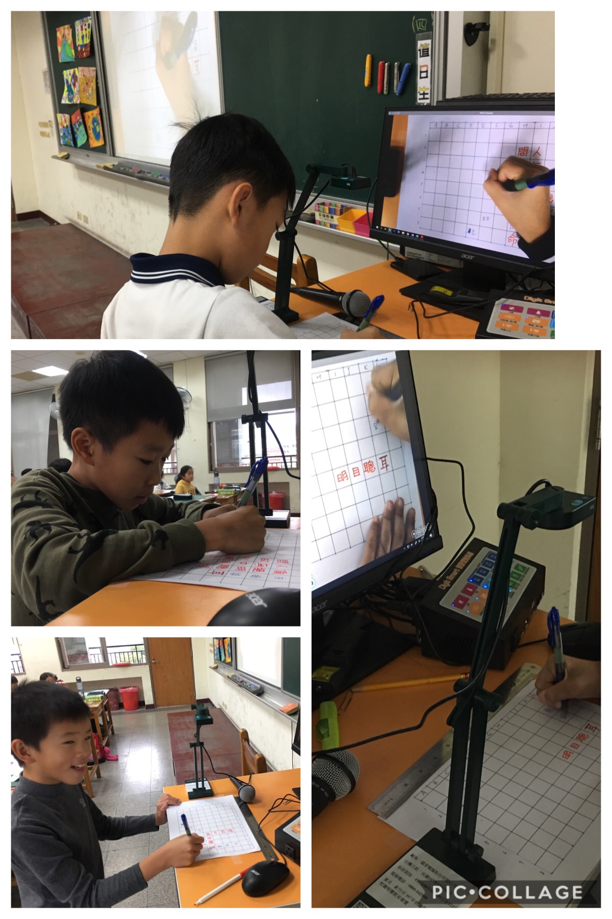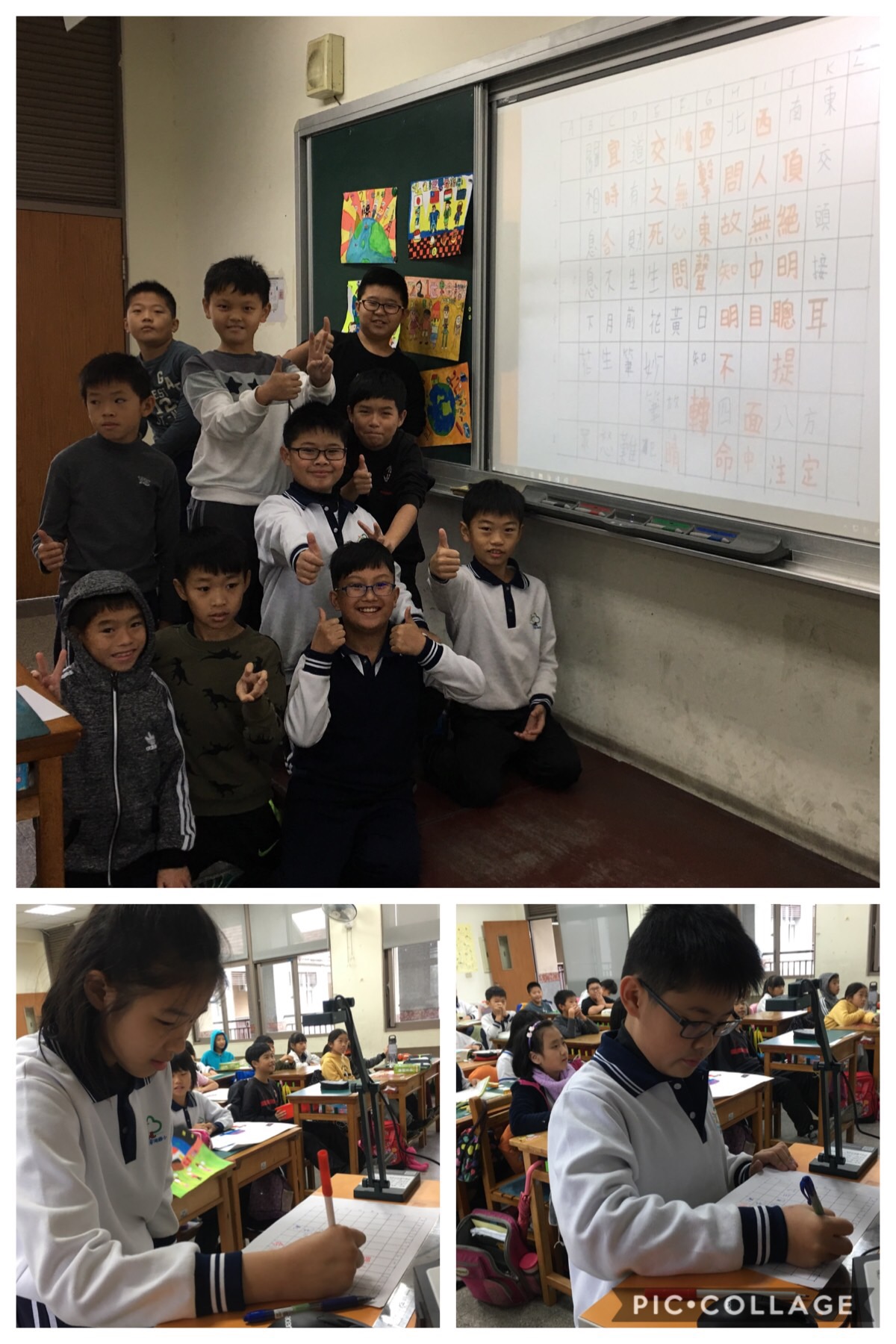 因為是男女分組的PK賽,所以孩子們參與度極為熱烈,每一個人都卯足全力想為自己的小組加分,爭取榮譽。老師先在格子內寫上「耳」這個字,接著男女雙方猜拳,女生選擇優先進行,第一個成語「耳聰目明」就透過實物投影機清晰呈現於全班的眼前,接著男孩子也很快速地填上「聰明絕頂」,陸陸續續格子內被妙筆生花、目不轉睛、明日黃花、交頭接耳等等成語給填上,就在最後關鍵時刻,因為格子數越來越少,可以填寫的成語也就變少,最後男生們驚險勝出,喜悅之情溢於言表。班上的孩子們從三年級開始,每日一成語的累積,到了四年級之後,對於成語的敏銳度有顯著的進步,從中年級開始積累孩子們的成語量,對於寫作也會有不小的幫助呢!透過語文遊戲,老師也發現孩子對於成語的學習會更感興趣,這種寓教於樂的方式,真是期末活動的不錯選擇喔!