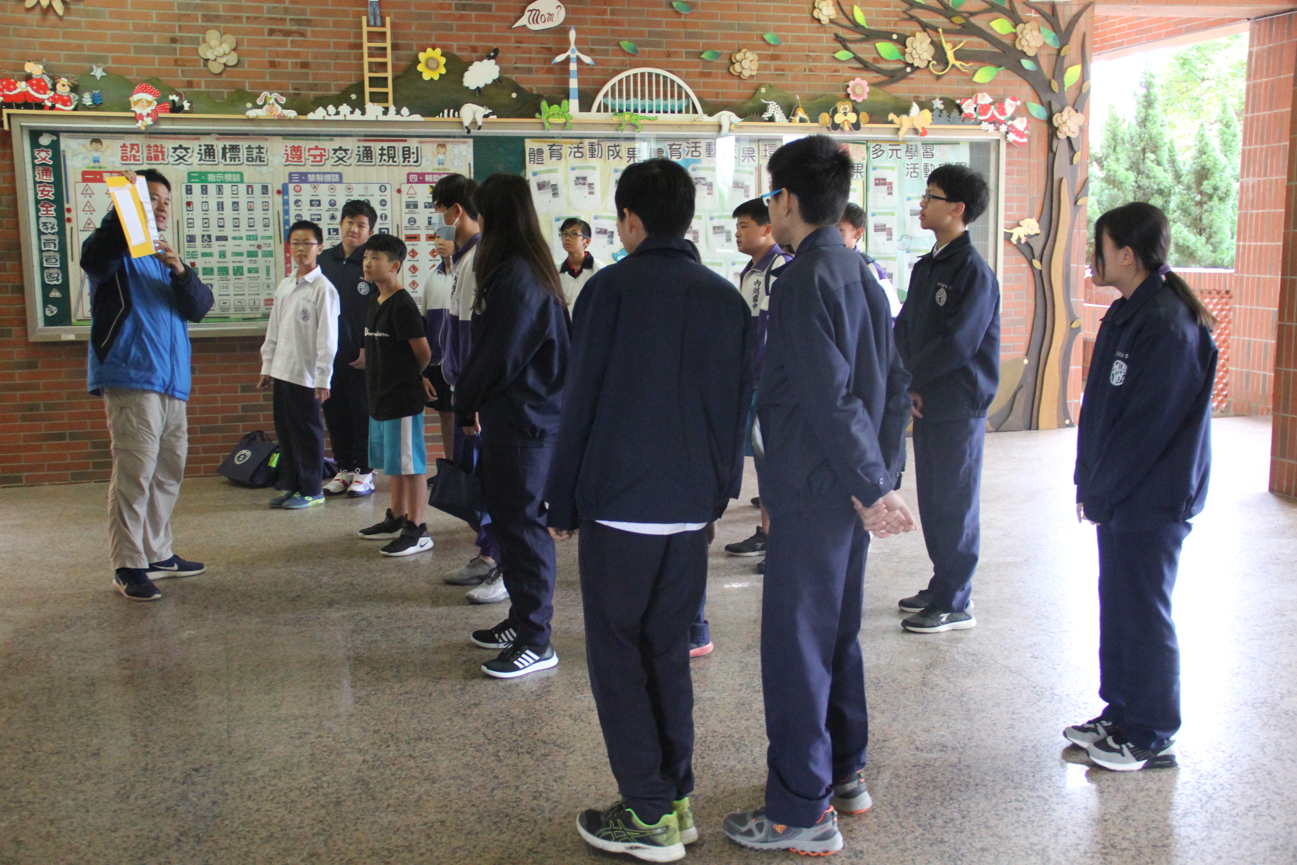 本校積極推動交通安全教育,除學校教師參與上放學導護工作外,另遴選學生協助擔任交通糾察隊,以協助導護老師進行路口指揮執勤。於108年2月11日針對本學期18位學生辦理交通糾察隊培訓,讓參與同學除瞭解值勤時的要領外,也強化了交通安全的觀念。