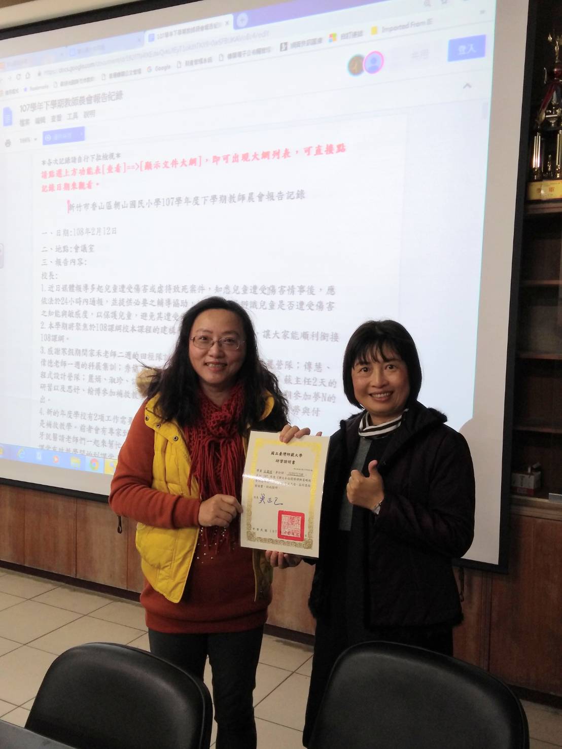 朝山國小優秀而認真的莊麗娟老師,為了在國小階段幫孩子打好閱讀理解的能力,參加臺灣師範大學《課文本位閱讀理解策略教學進階課程》並取得認證。同樣非常重視孩子閱讀能力的趙子儀老師和賴淑珍老師也分別獲得了閱讀策略的初階及進階課程認證。