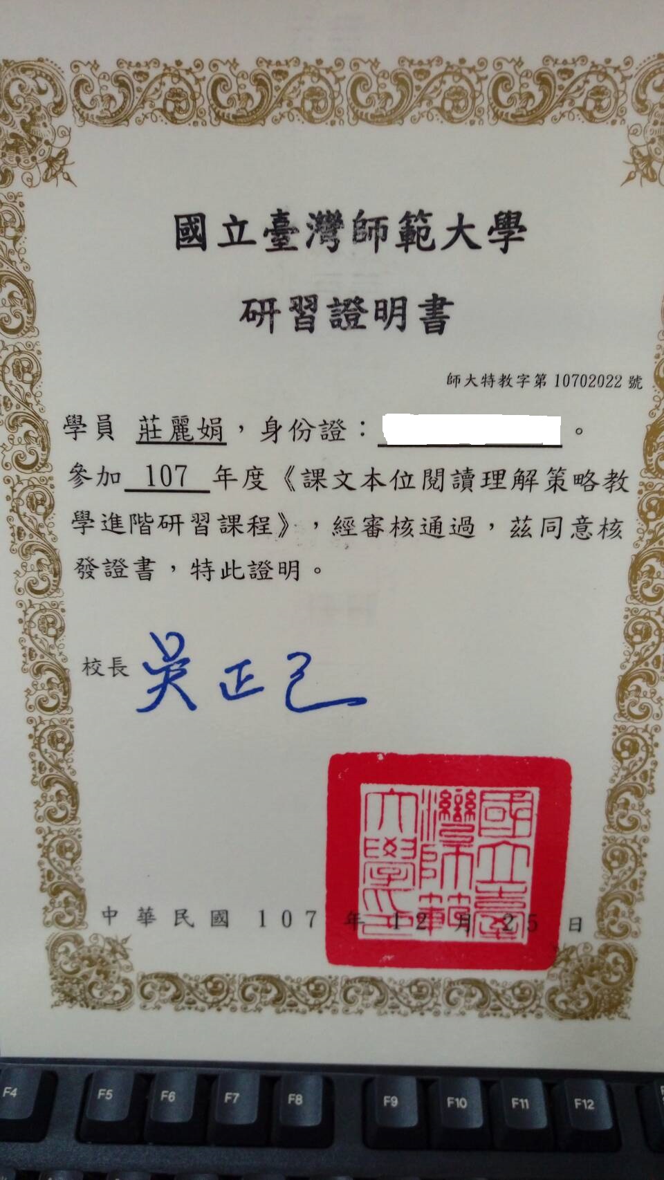為學生而學系列-恭喜莊麗娟老師取得閱讀理解進階認證