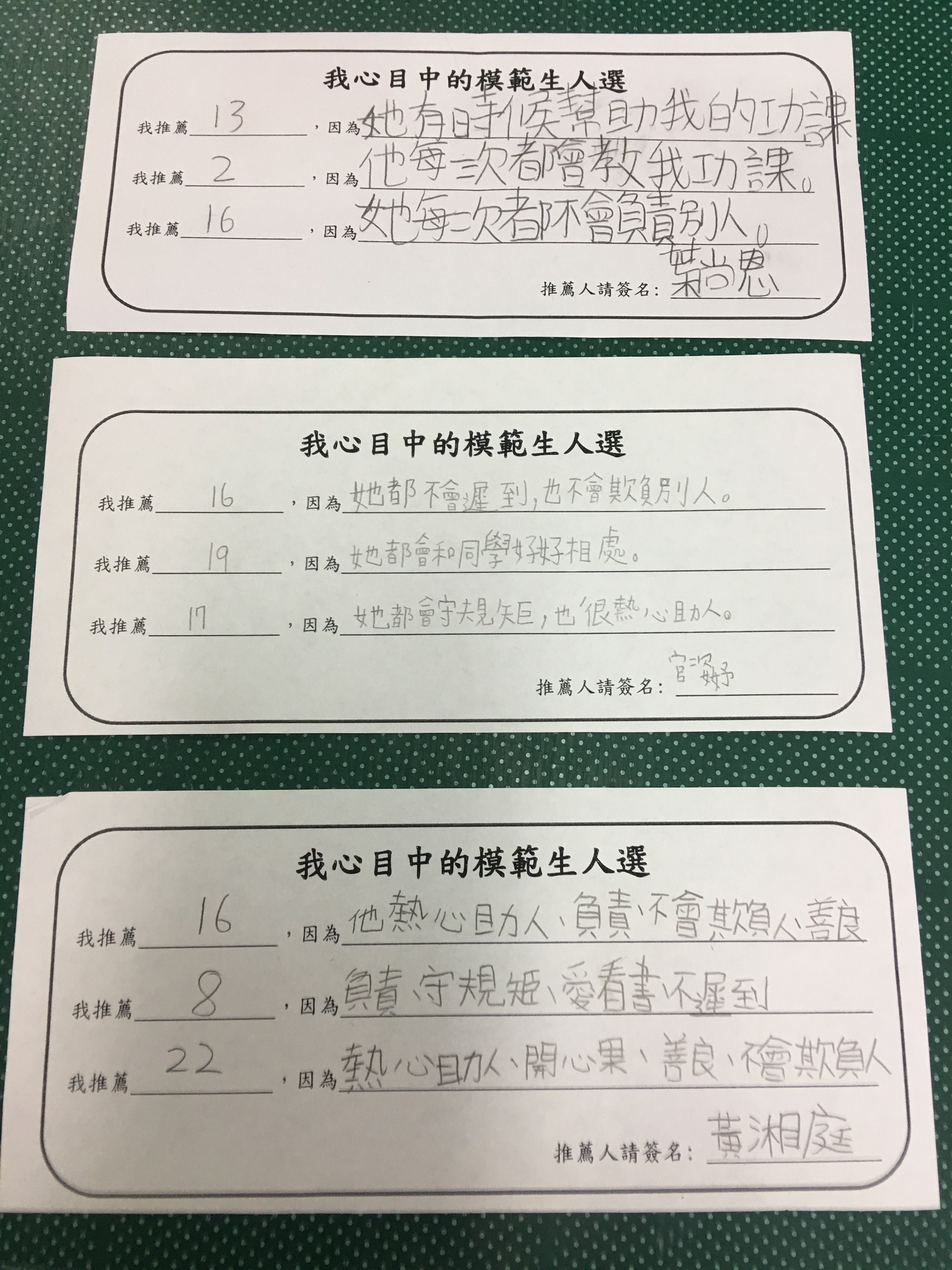 以往模範生選舉大多是同學提名,大家投票表決,或是老師決定,但是除了決定出模範生名單,選舉模範生也是可以讓學生在過程中有所學習。