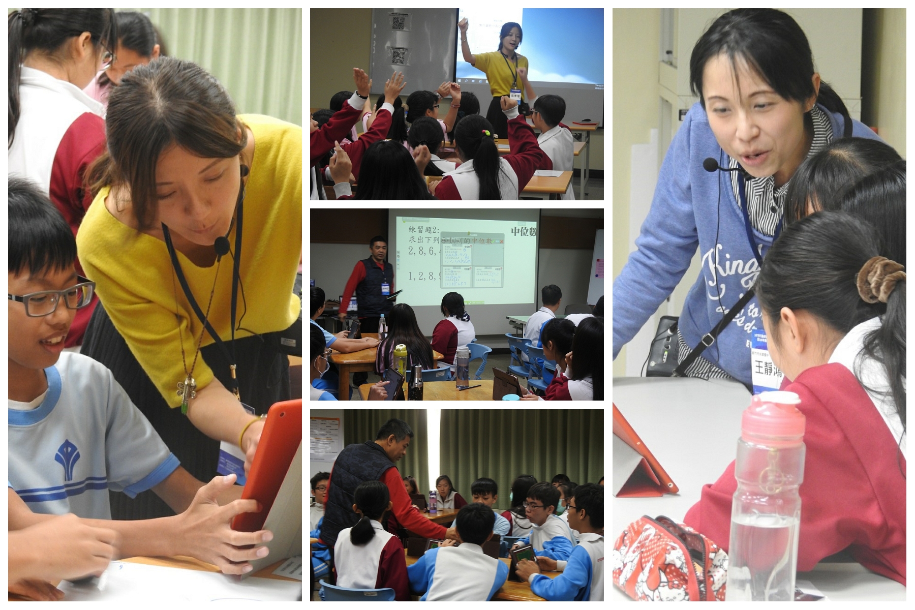 映吾組長在課堂中,以教授中位數概念,利用Hilearning系統跟現場高雄市中山國中的學生即時互動,學生小組作答以競賽式呈現在電子布幕,並且立即性解說學生所呈現的迷思,做到傳統式教學少能呈現的小組即時性回饋。
