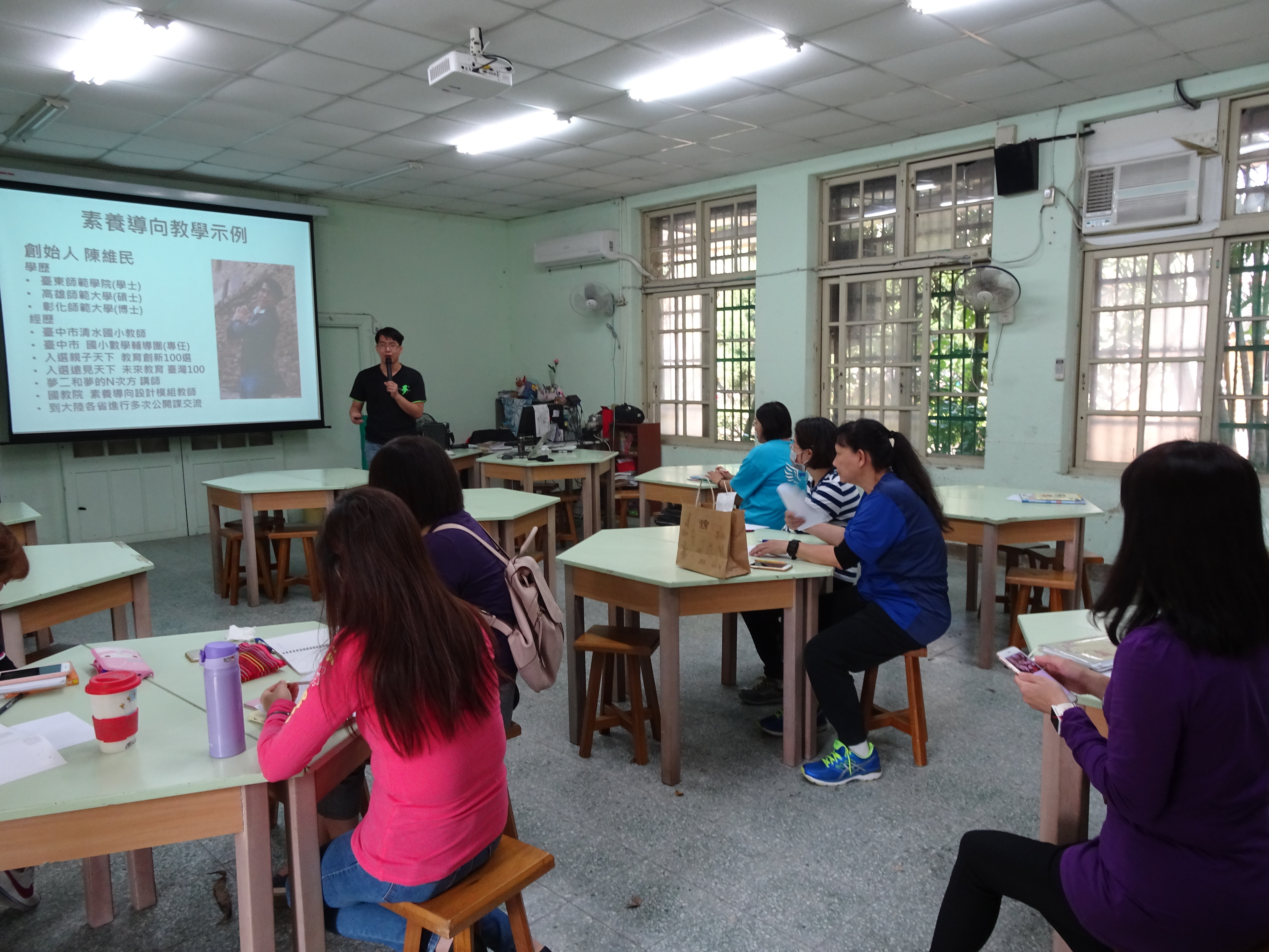 本週三下午教師進修時間,竹小邀請了臺中市清水國小陳維民老師到校,與老師們分享數學概念的教學。維民老師深耕數學領域多年,豐富的教學經驗讓他在數學教學上發展一套教學模組,12年國教強調素養導向的教學,維民老師也無私的分享不同數學概念的教法,讓參與研習的老師們親自實作,體驗老師在課堂中是如何「佈局」,引導學生一步步投入在數學的思考陷阱中,進而讓孩子主動發現數學的概念,體驗數學學習的樂趣。老師只要透過一點點教學方法的轉變、提問方式的轉變,就可能改變數學的課室風景,本次的研習讓與會的老師們受益良多。