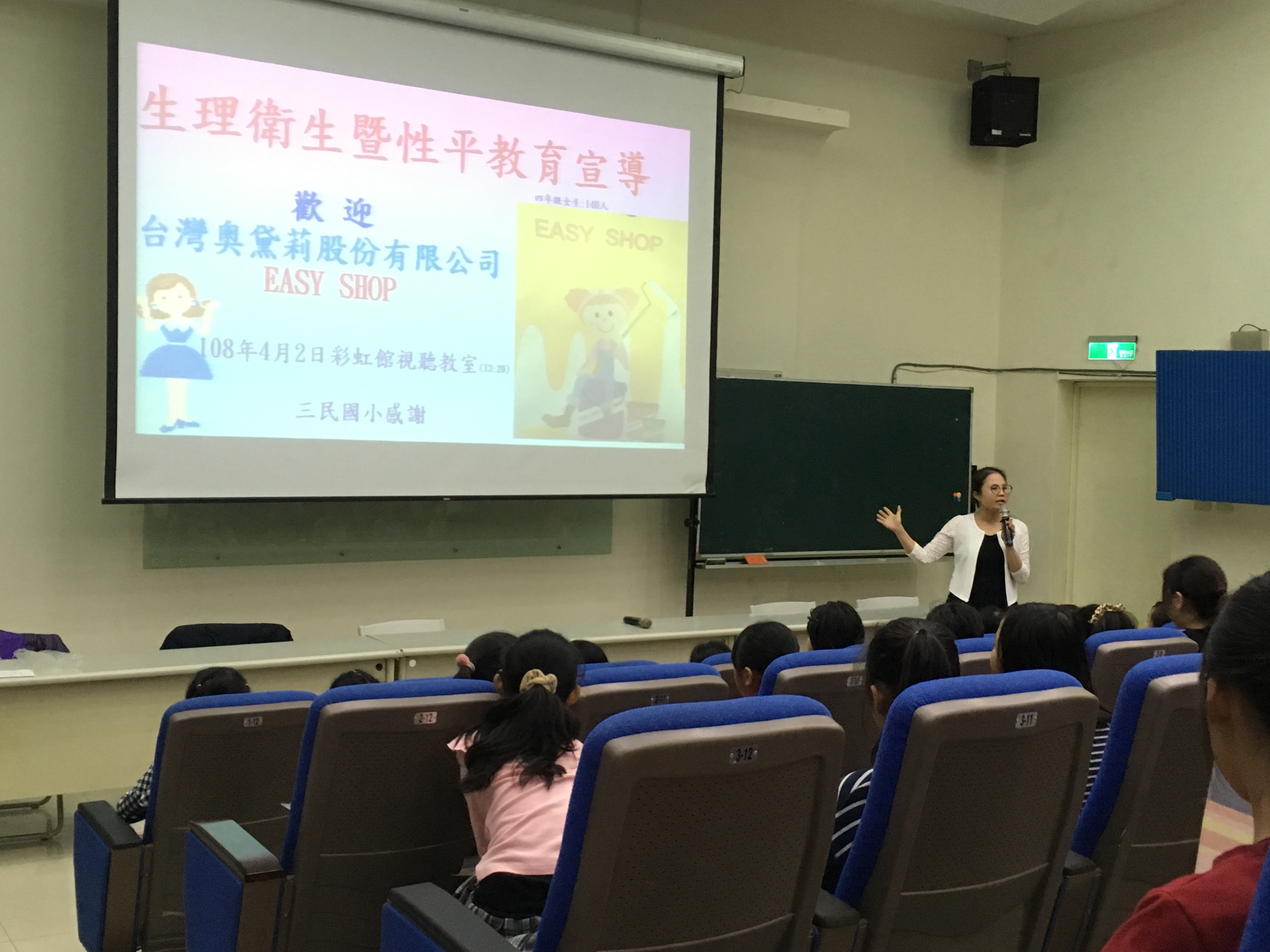 本校於108年4月2日辦理性教育暨生理衛生宣導講座,對象為四年級女學童,進行青春期生理衛生宣導。讓孩子們認識青春期生理特徵,當胸部開始發育時能夠適時穿上貼身內衣,在月經來潮時能正向面對,正確清潔身體以及衛生棉使用方法。孩子們認真學習,同時為了維護廁所環境衛生,避免馬桶管線阻塞,呼籲學童不要將用過的衛生棉丟進馬桶。