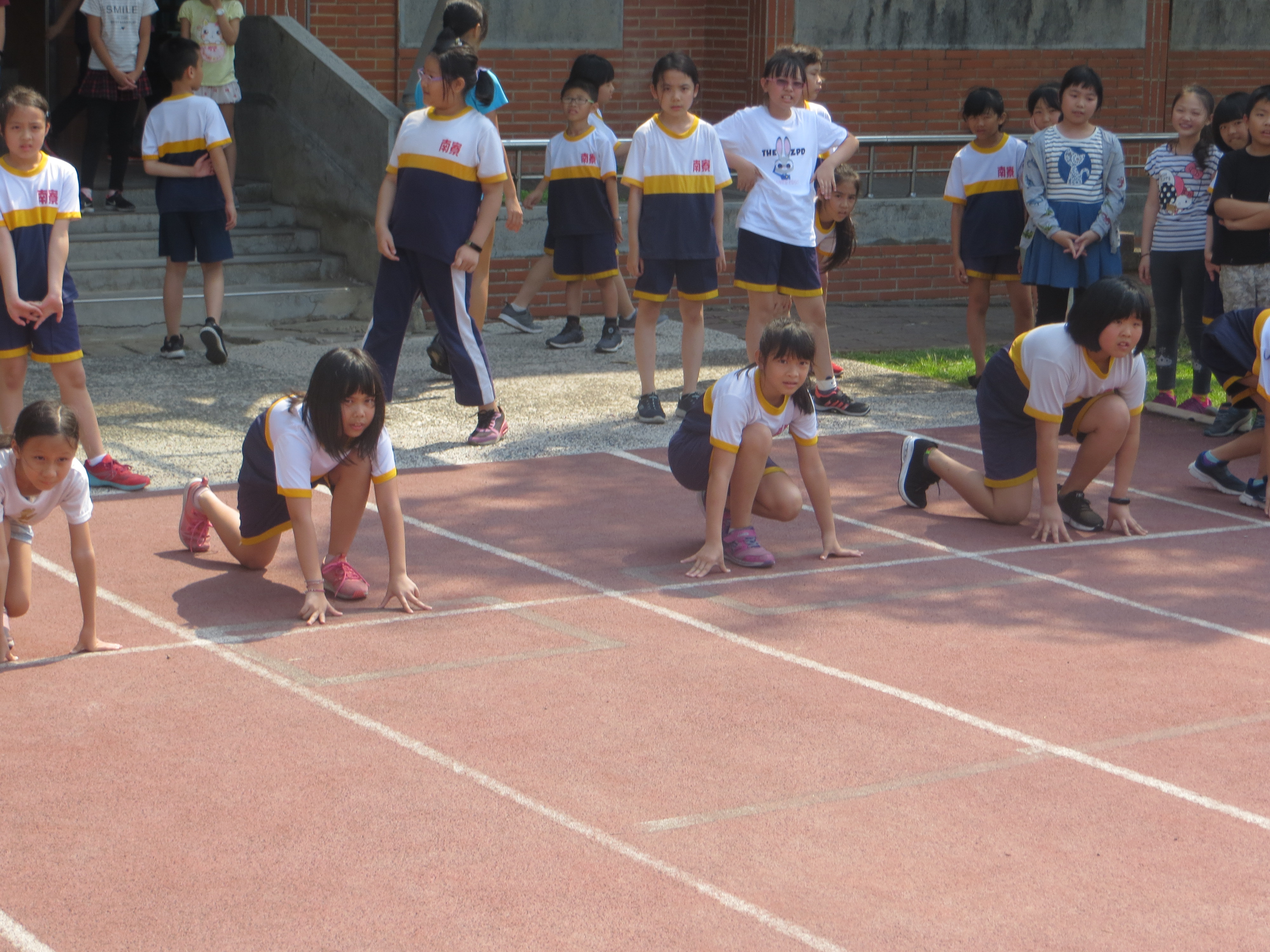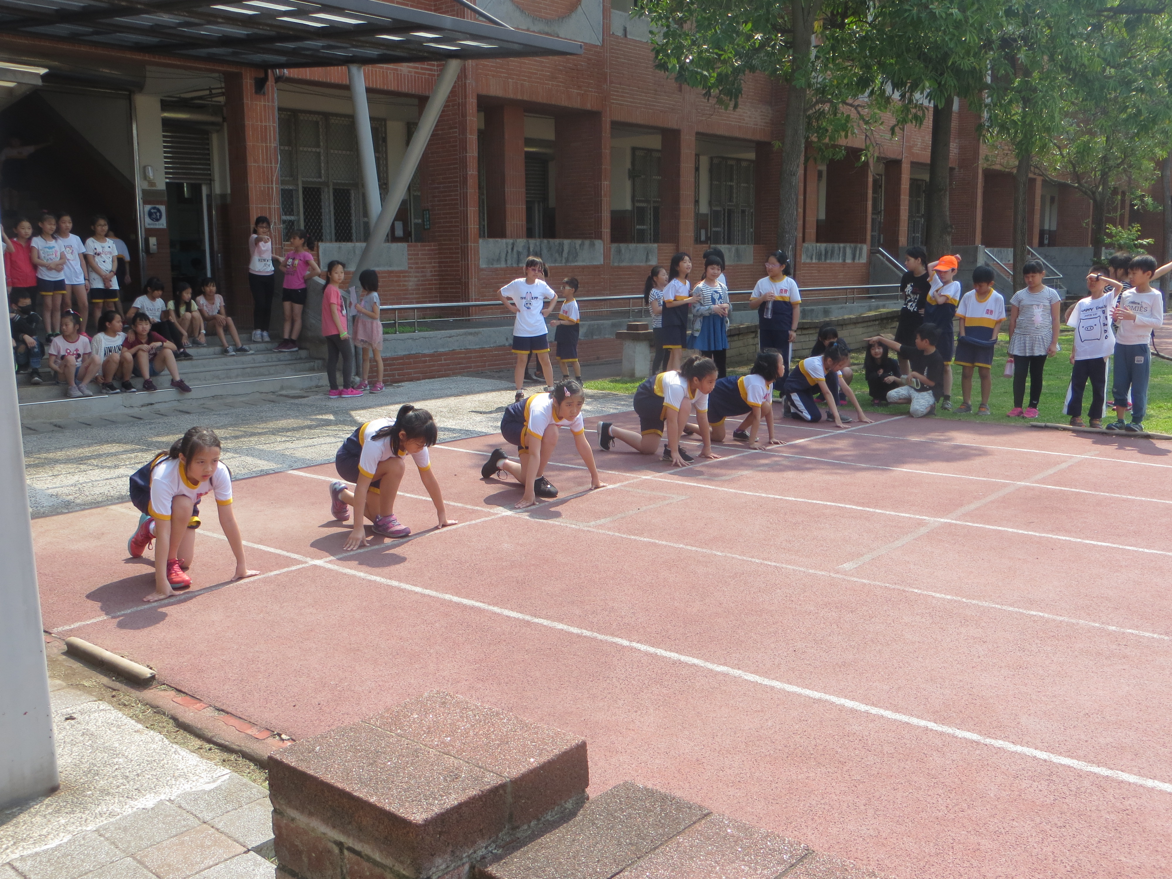 本校預計於5/4舉辦校慶運動會,在校慶前的一個月進行例行的體育季個人徑賽,今天舉辦三年級60公尺的預賽,預賽每班各派男女六人,所以預賽男女各有六組,每組取前一名晉級決賽,因三年級在校慶當天的活動為感恩表演,故在選手們休息片刻後馬上進行決賽。
