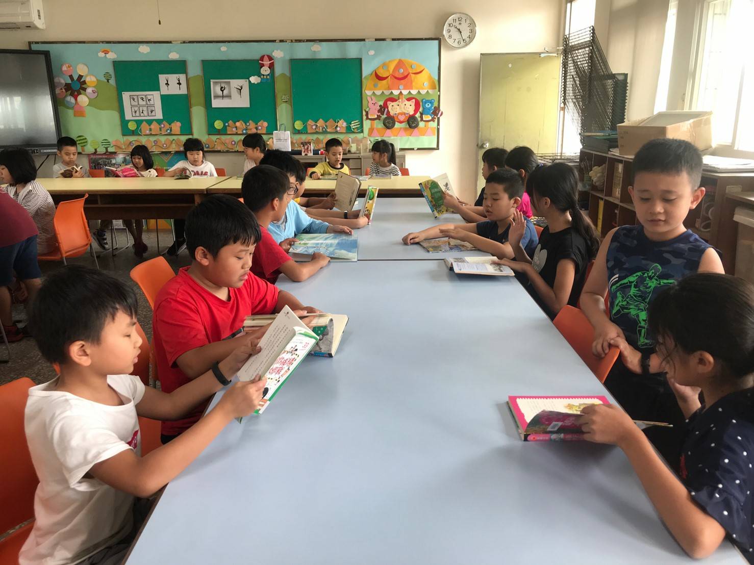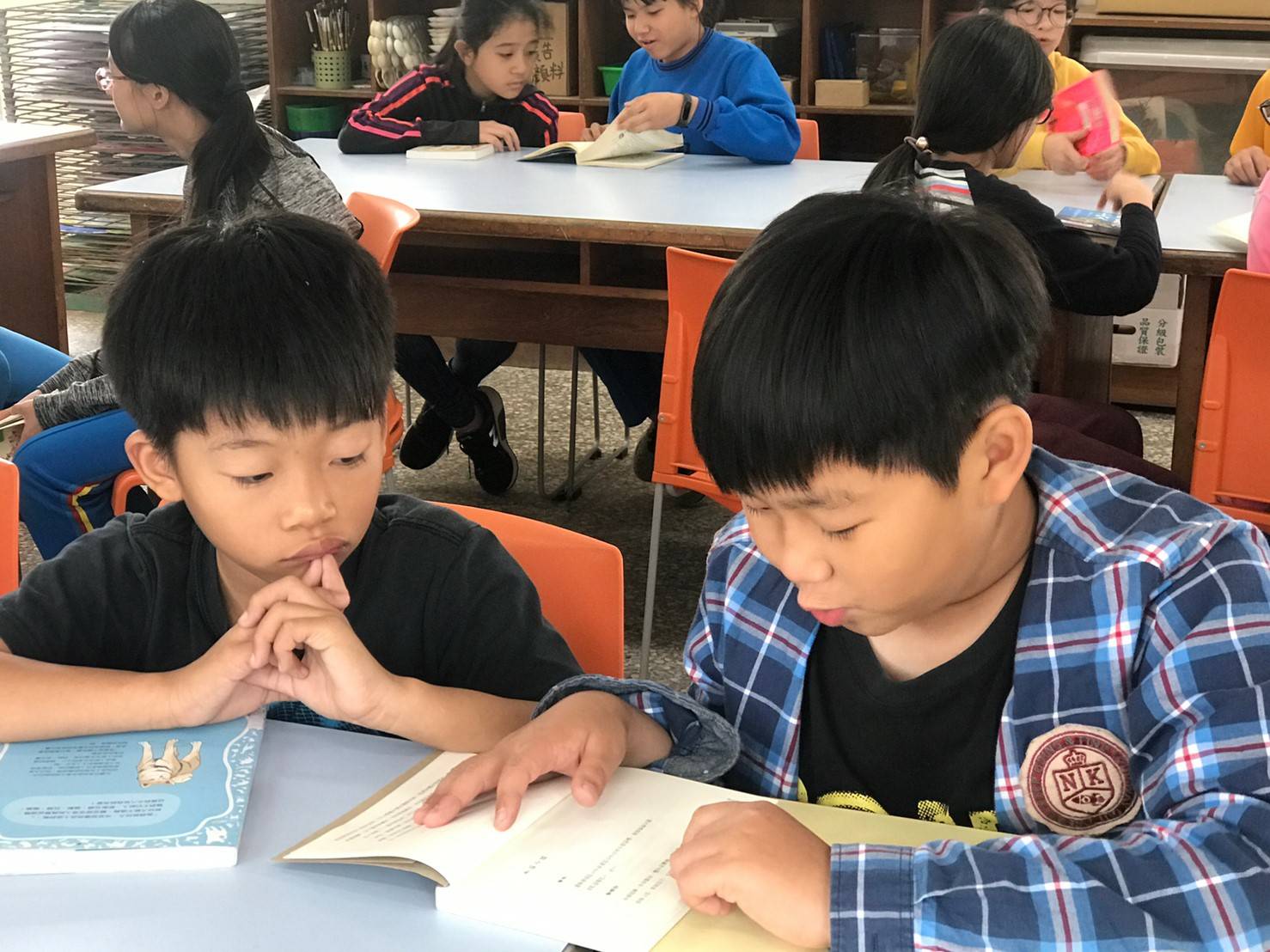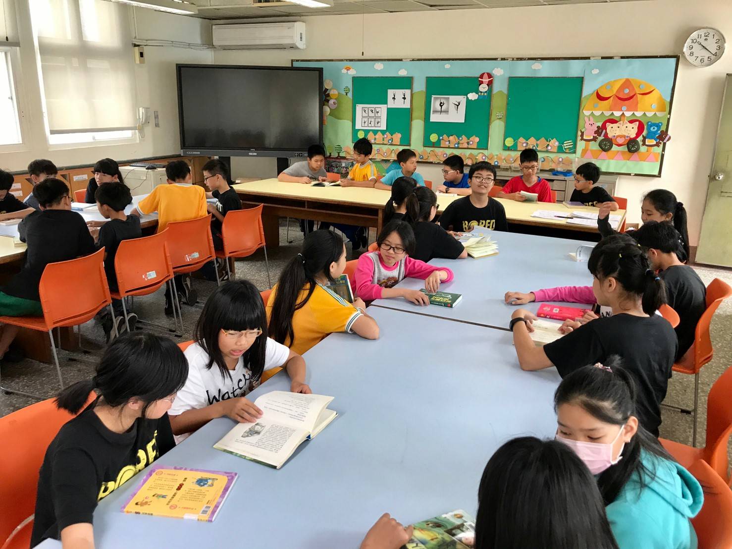 固定周間的課間活動,由各年級在下課時拿著自己的共讀書,在綜合教室內相互討論著書籍的內容及心得感想。