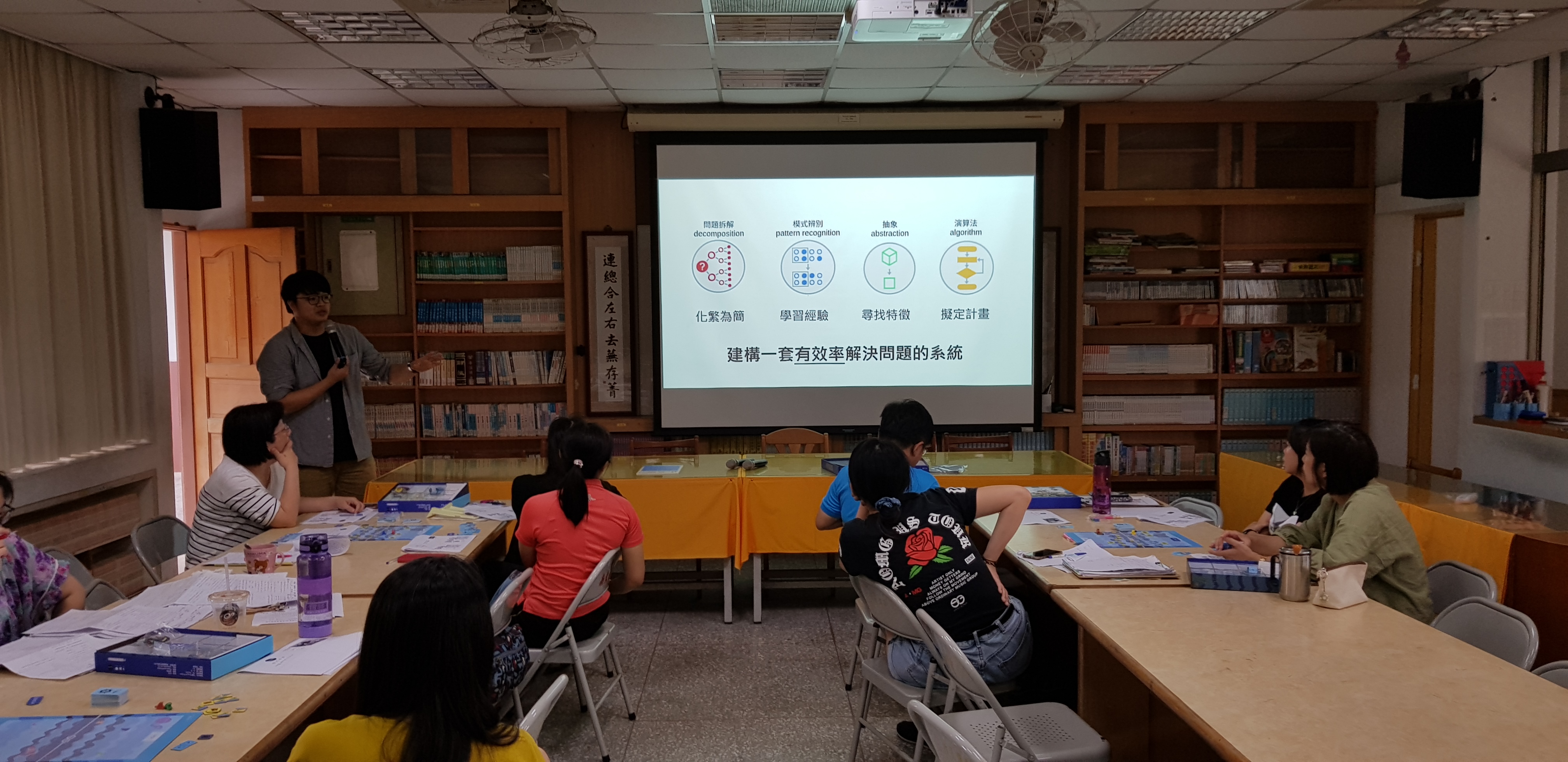 本週三下午,幸邀請到交通大學海霸桌遊創作者團隊一員---柳昱謙高材生至本校帶領 海霸桌遊,在108課綱即將上路的同時,我們希望老師們手上能擁有更多樣化的教學工具,帶領孩子往素養導向學習,唯有正確的邏輯思考,任何事情與困難方能迎刃而解!期望大家能將運算思維運用於生活之中,進而創造屬於自己的精采生活。