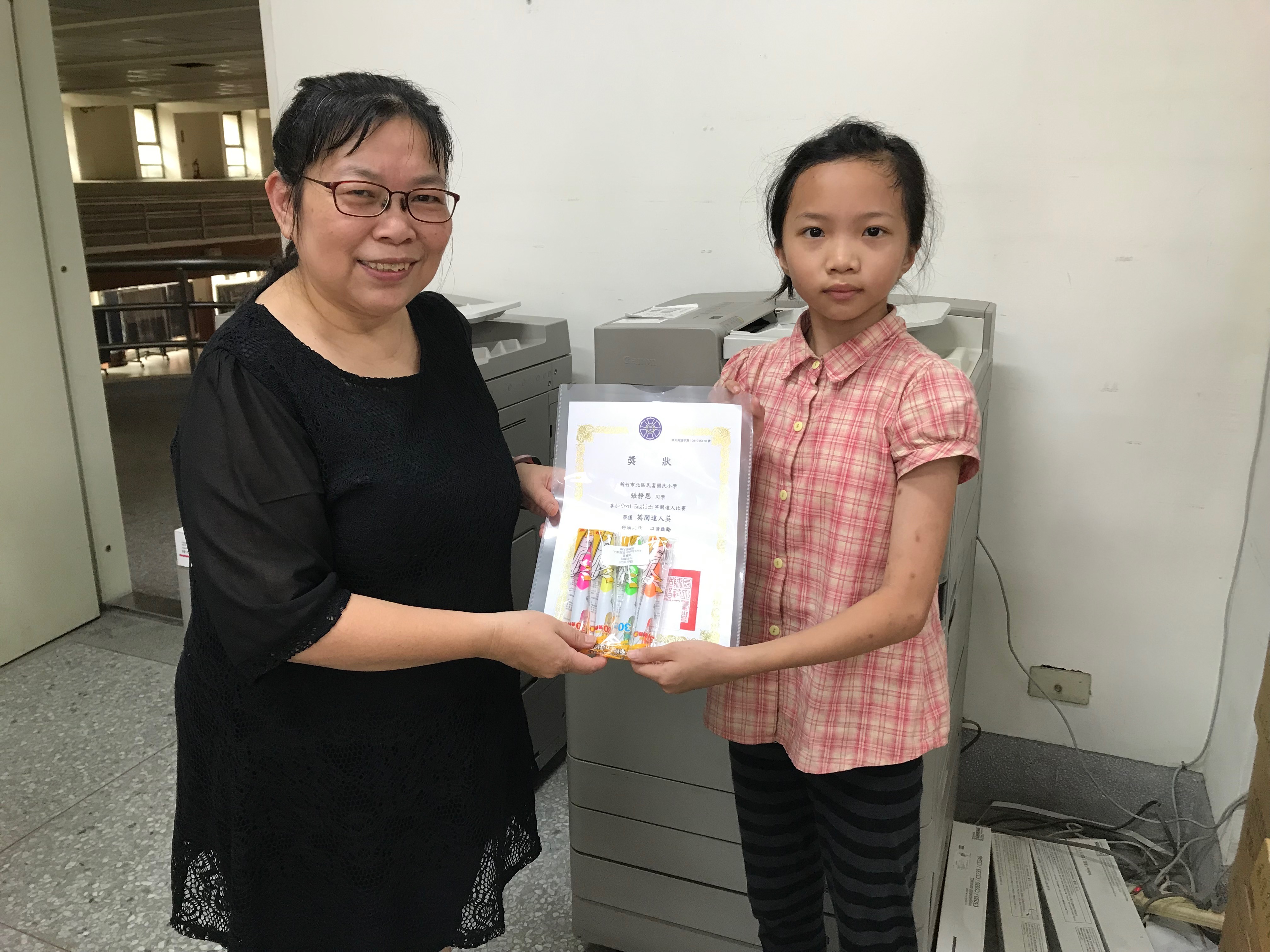 本校六年勇班張靜恩同學平時喜愛閱讀,也積極參加各項與閱讀相關的活動,這次挑戰臺灣師範大學「Cool English平台」比賽,榮獲英閱達人獎,榮獲獎狀一只及獎品一份,值得作為大家的榜樣!