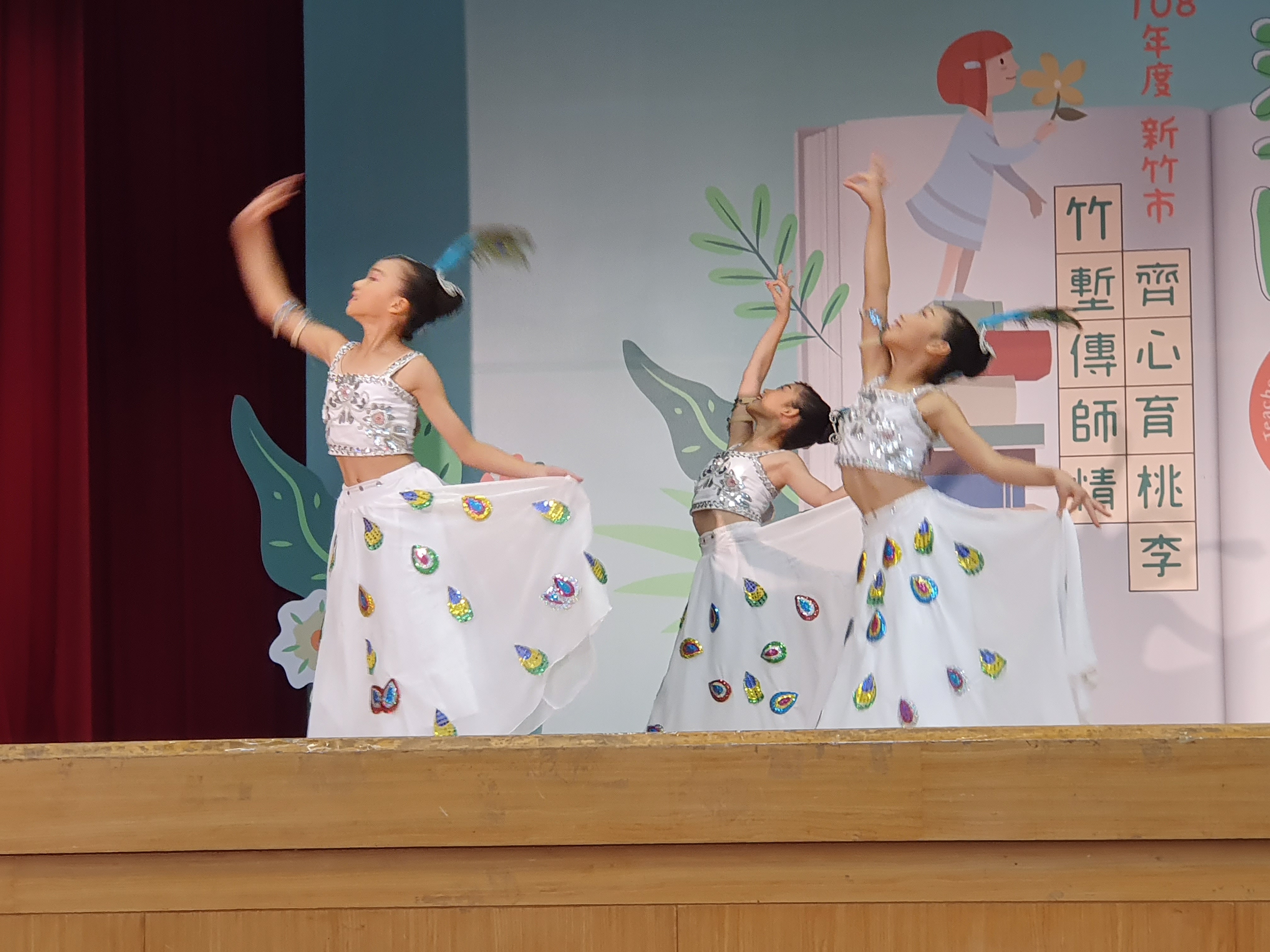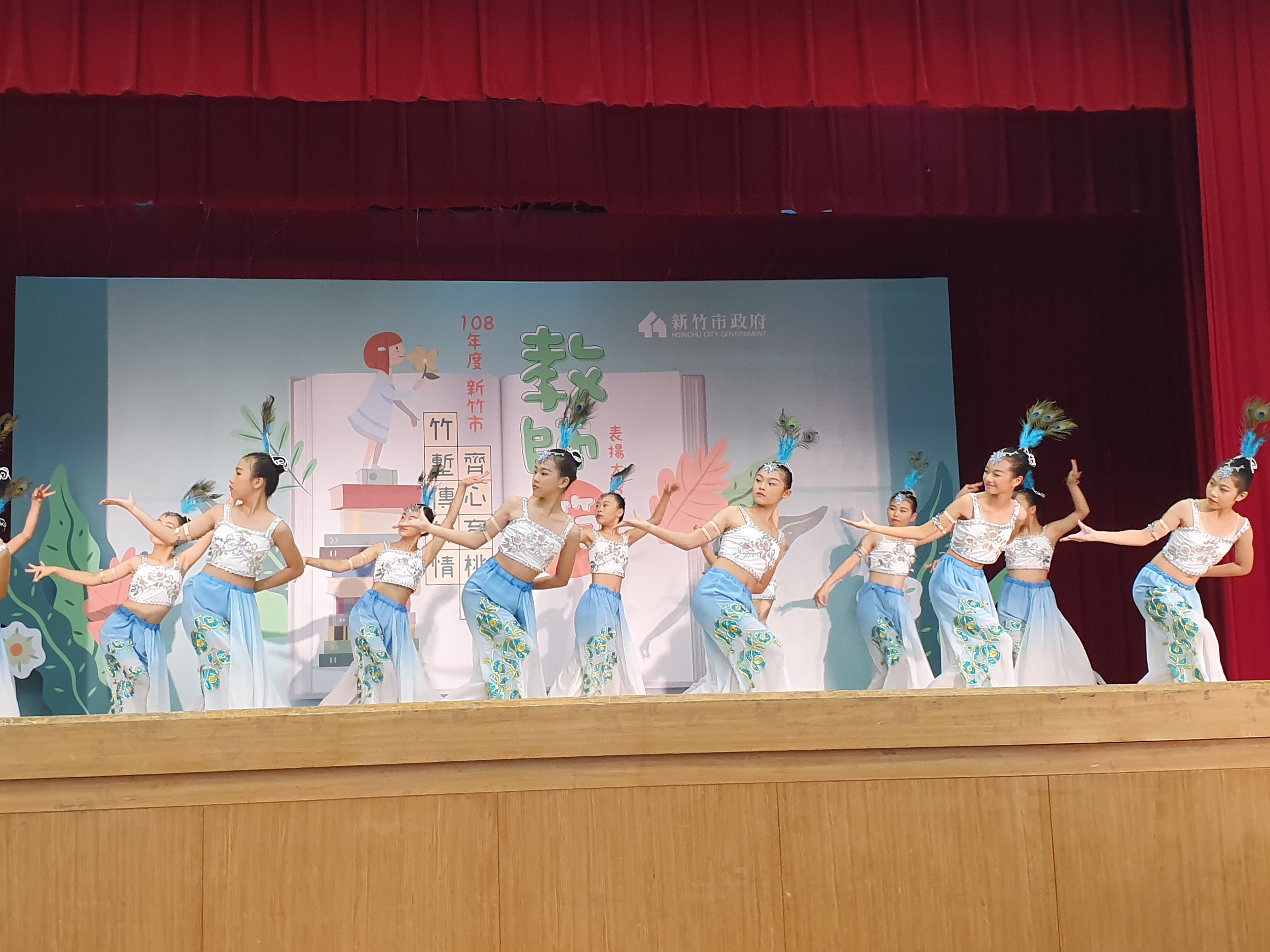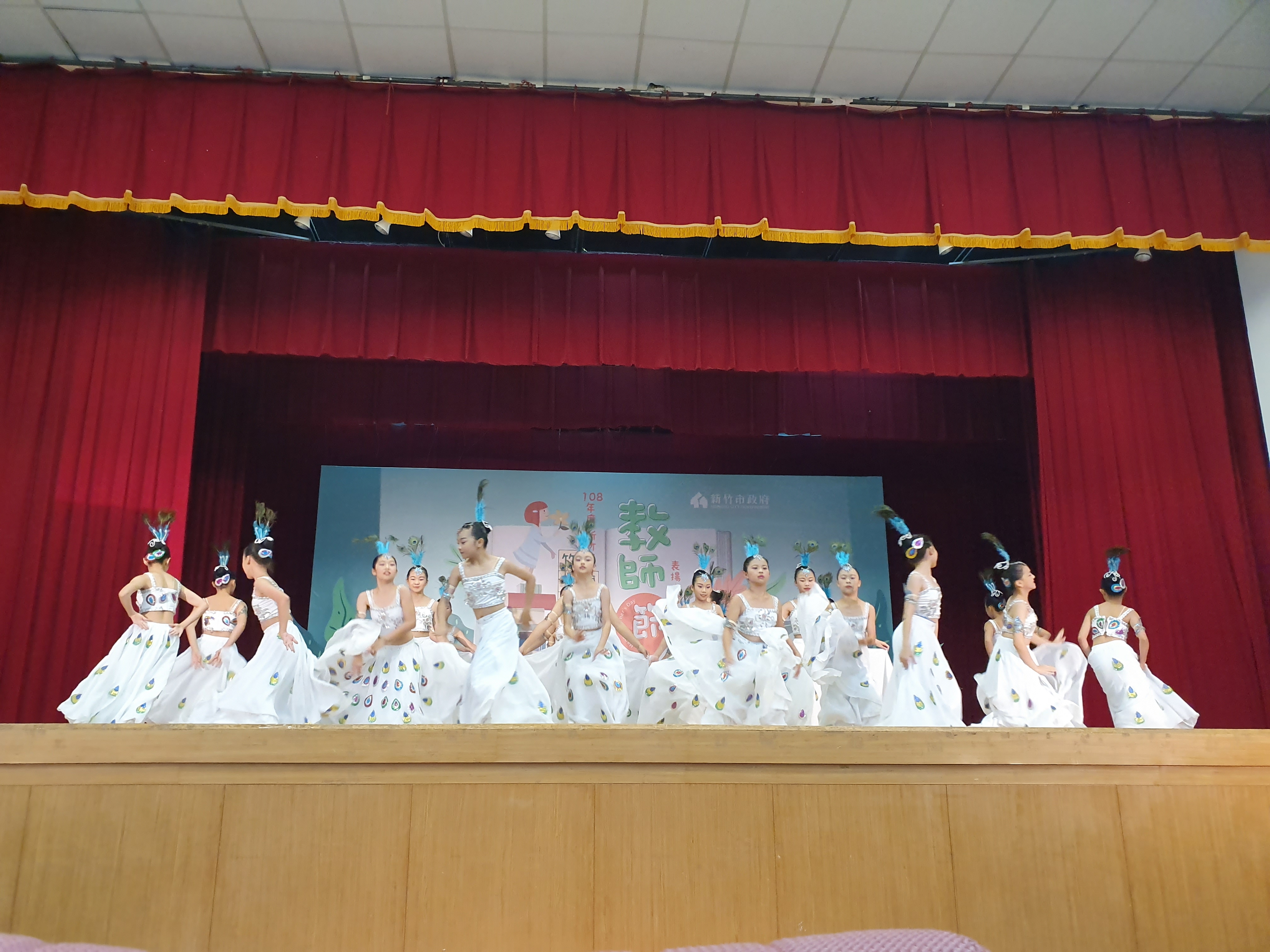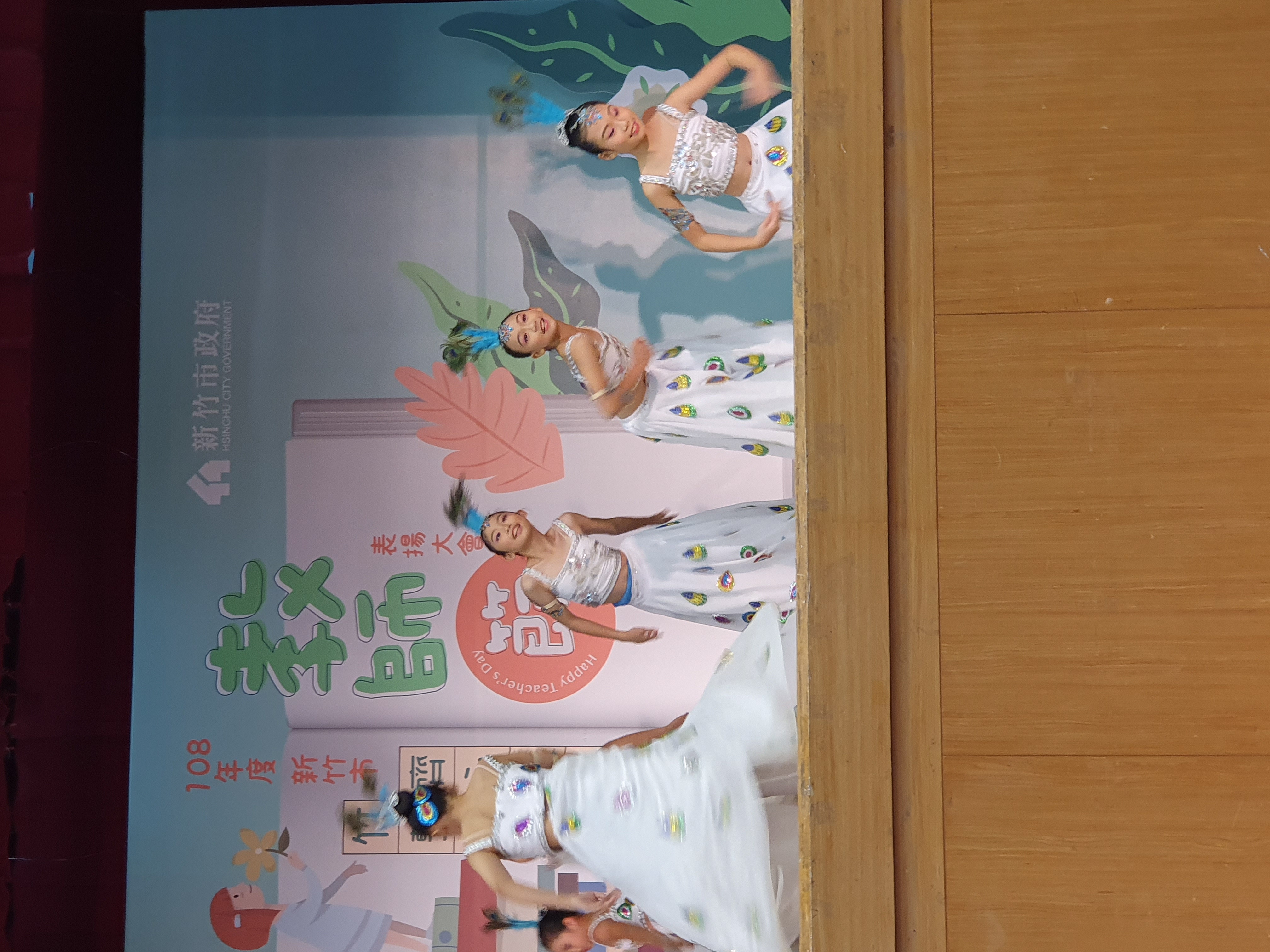 108年度新竹市教師節表揚大會,於昨(108.09.25)下午在市府綜合大禮堂舉行。感謝承辦學校新竹國小邀約民富舞蹈班開場表演,曼妙的孔雀舞深深的祝福,獲得在場貴賓的如雷掌聲,謝謝舞蹈班六勇孩子們精彩演出,謝謝舞蹈班後援會家長鼎力協助,謝謝舞蹈班術科郭淑青老師指導。