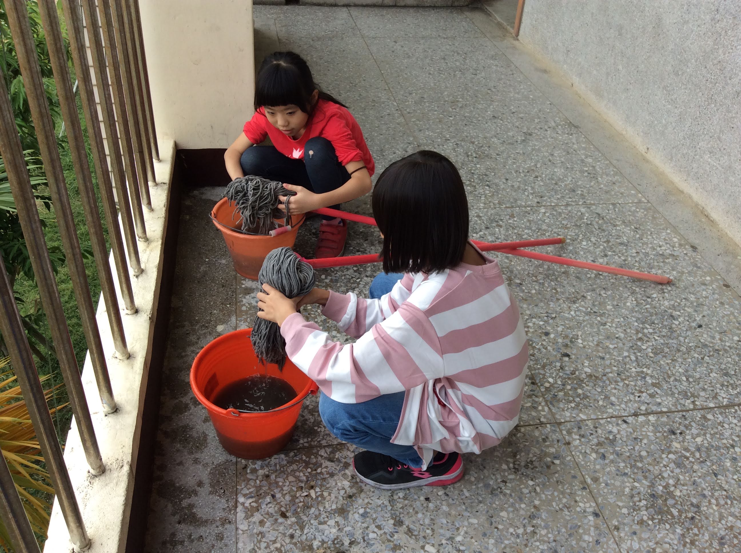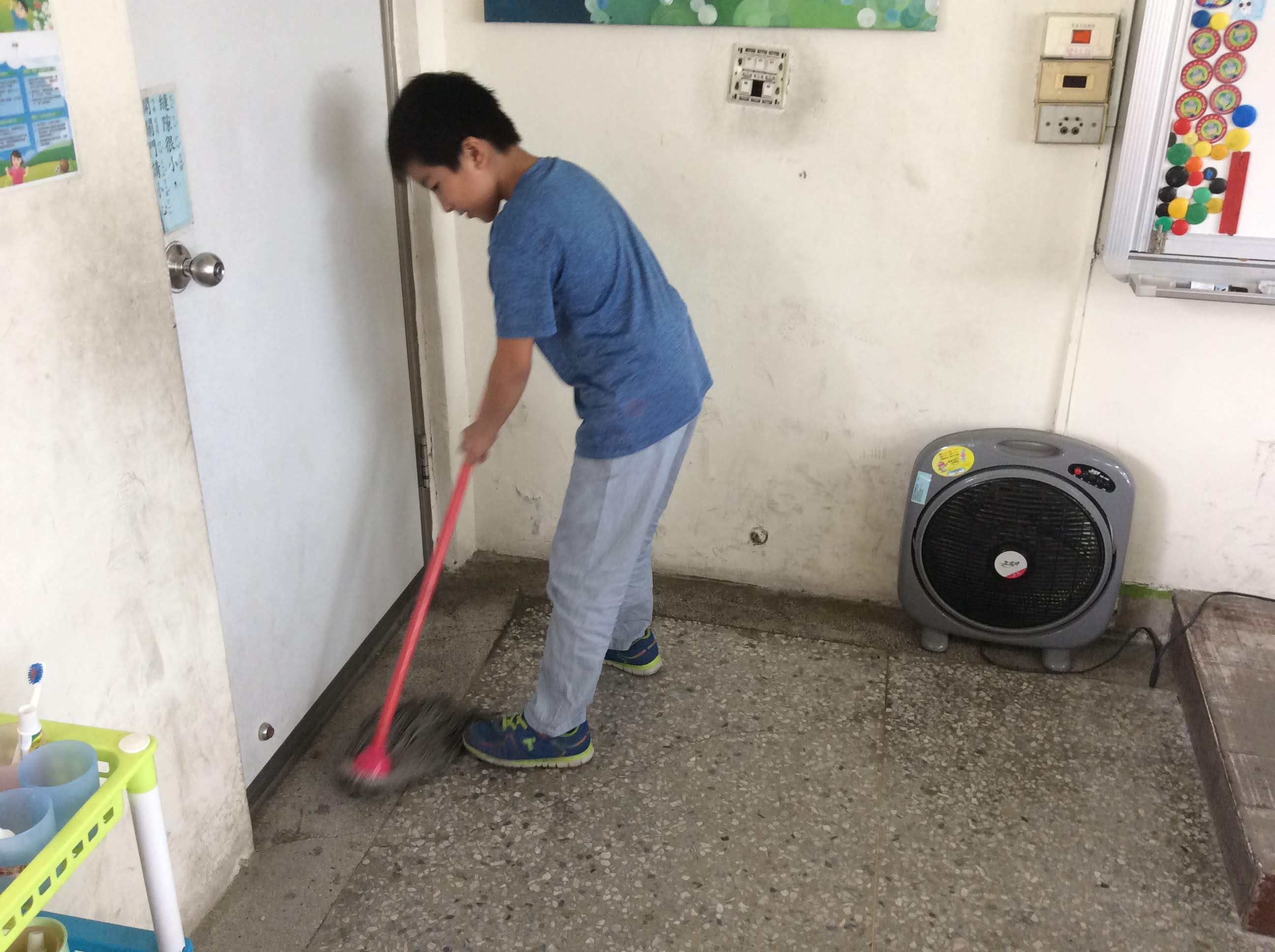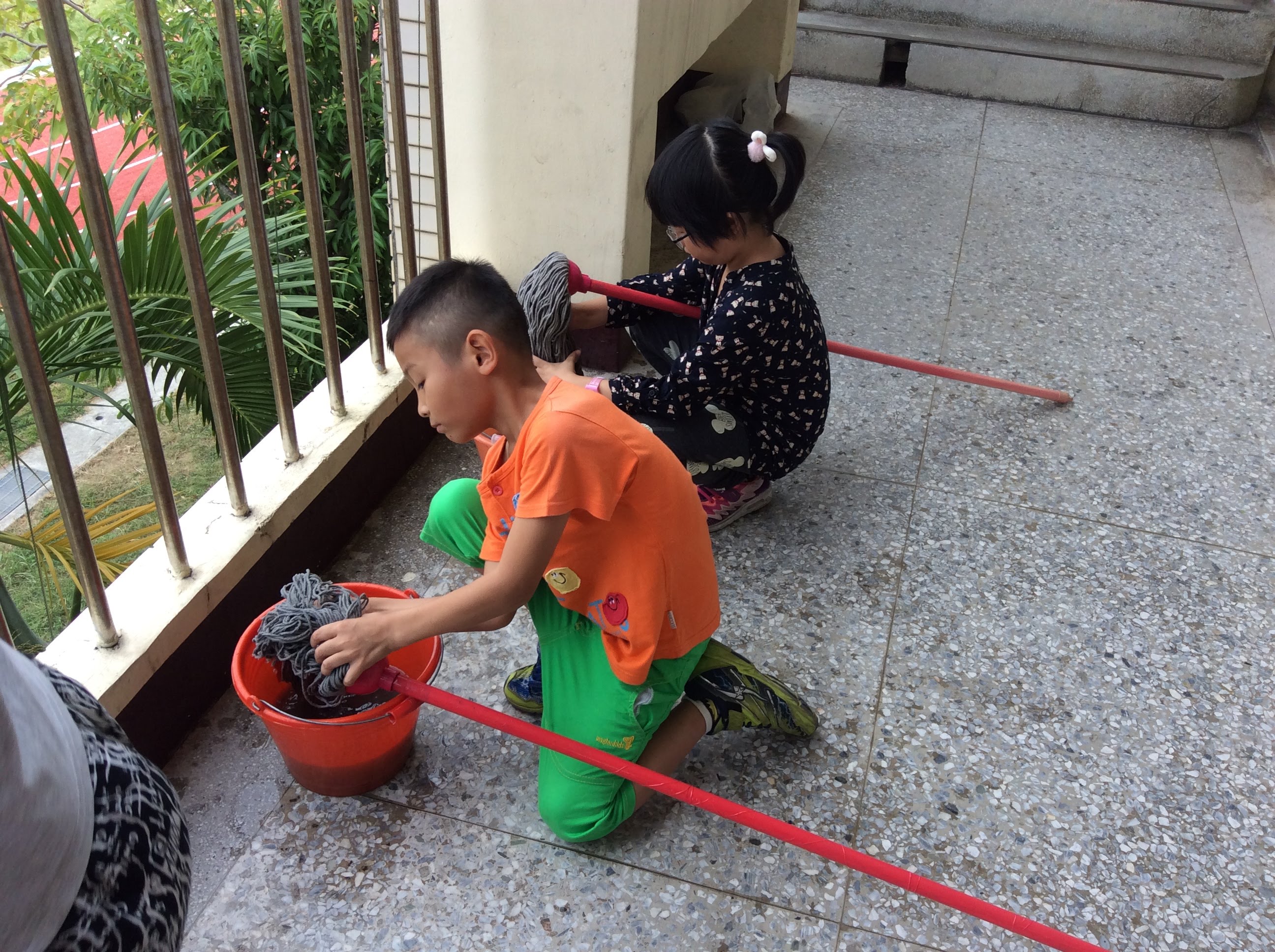 今天進行家事小達人活動第三次,這次三忠的小朋友做到了拖把擰乾拖地的動作,每個小朋友都認真的學習如何擰拖把跟從角落開始拖地,拖把在前人站後面的動作。今天可愛的三年級又學到一個家是的要領囉!!