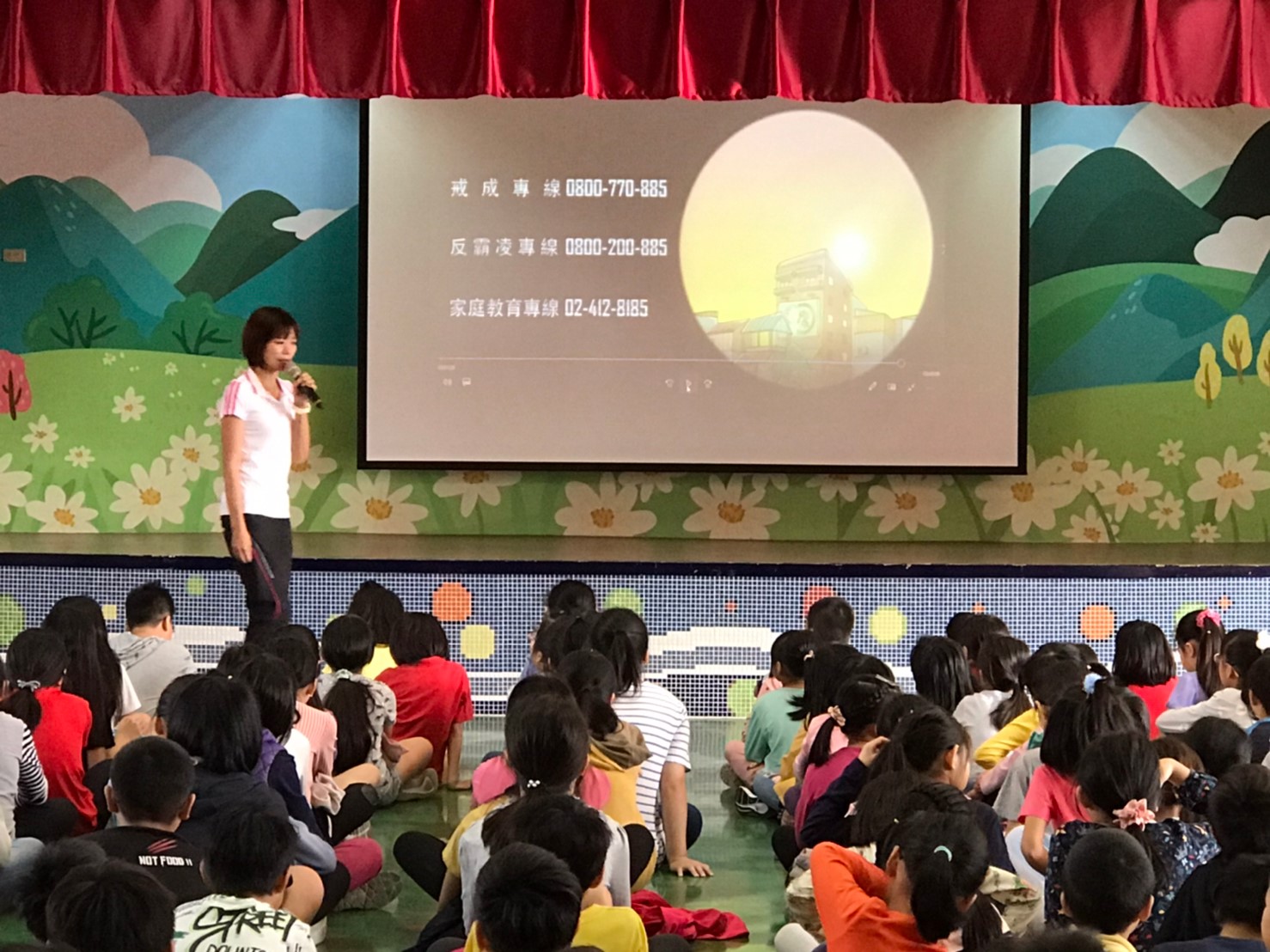 學生朝會時間學輔處為孩子們做防制藥物濫用及反毒宣導,主任及老師們播放[我的未來我做主]得獎影片[反抗指令],並介紹拒毒八法:堅持拒絕法、告知理由法、自我解嘲法、遠離現場法、友誼勸服法、轉移話題法、反說服法、反激將法,教我們用幽默風趣的方法拒絕毒品,向毒品及藥物濫用說不,做個健康快樂的內湖好兒童。