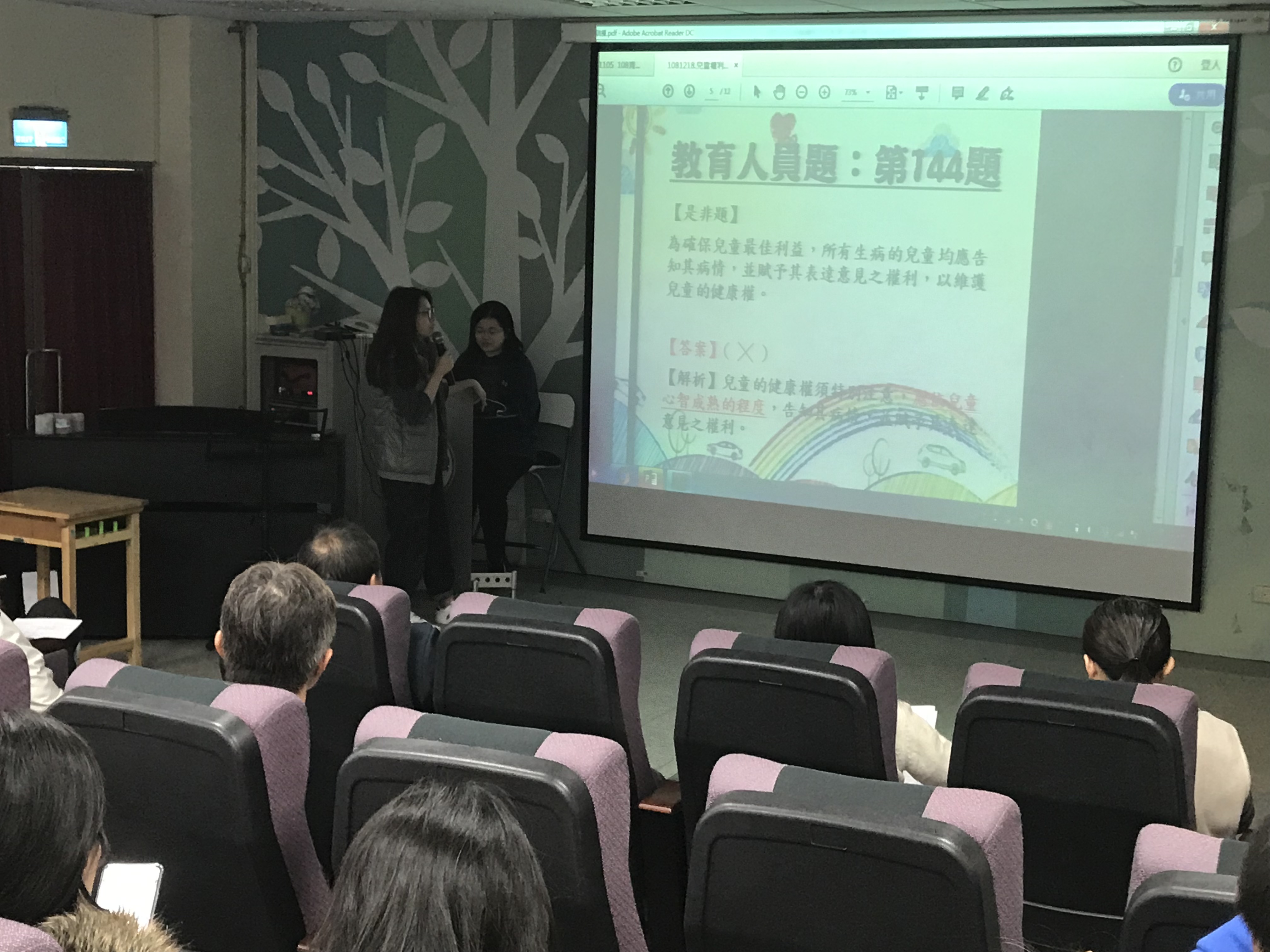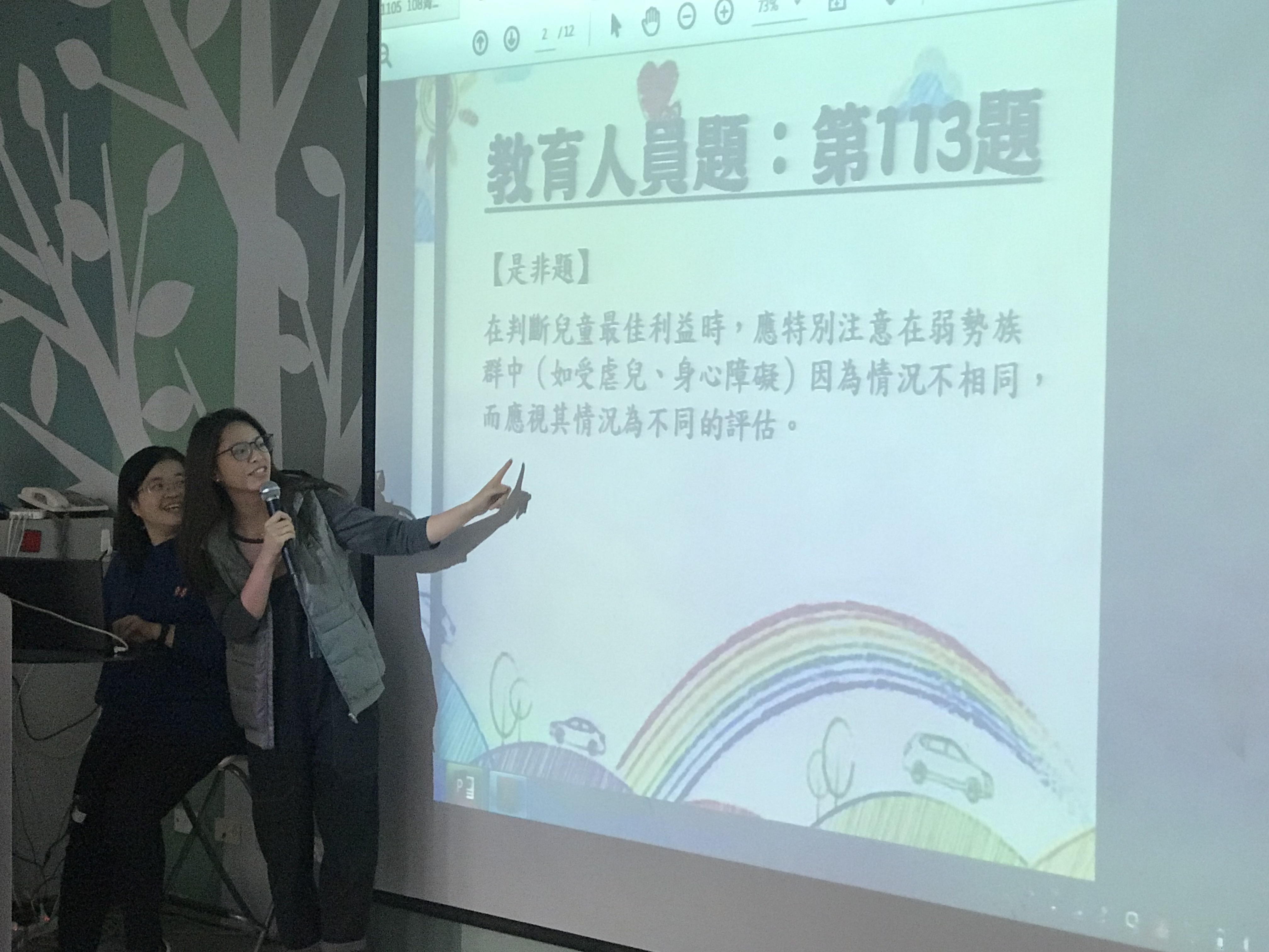 繼上週世界人權日推行兒童權利公約滿30周年,今日12/18特別利用午會的時間,也向老師們說明兒童權利公約(CRC)原則性條文,並以衛福部所提供的成人版教育訓練題庫來帶領老師們看一些較重要的兒權要點。