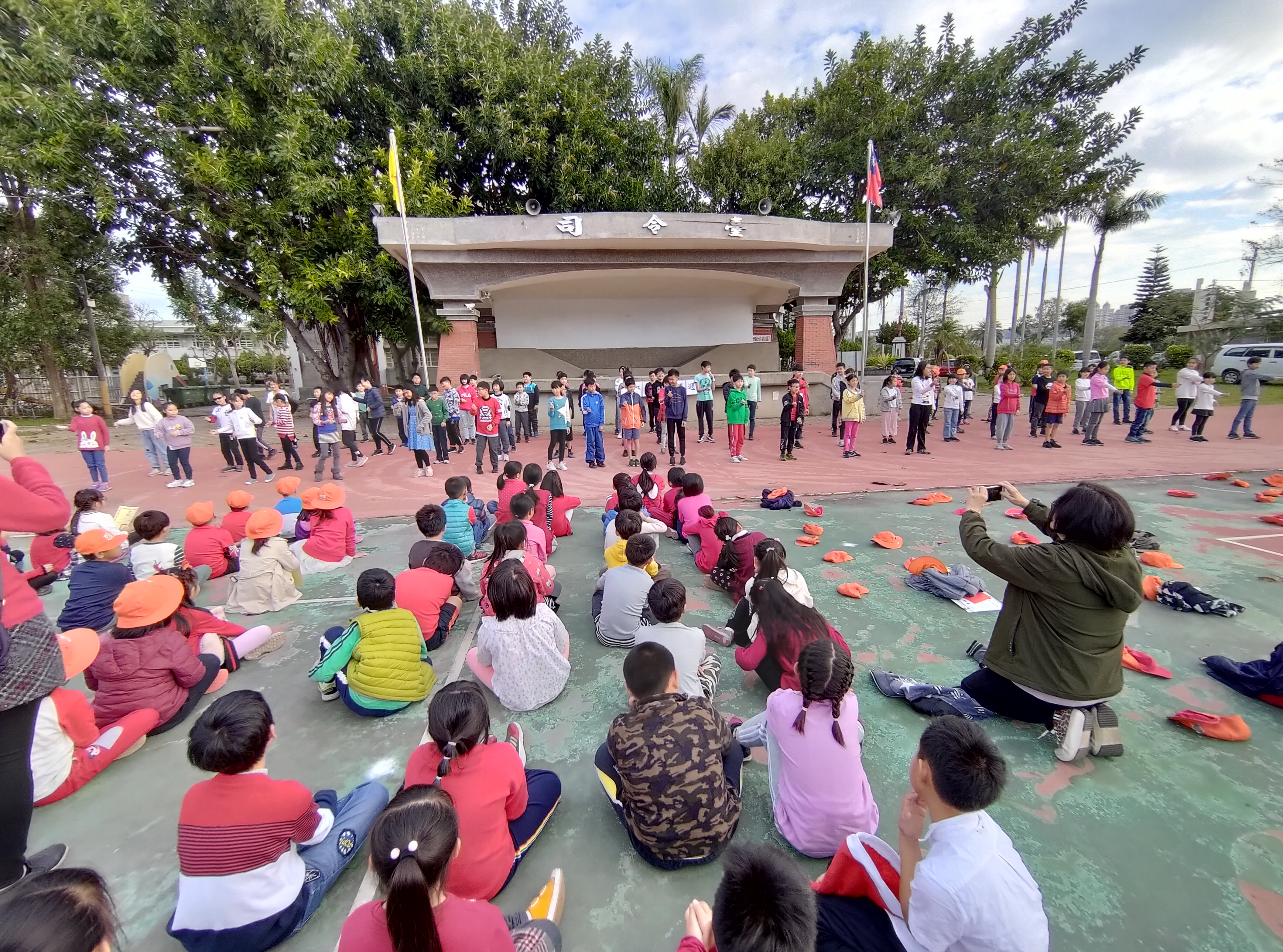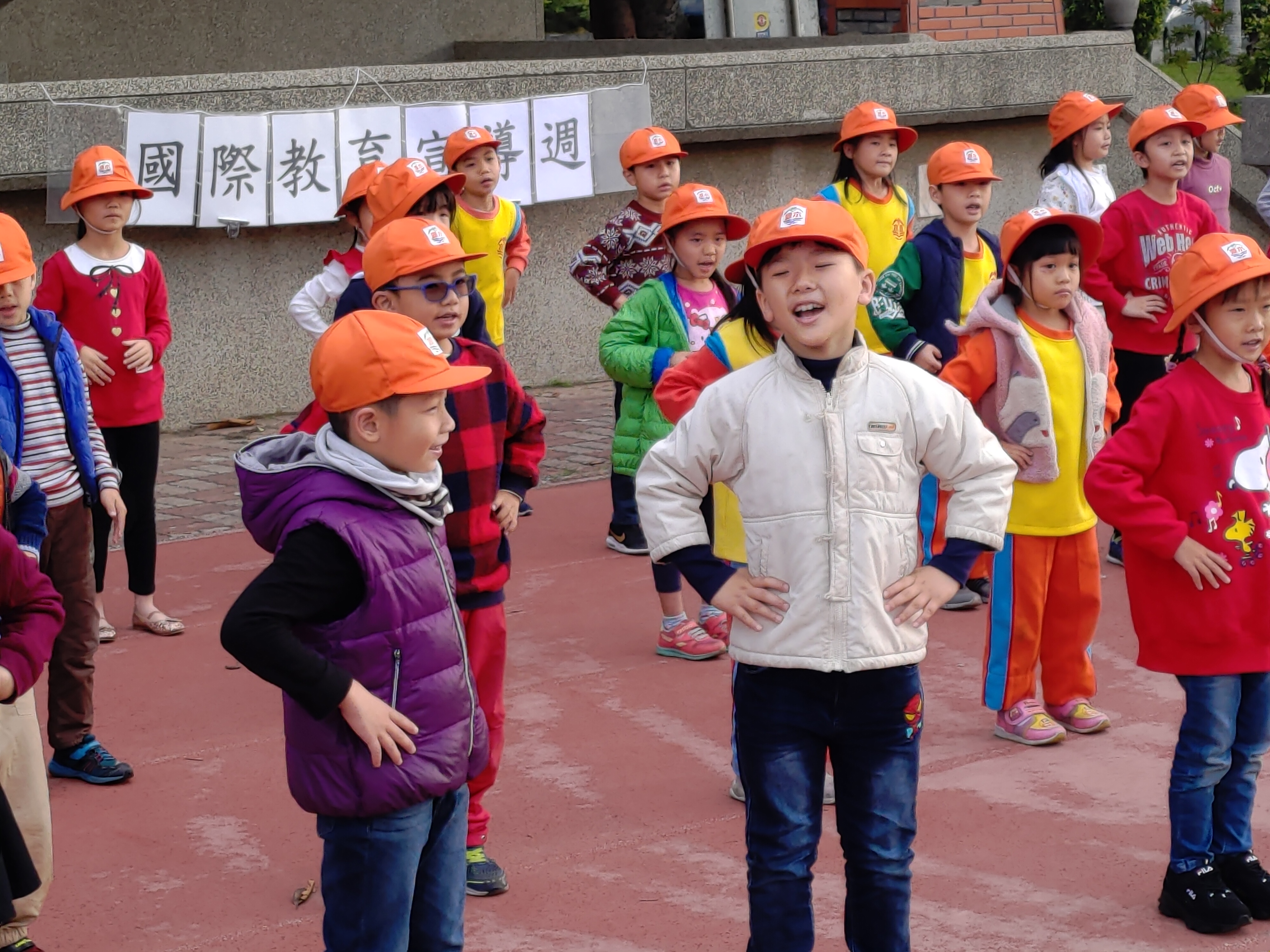 108年12月25日聖誕節,水源國小的英語老師們安排各年段的小朋友在兒童朝會表演英語歌曲。小朋友們大方的唱唱跳跳,非常歡樂,整個校園都充滿了佳節愉快的氣氛呢!