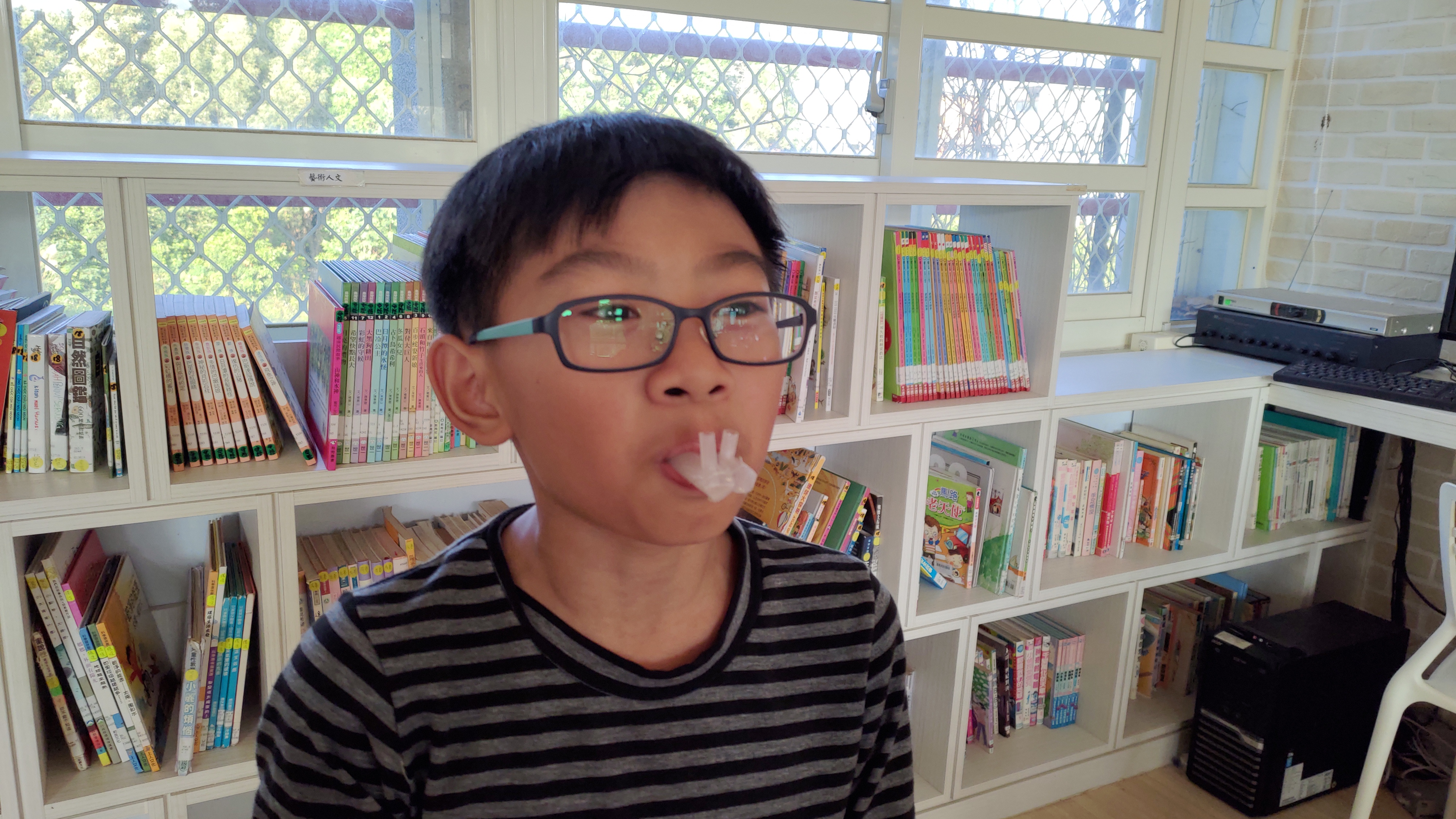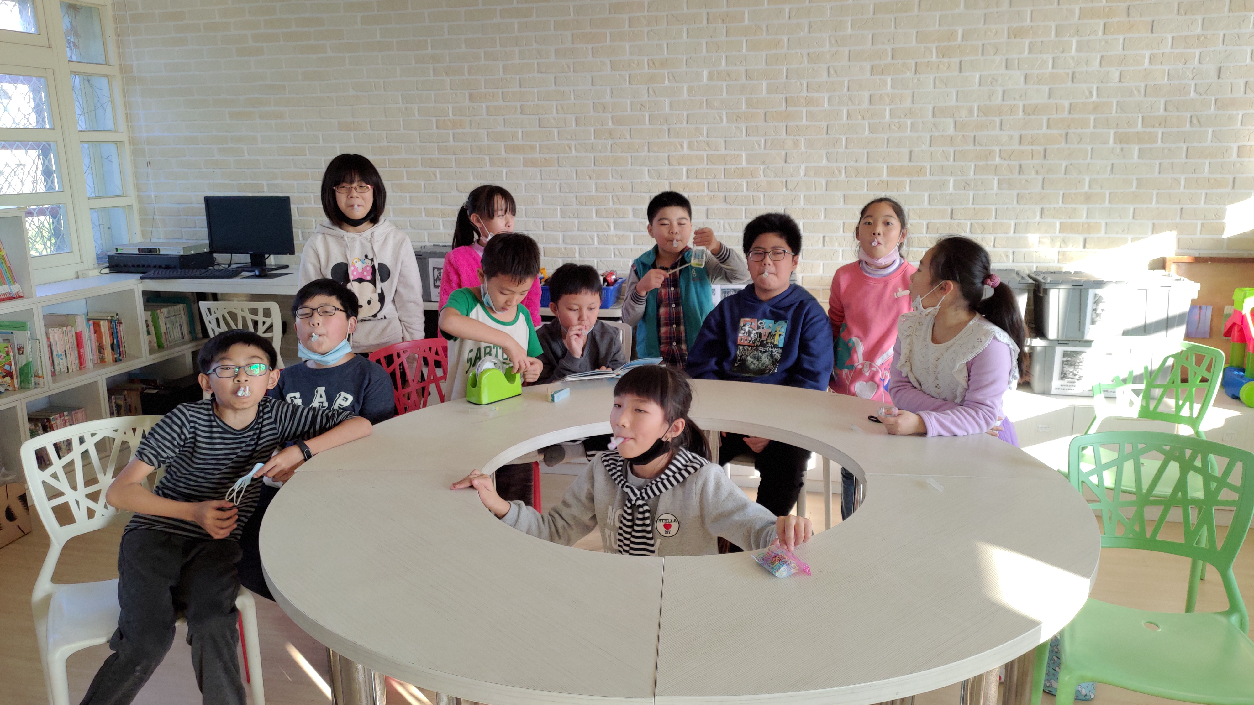 今天的高年級藝文音樂課程,老師教大家利用吸管製作卡祖笛: