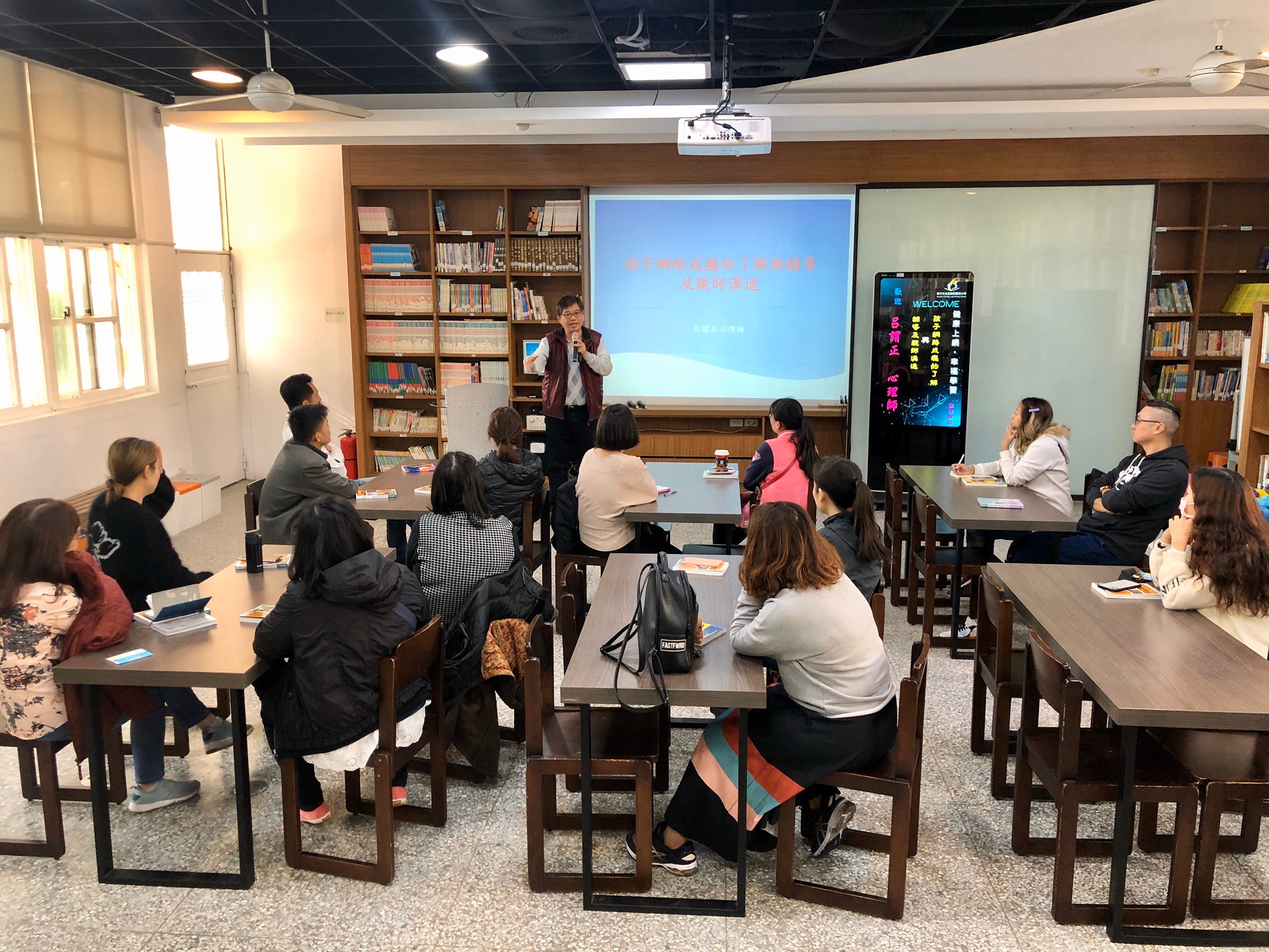 「當你抬起你的頭來,才能體會什麼是當下。」健康上網、幸福學習—孩子網路成癮的了解與輔導及親師溝通講座,特別邀請到呂謂正心理師,透過詼諧幽默的實例說明,探討適切的親子關係溝通方式。關心教育的家長踴躍參與,讓身處全網時代的我們,學習如何與新世界和平共處;新課綱上路,培養孩子成為有思辨力與素養力的終身學習者。