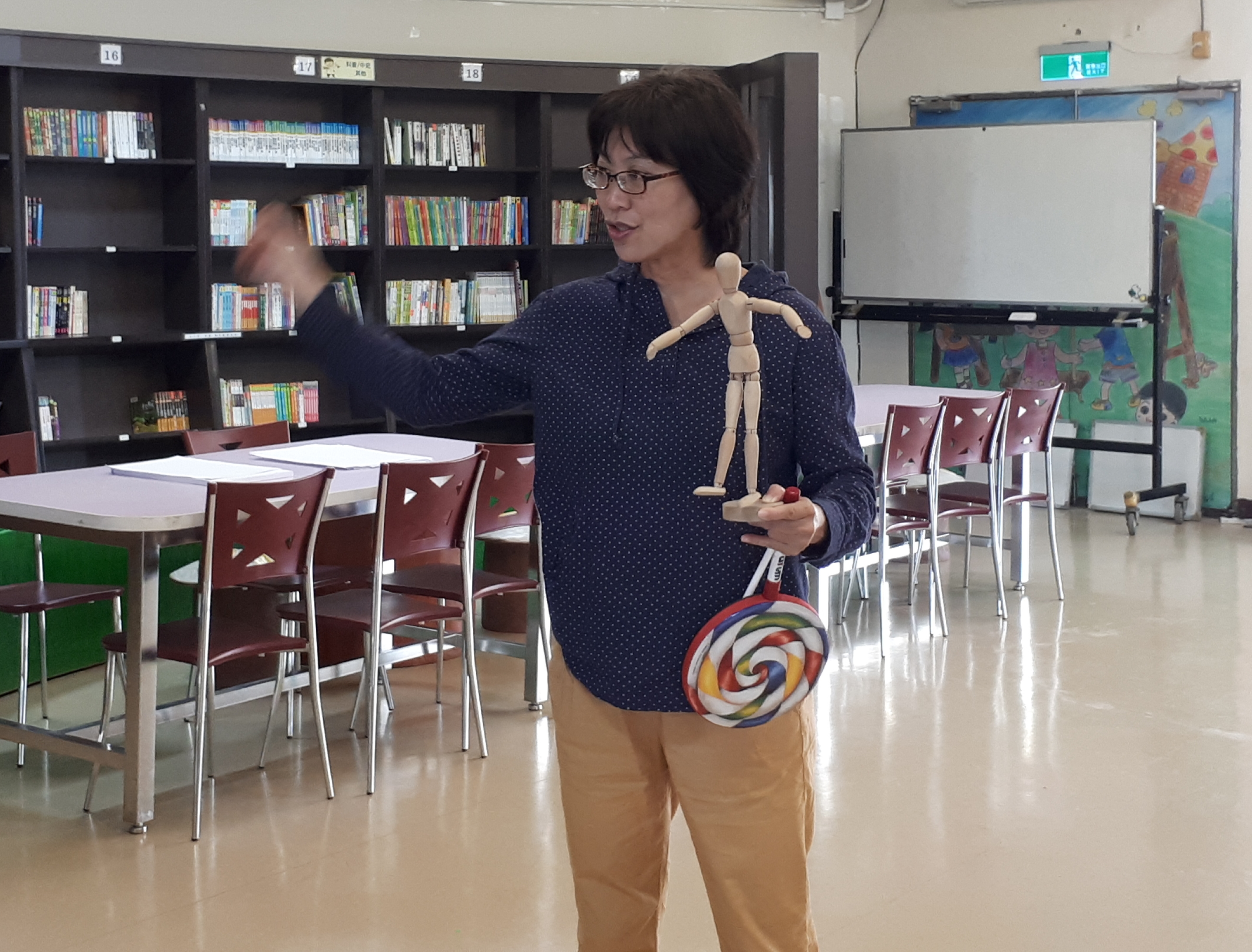 今天的戲劇魔法課巫婆老師加入「木偶人舞蹈」的遊戲:「控制人」點「木偶人」的某一個關節,「木偶人」的關節處就會隨之扭動;「木偶人」隨著可愛輕快的旋律,滿場快樂的旋轉舞動~