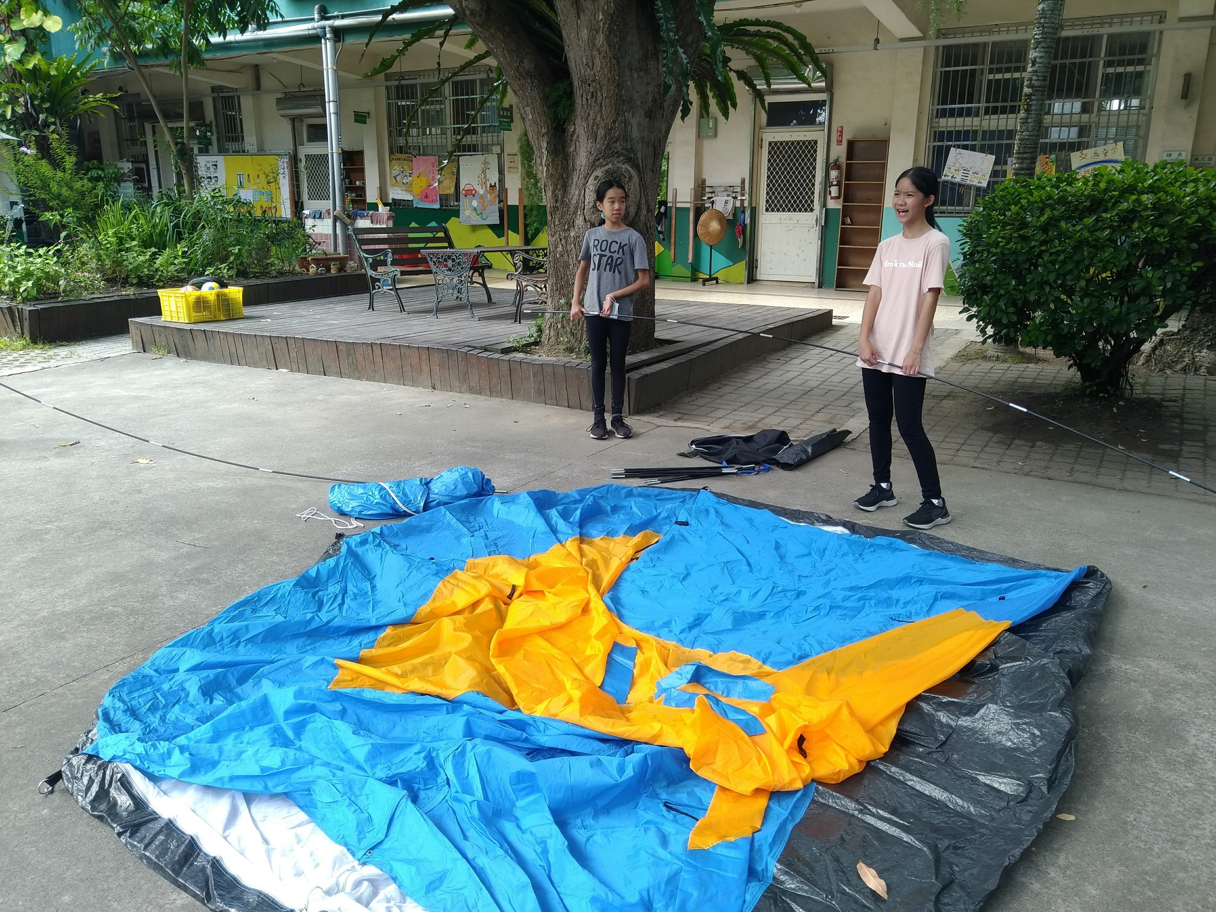 老師教大家如何搭一座堅固又穩的帳篷。