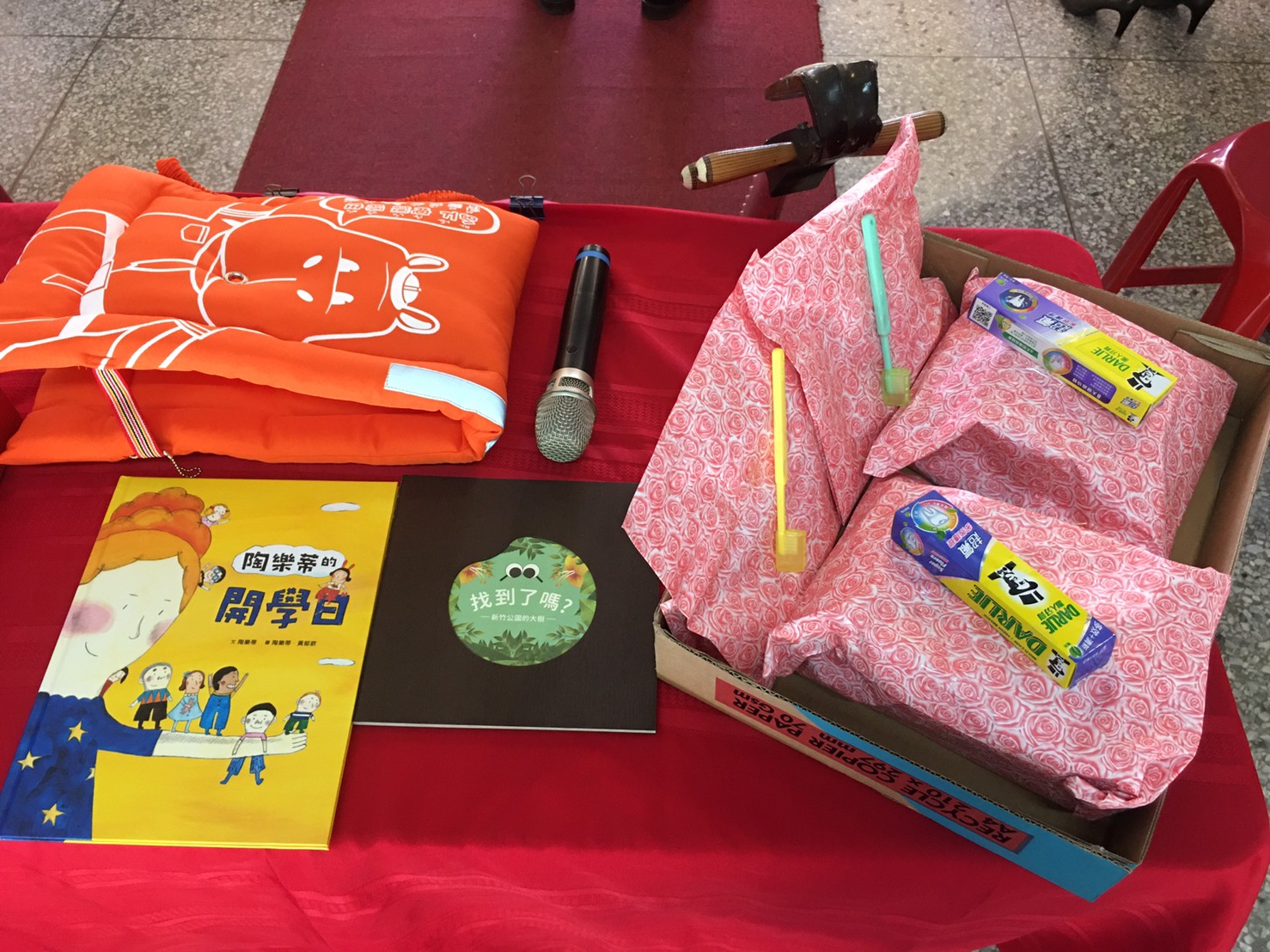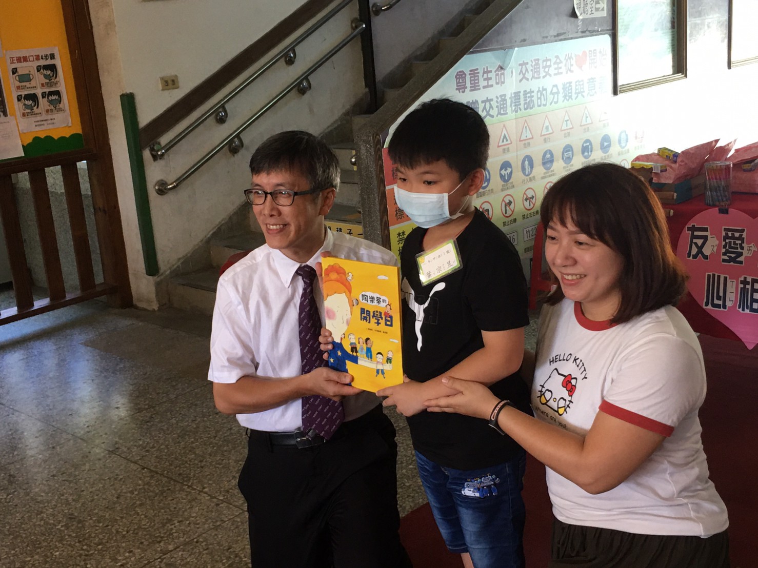 在迎新活動中,校長頒贈給新生教育部給新生的繪本
