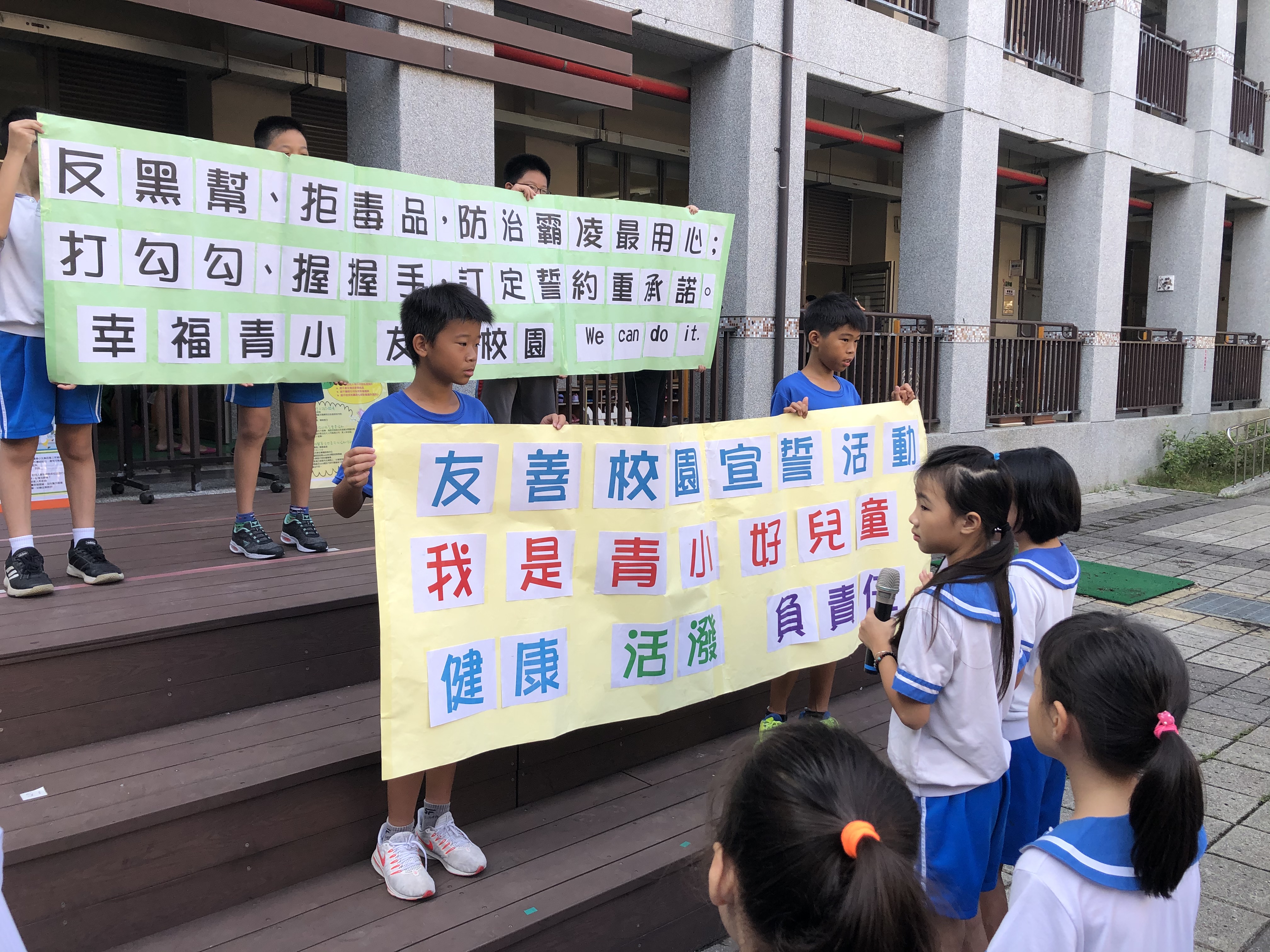 109年9月4日,進行109學年度第一學期始業式,由二位五年級同學帶領全校小朋友進行「友善校園反毒反黑反霸凌宣誓」,在二位同學甜美的聲音帶領下,全校同學一句一句念出誓詞,進行宣誓活動。