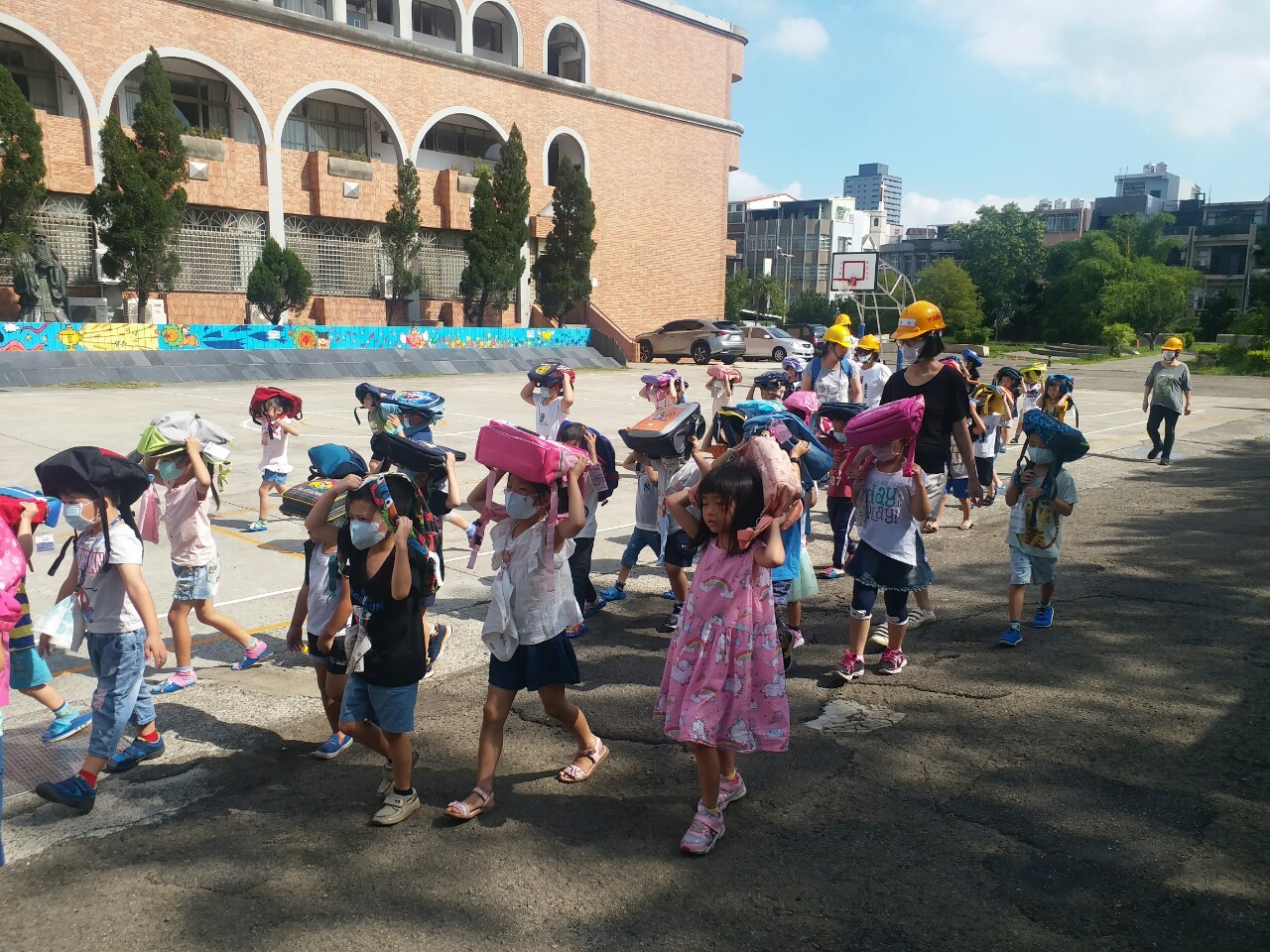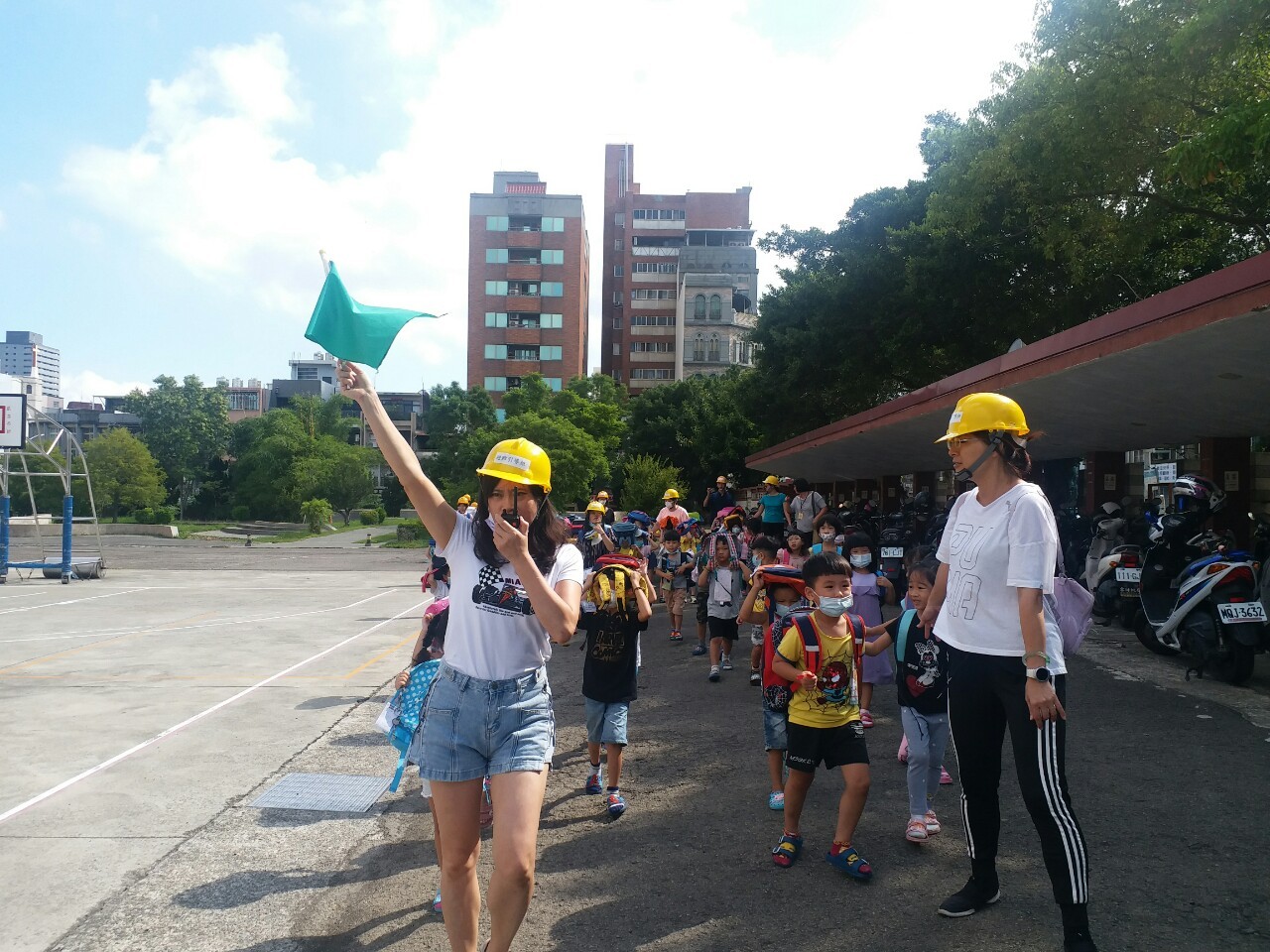 警報鈴聲響起,幼兒園孩子年紀雖小,仍依著防災指示正確做好趴下掩護穩住三步驟進行演練。當鈴聲再度響起,拿起書包保護頭部,遵循不跑不推不語的原則,大步前進迅速抵達避難廣場。防災教育從小就要落實,看著小小孩子們認真跟著演練的模樣,真是要給他們按個讚!