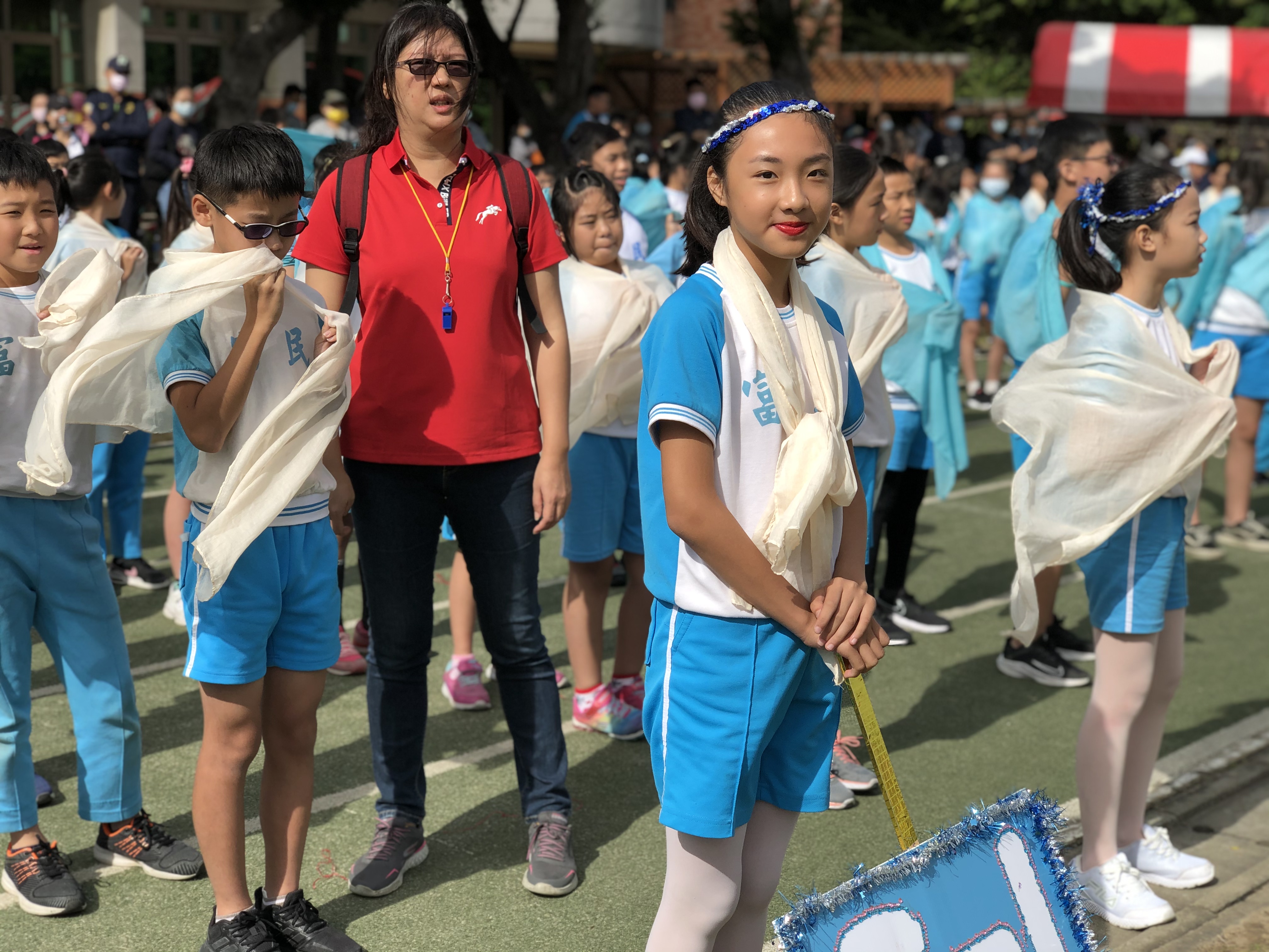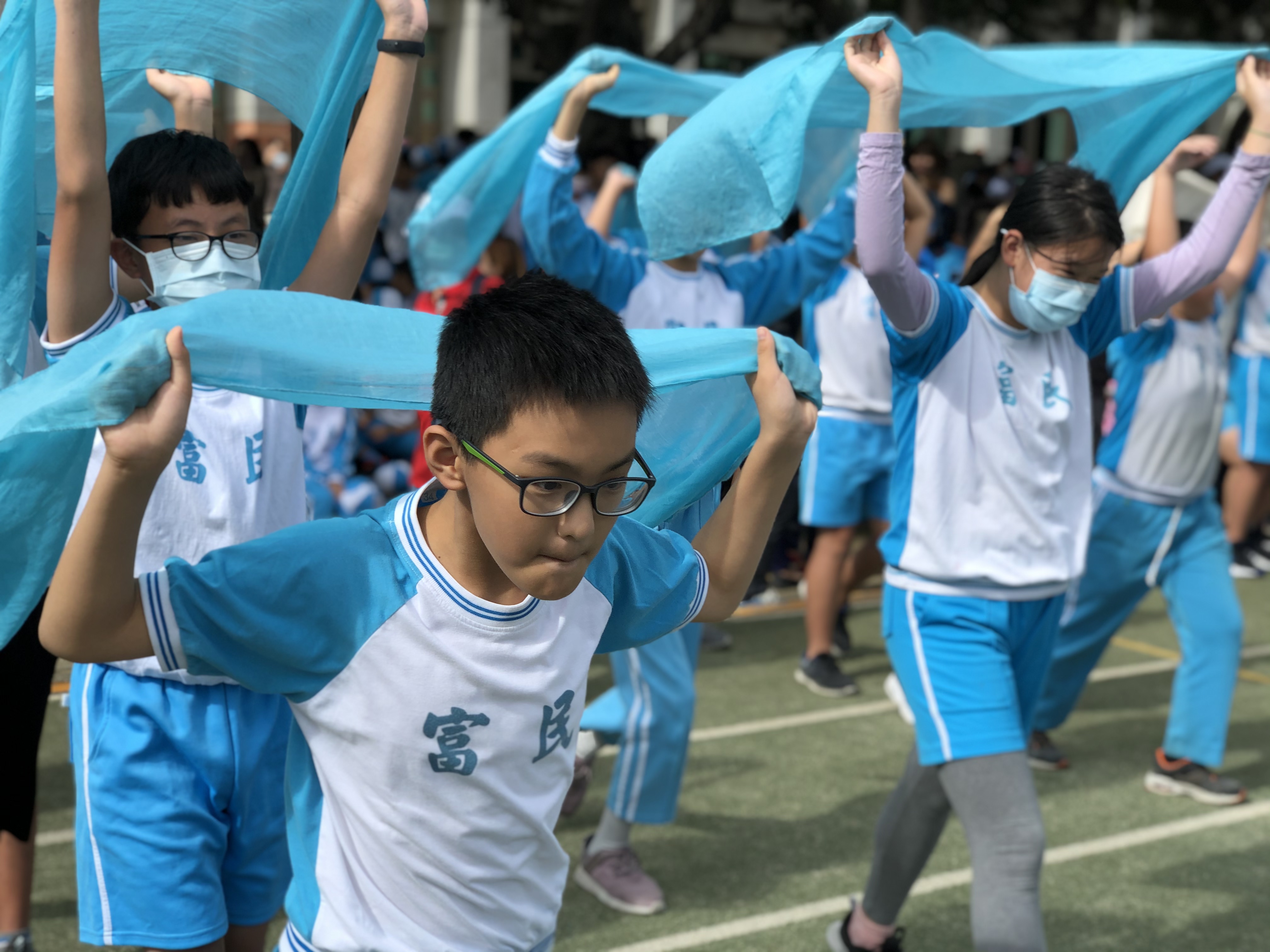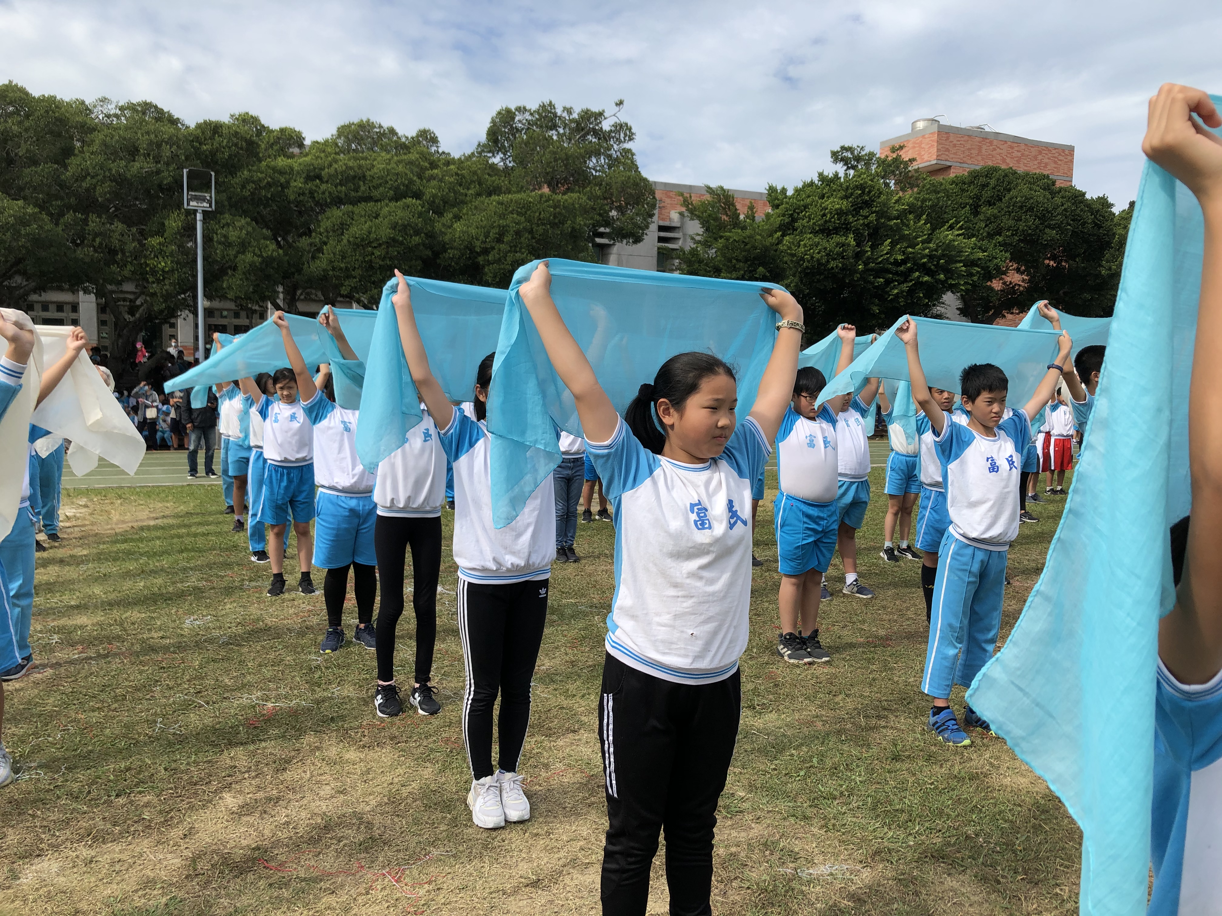 輕柔而富有節奏的音樂響起,六年級的大哥哥大姐姐們迎著秋風翩翩起舞,手中的絲巾揮灑自如,搭配變幻莫測的隊形,這是一場精采絕倫又魅力四射的演出,請大家不要輕易移開您的視線喔!