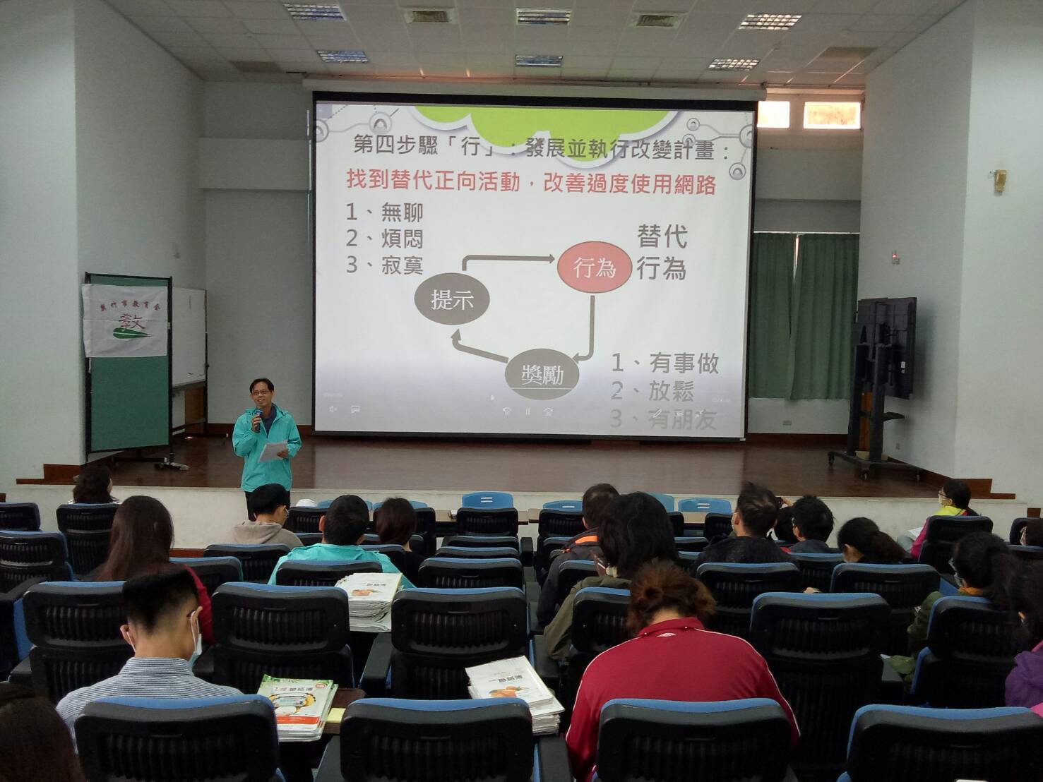 數位網路的便捷,帶來許多的方便,同時也帶來前所未見的災難,例如:視力惡化加速、專注力無法集中、人際關係適應困難、...,透過行政導師會報分享網路成癮輔導的策略,除了提升教師自己對於網路使用的覺察與反思,也運用該策略協助學生們覺察,並提供不同程度成癮的改善策略。此外也分享新竹市政府教育處提供的“關掉螢幕,拯救青春期大腦”一書,期許師生正確使用科技,善用網路不迷路!