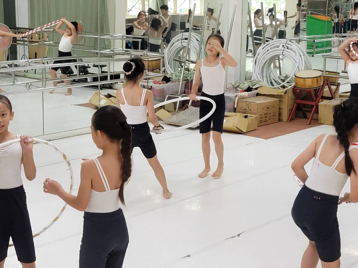 民富國小四年級舞蹈班的阿勇們透過日常共同練習,養成運動好習慣,提升手腳協調度;強化核心肌群、平衡感、節奏感、方向感、空間感。現代舞以開發肢體潛能為主,有別於芭蕾固定形式。基礎訓練包括:地板基本、站立動作及流動組合。派別:瑪莎葛蘭姆、李蒙、韓福瑞、康寧漢等各大派流。這群四年級的阿勇們雖然年紀還小,但是在國玓老師的訓練之下,每位學生的肢體表現都十分的純熟,也可以看出即使只是平常的練習,但她們也都是全力以赴表現最美好的自己。