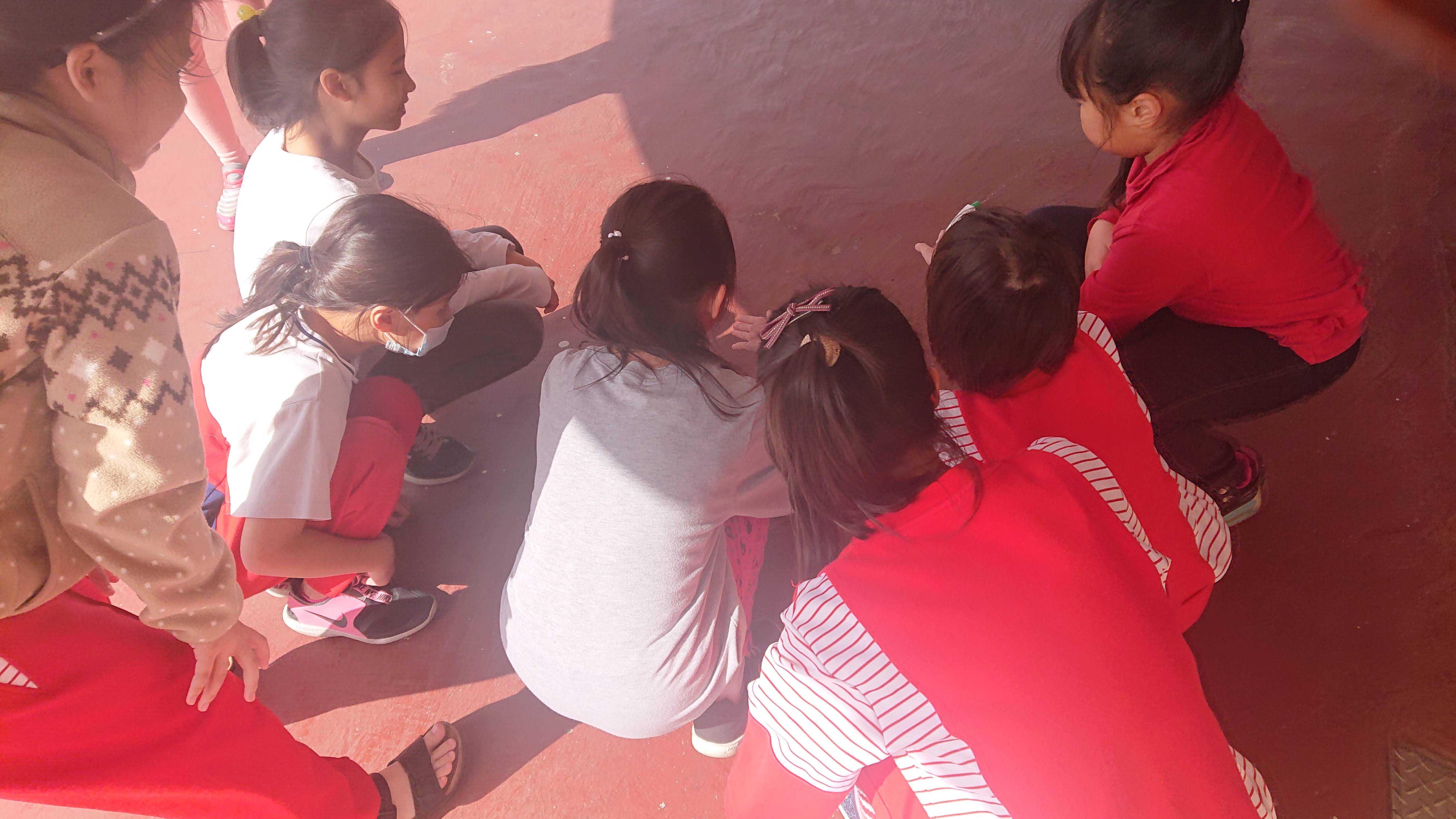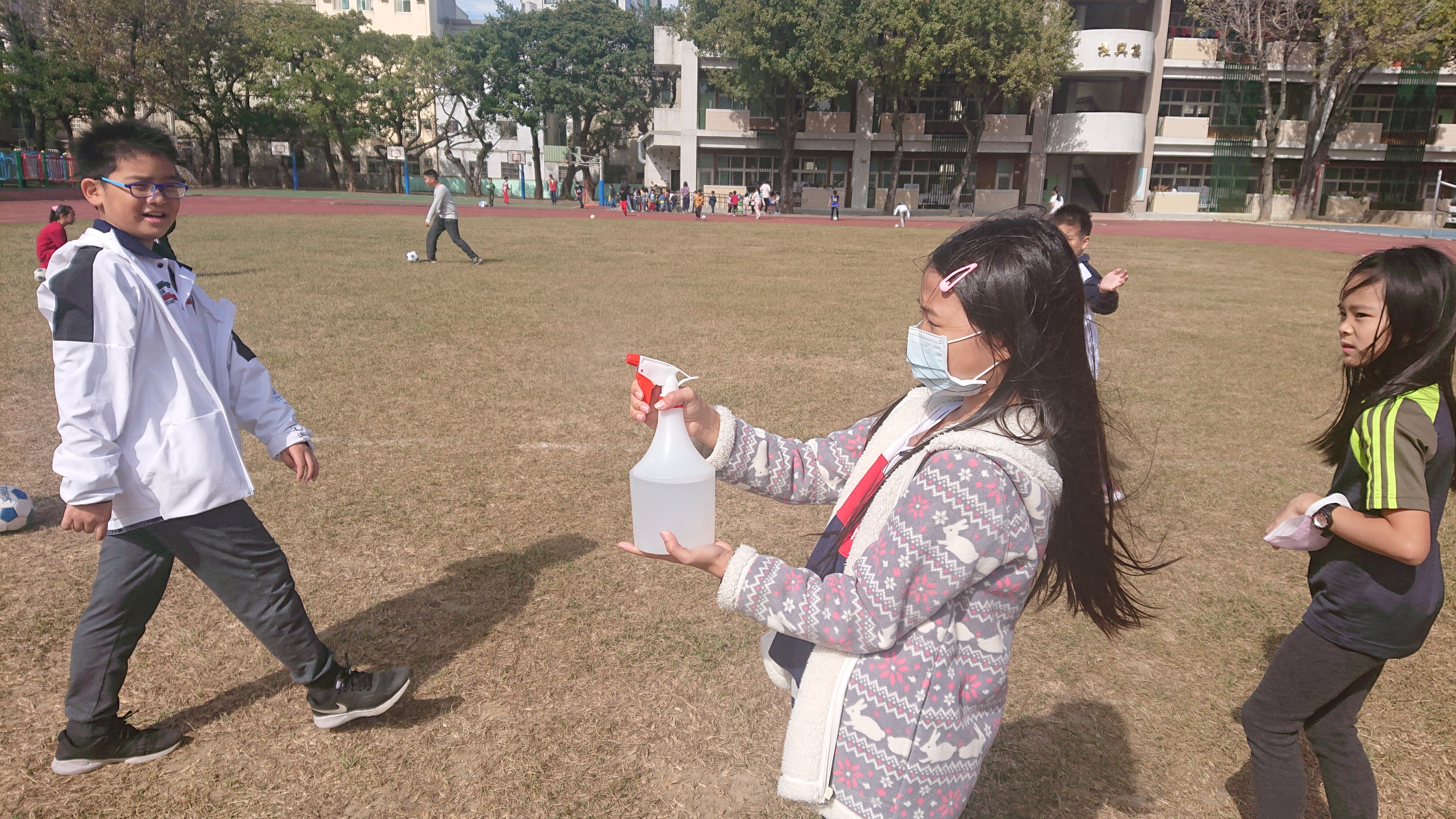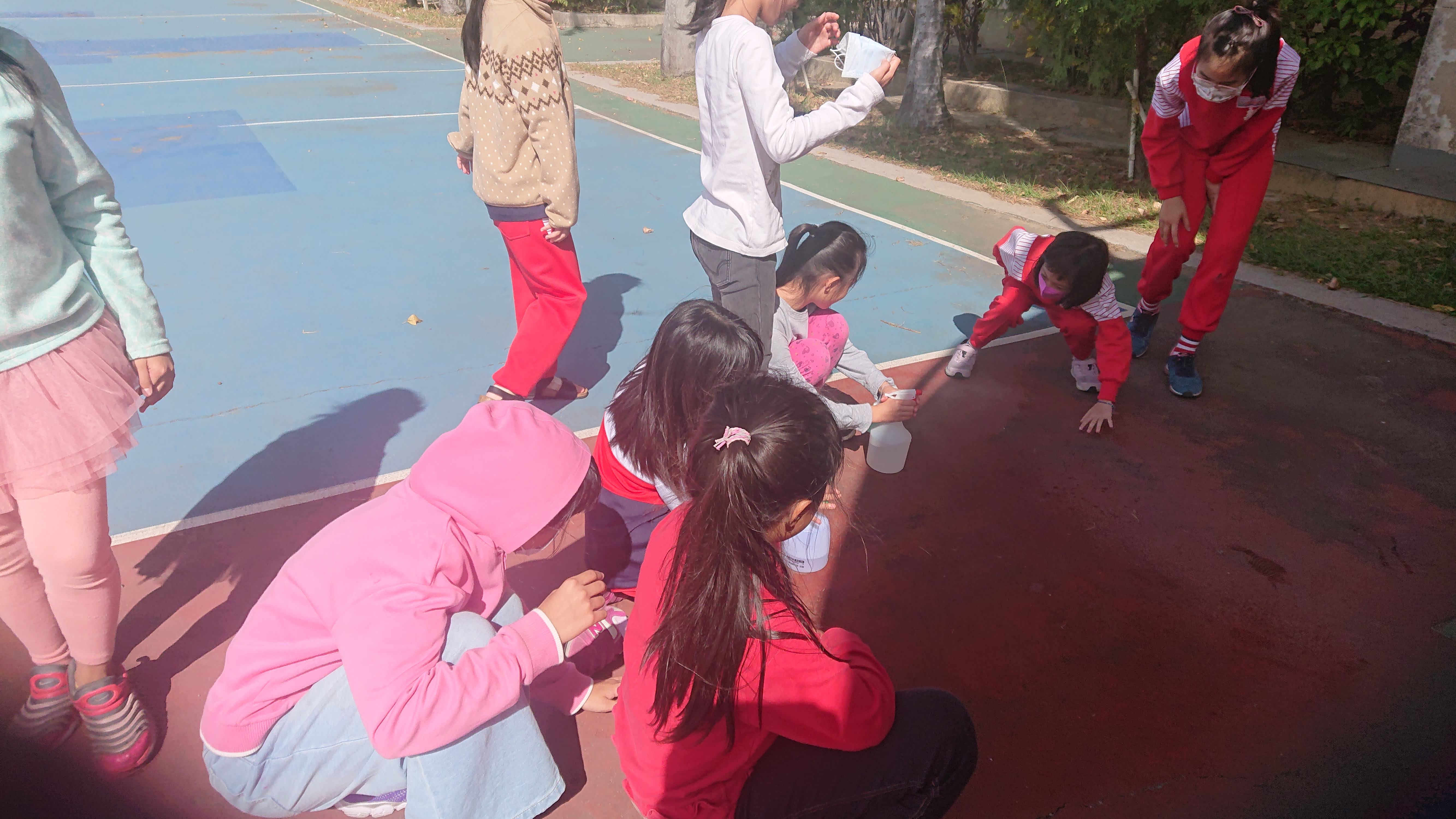 雨過天晴,天空中偶會出現彩虹,陽光反射和折射在水滴的現象形成彩虹。為了製造彩虹,學生拿著噴霧器在操場各處進行實驗,也做出在陽光下背對陽光,面向有陰影的地方噴水霧,就可以得到彩虹,小朋友實驗的興趣高,還做出雙彩虹呢!