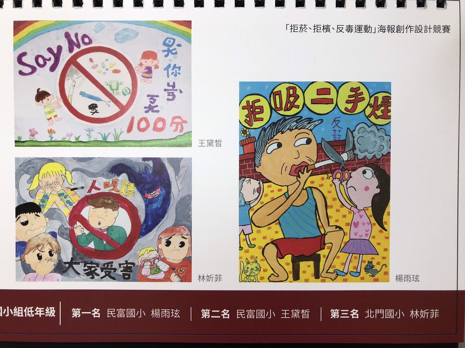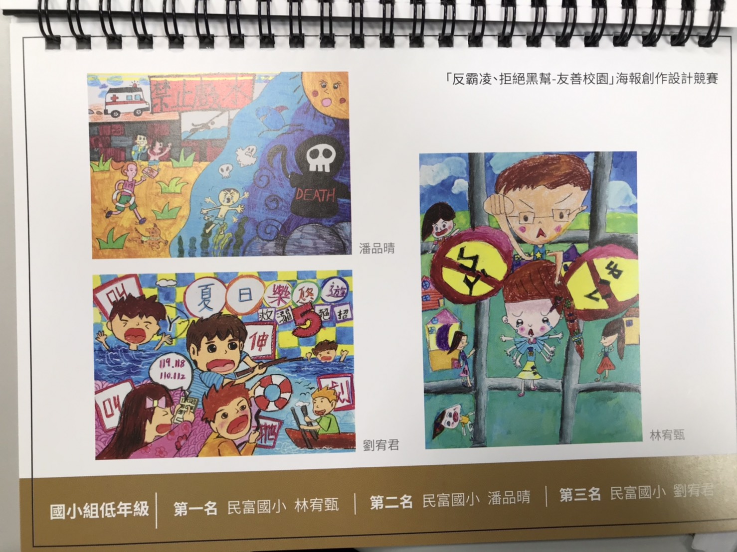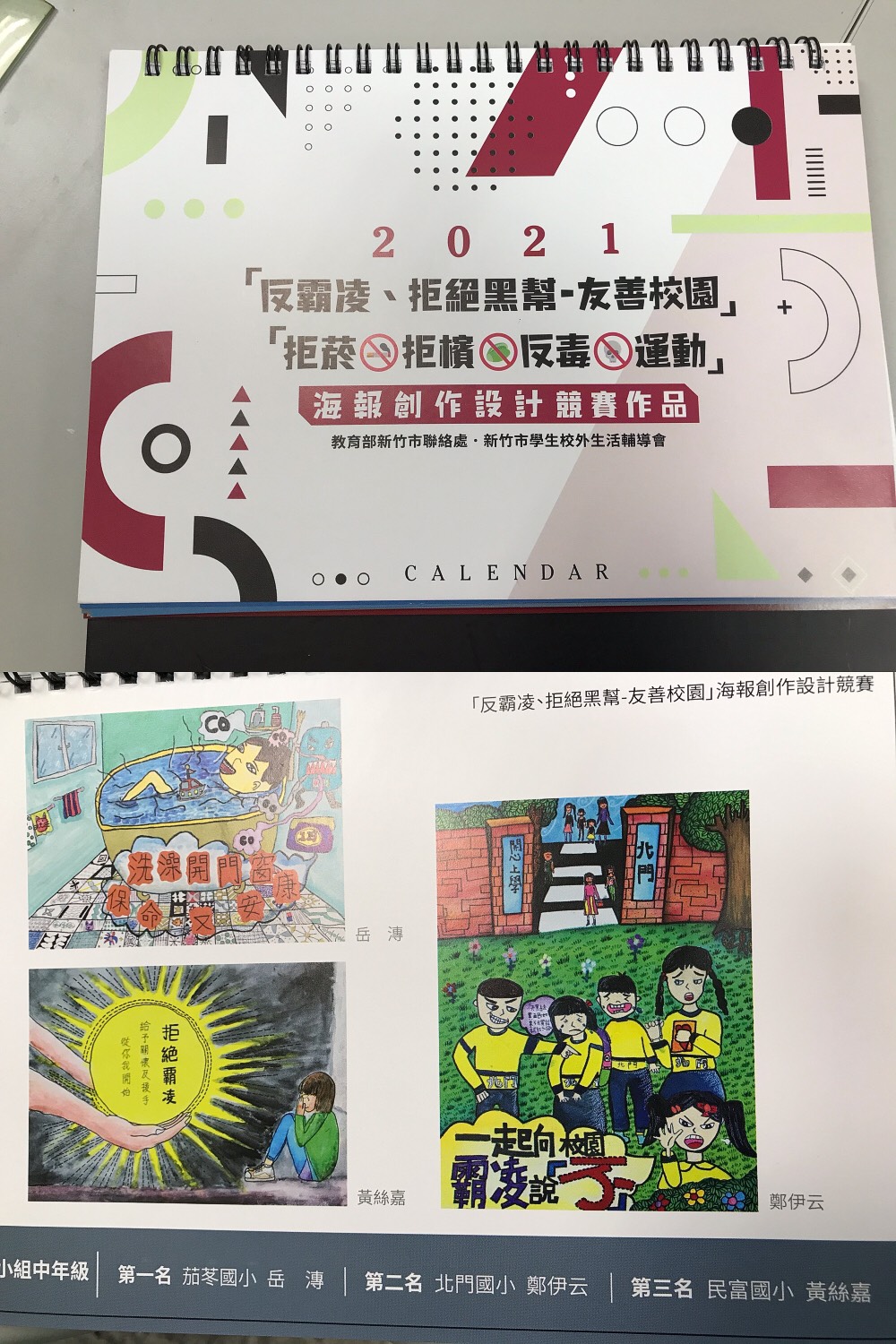 本校學生於「反霸凌、拒絕黑幫-友善校園」+「拒菸、拒檳、反毒運動」海報創作設計競賽獲得佳績,主辦單位將得獎作品集結後製作2021年的桌曆,看到小朋友的作品被印刷在桌曆裡,非常有成就感!