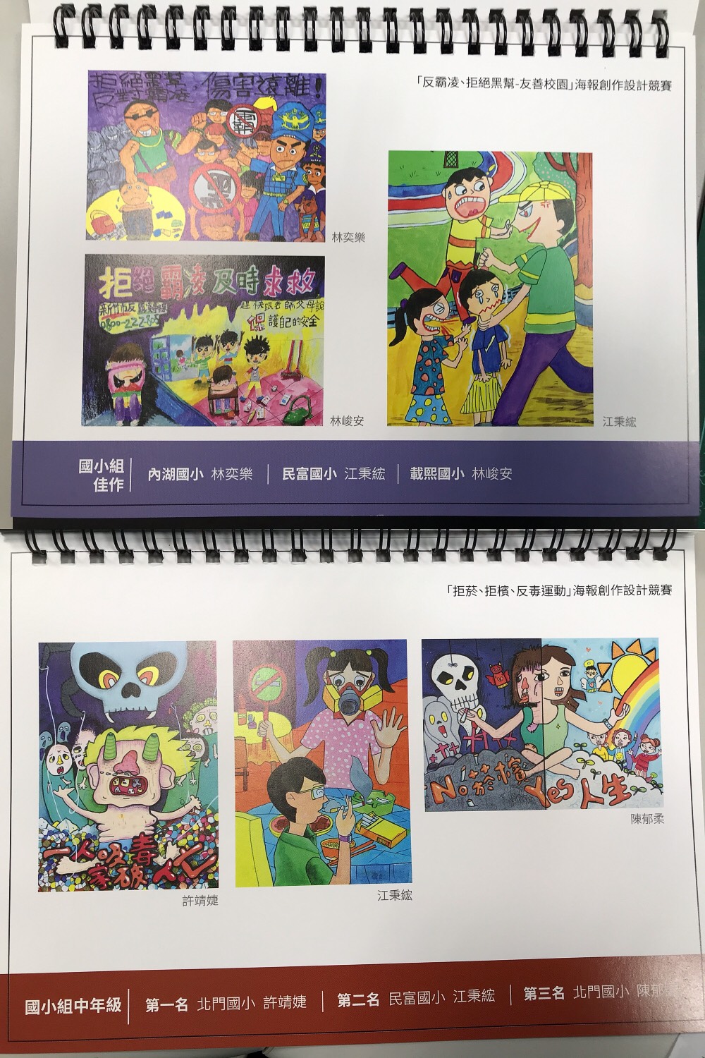 「反霸凌、拒絕黑幫-友善校園」+「拒菸、拒檳、反毒運動」桌曆作品