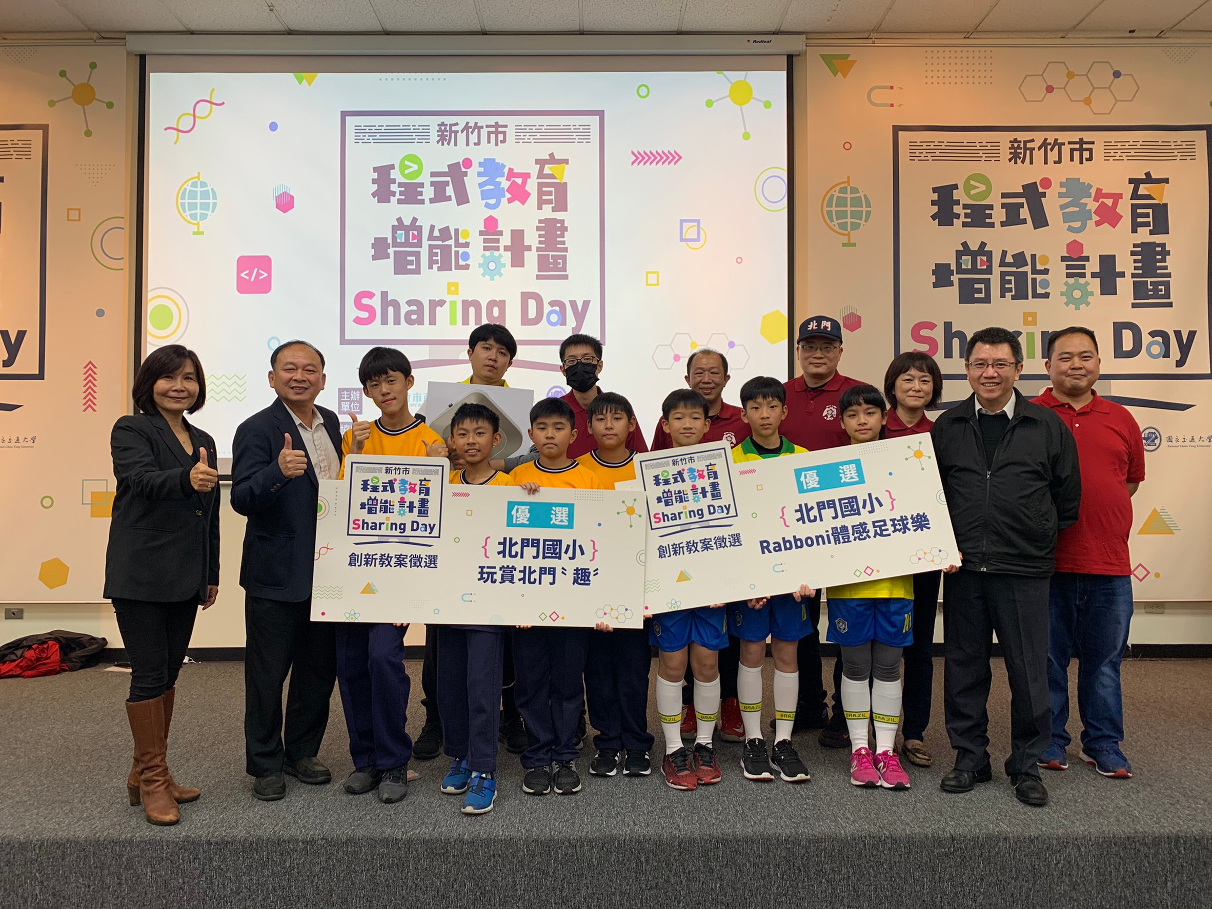 北門札根AIoT教育參與交通大學X台積電X親子天下雜誌舉辦的新竹市程式教育 Rabboni AIoTS成果展獲好評掀熱潮。活動結果北門國小才全市小學中脫穎而出,共獲得兩項優選作品(全市第一),感謝資訊團隊老師及高年級同學的用心準備與付出,本次活動學校共派出兩組參賽,一組是賴雲鵬校長及蕭文欽主任和資訊組長永浩老師與及子寧、昀庭、宇喆同學所製作的-北門Rabboni體感足球樂,另一組是由資訊教師湍勝老師及學務處桂里主任、總務處志銘主任與嵃可、禹鈞、宥辰同學所製作的-玩賞北門趣,運用台積電設計的Rabboni晶片及Scratch程式設計,結合學校特色課程,由學生及老師合力完成程式設計與操作,並練習講解與演示,所有同學臨場表現沉穩,發言及回答問題獲得評審好評,榮獲佳績,也感謝學校導師及其他師長及家長的鼓勵與協助,讓北門學生有展現自我能力的機會。