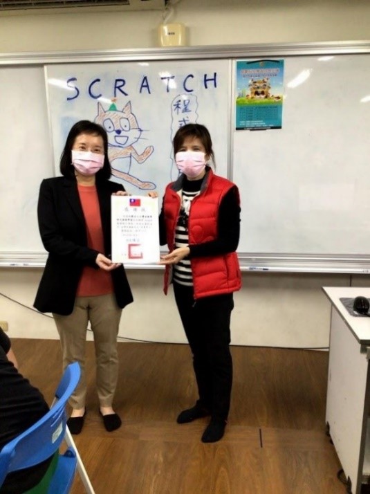 課程結業式,感謝晶豪科技的執行長與老師的付出,由琦崴主任頒發感謝狀,感謝茵綺老師每次課程的協助,也謝謝晶豪科技的贊助與用心製作的課程,讓學生收穫良多。