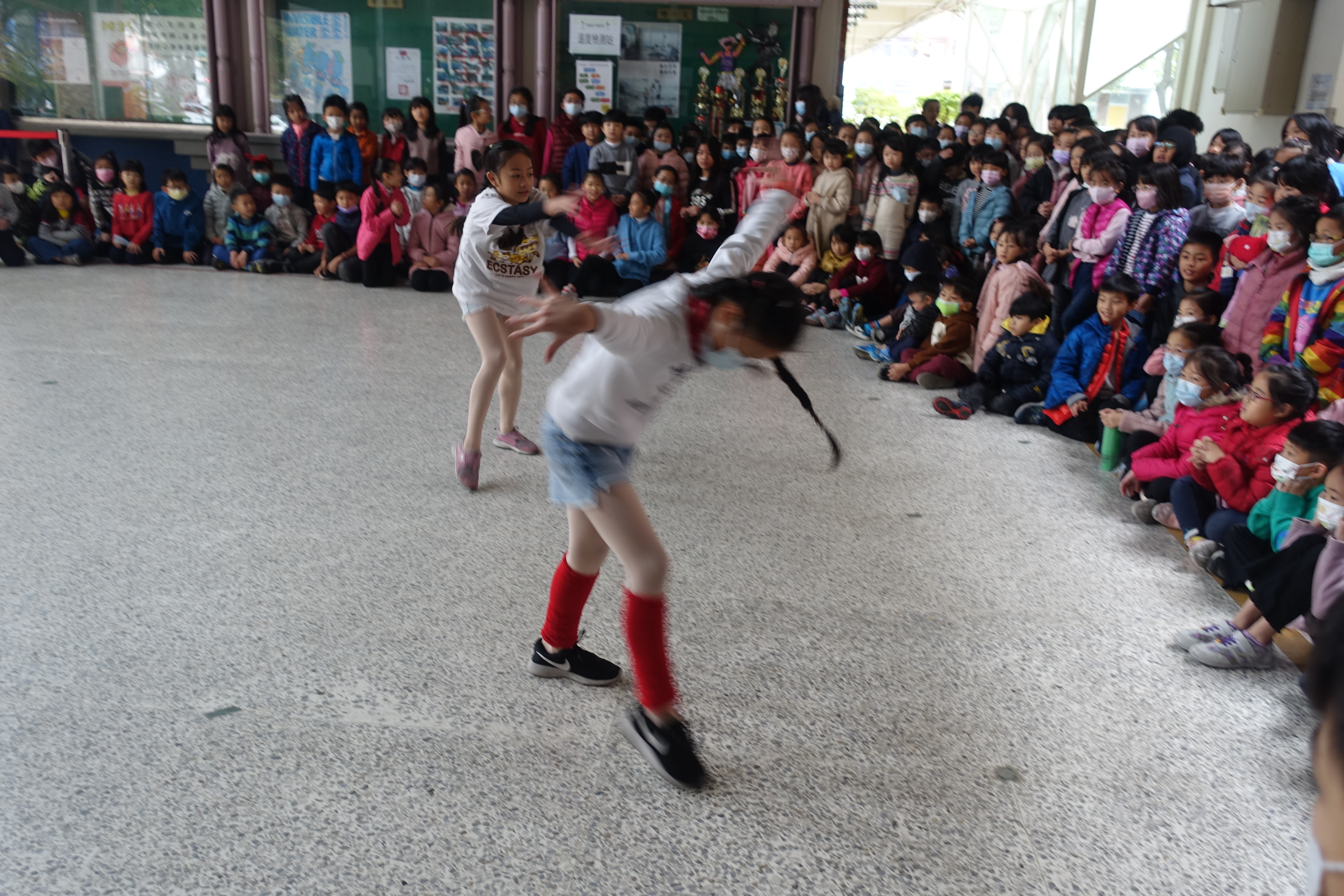 可愛的明渝與歆宸利用課餘時間進行訓練,在校園秀舞台中展現精展的舞技,獲得滿堂喝采!