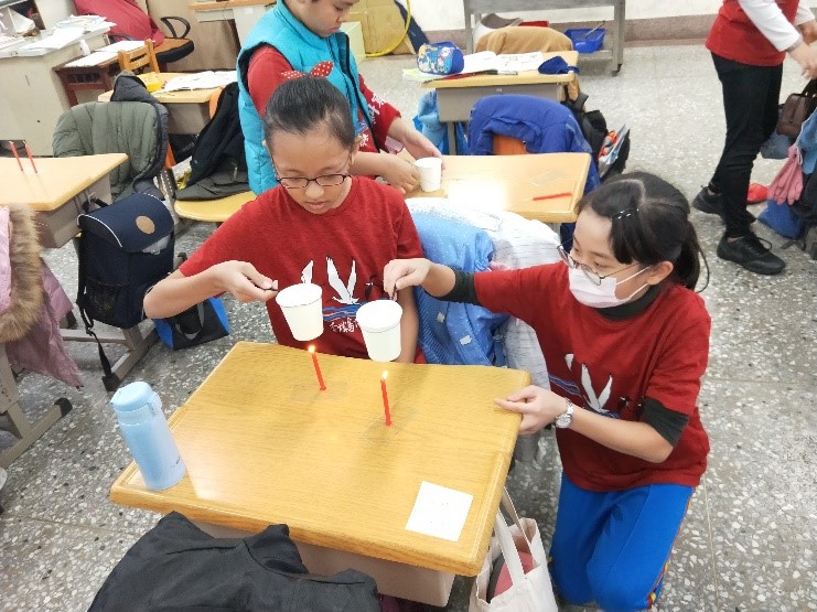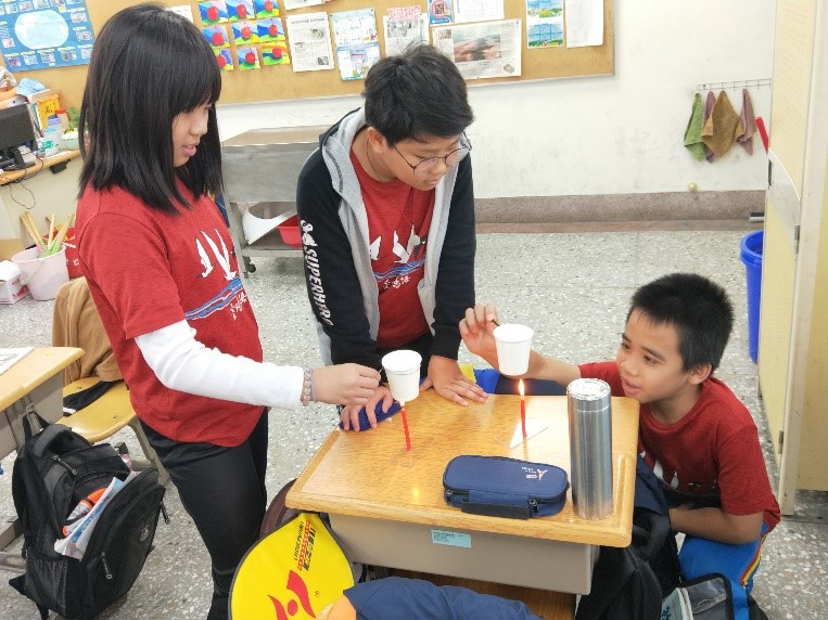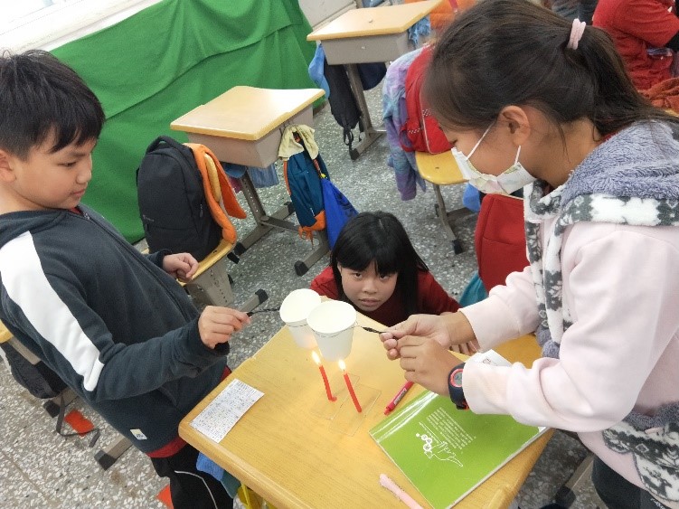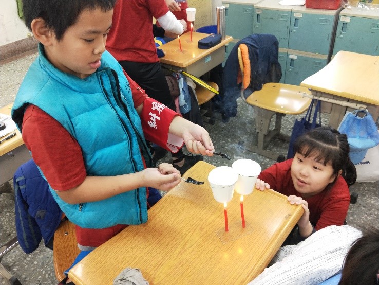 從紙火鍋的創意中,來學習燃燒需要達到燃點:相同紙杯中,一杯加入水,另一杯為空紙杯,同時加熱,觀察有什麼不同呢?學生在進行實驗中,可以了解到:水會吸收熱,因此紙杯達到燃點的時間較慢。