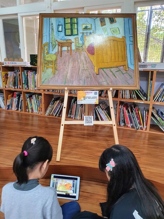 感謝廣達文教基金會讓孩子們有機會一起走進「梵谷」的世界。在玲芳主任、孟宣主任、育慈老師、毓真老師、宜慧老師、圖書館慧雯老師以及雯雯老師與志工團夥伴們共同籌畫指導之下,展開一系列藝術課程饗宴,從別出心裁的開幕戲劇展演(梵谷的畫世界)、志工夥伴到各班分享梵谷生平、六甲孩子擔任畫作導覽小尖兵、藝文課繪製自畫像與集體創作茄人的臥室立體模型屋(仿作在阿爾的臥室)、資訊課錄製導覽影片以及製作梵谷畫作數位拼圖,提供一到五年級孩子聆賞以及闖關。梵谷的畫離不開生活,充分表達出內心的感受,透過導覽課程與賞析,孩子們從梵谷的畫作中認識19世紀荷蘭勞工與農民的生活景象,不同的表現技法呈現出不同的感受,也了解了梵谷短暫傳奇、熱愛藝術卻懷才不遇的一生。