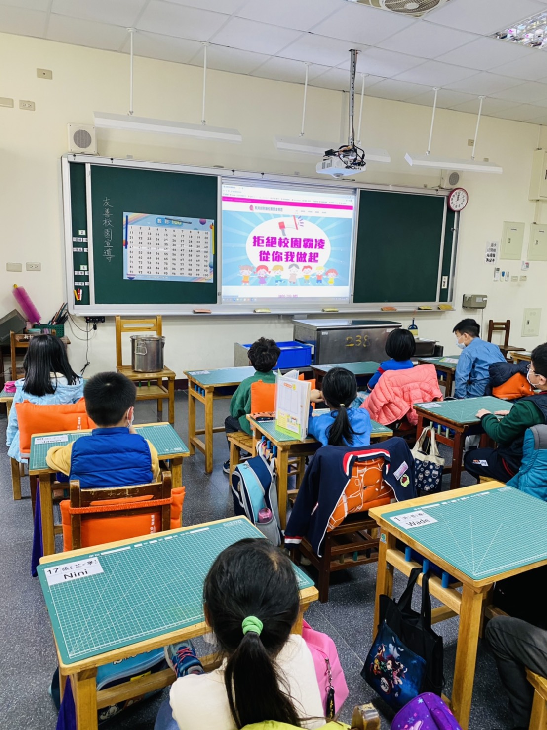 今天是新竹國小109學年下學期開學典禮暨友善校園週,由新竹國小大家長張淑玲校長、林淑娟主任帶領著全校師生一起做反毒、反色、反霸凌宣導活動,各班導師利用晨間活動時間在教室利用影片加深小朋友對反毒、反霸凌的知能,讓小朋友對於毒品、網路暴力的認知,讓自己可以遠離危險環境,並在竹小共同營造一個安全又舒適的友善學習環境。