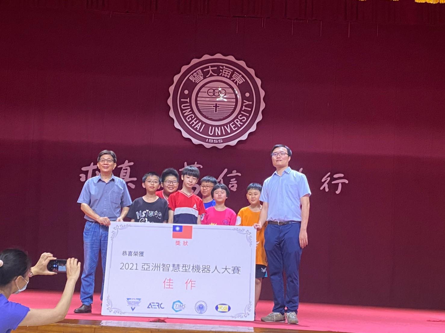 5/8香山的9位孩子前往台中東海大學參加2021年亞洲智慧型機器人大賽,歷經一整日的行程,在全國三十幾隊中,奪得了第二名和佳作的好成績。