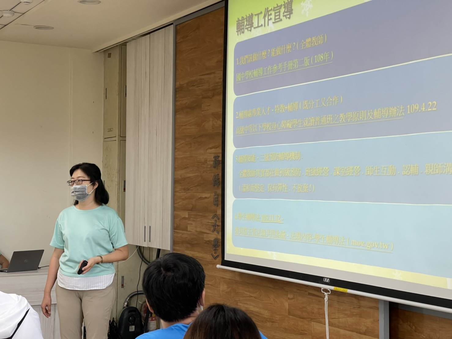 於110年05月15日由輔導主任對全校教職員分享學校三級輔導的概念,強化初級輔導的功能,並說明本校的個案輔導轉介流程,讓輔導機制能夠協助學校老師針對學生的狀況提供不同的處遇方式。最後也提醒老師撰寫輔導紀錄時的基本原則,讓老師們能夠用簡潔且客觀的方式記錄下學生的在校情形!
