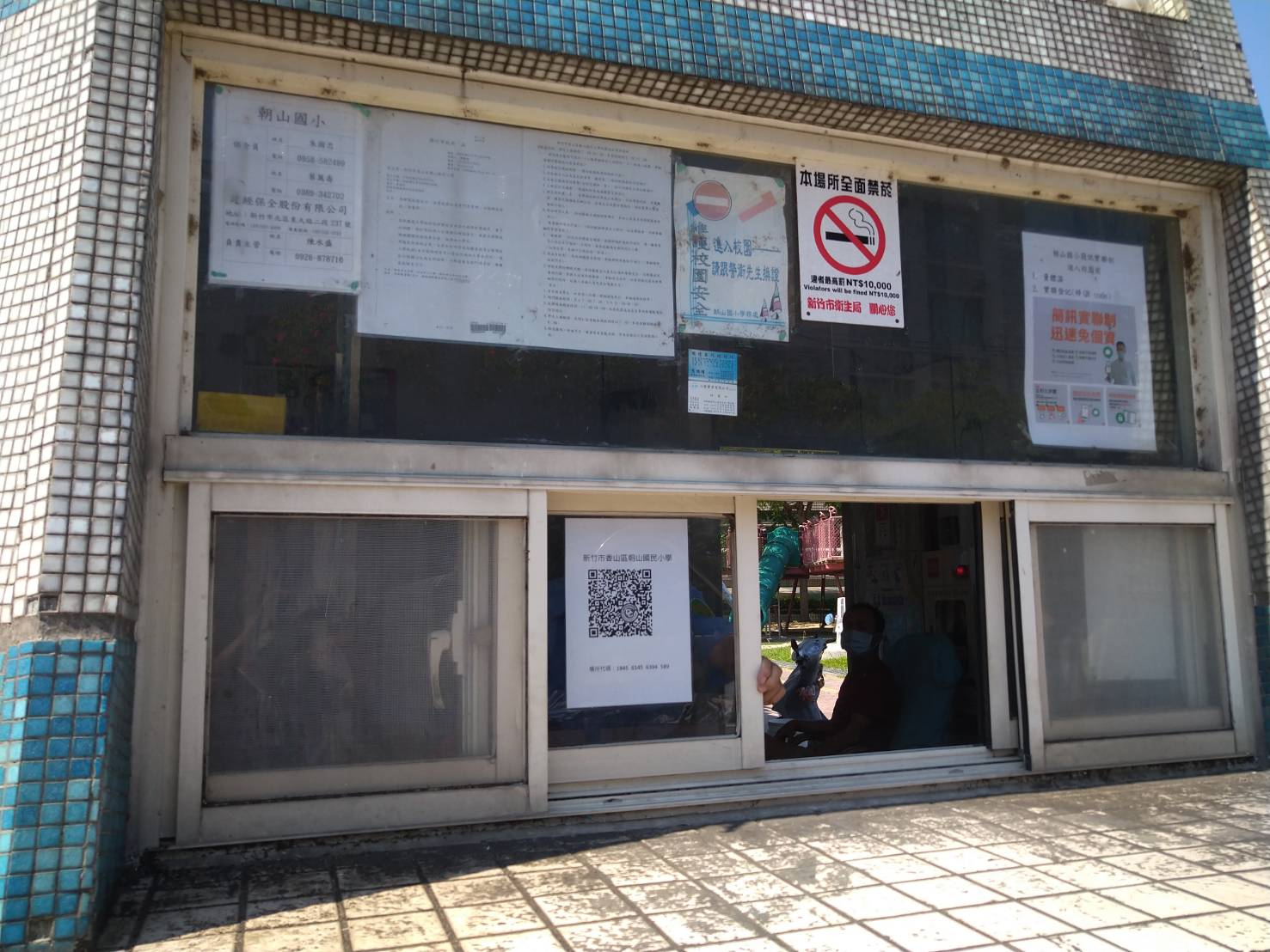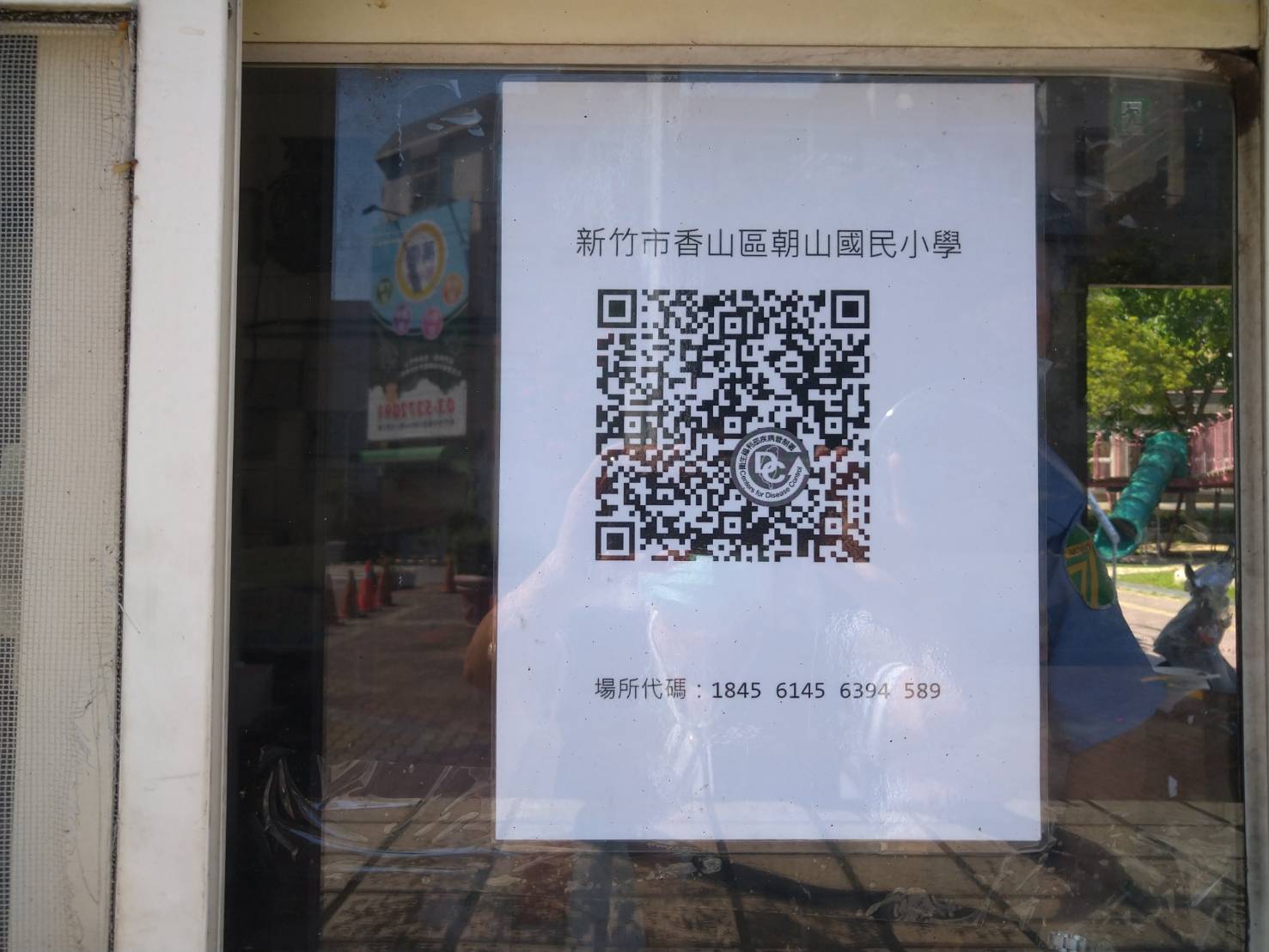 因應防疫升級,朝山國小實施訪客實聯制,到校洽公的人員,可以在警衛室前以個人手機掃描QRcode,避免使用公用筆填寫資料造成防疫上的疑慮,落實學校的防疫措施。