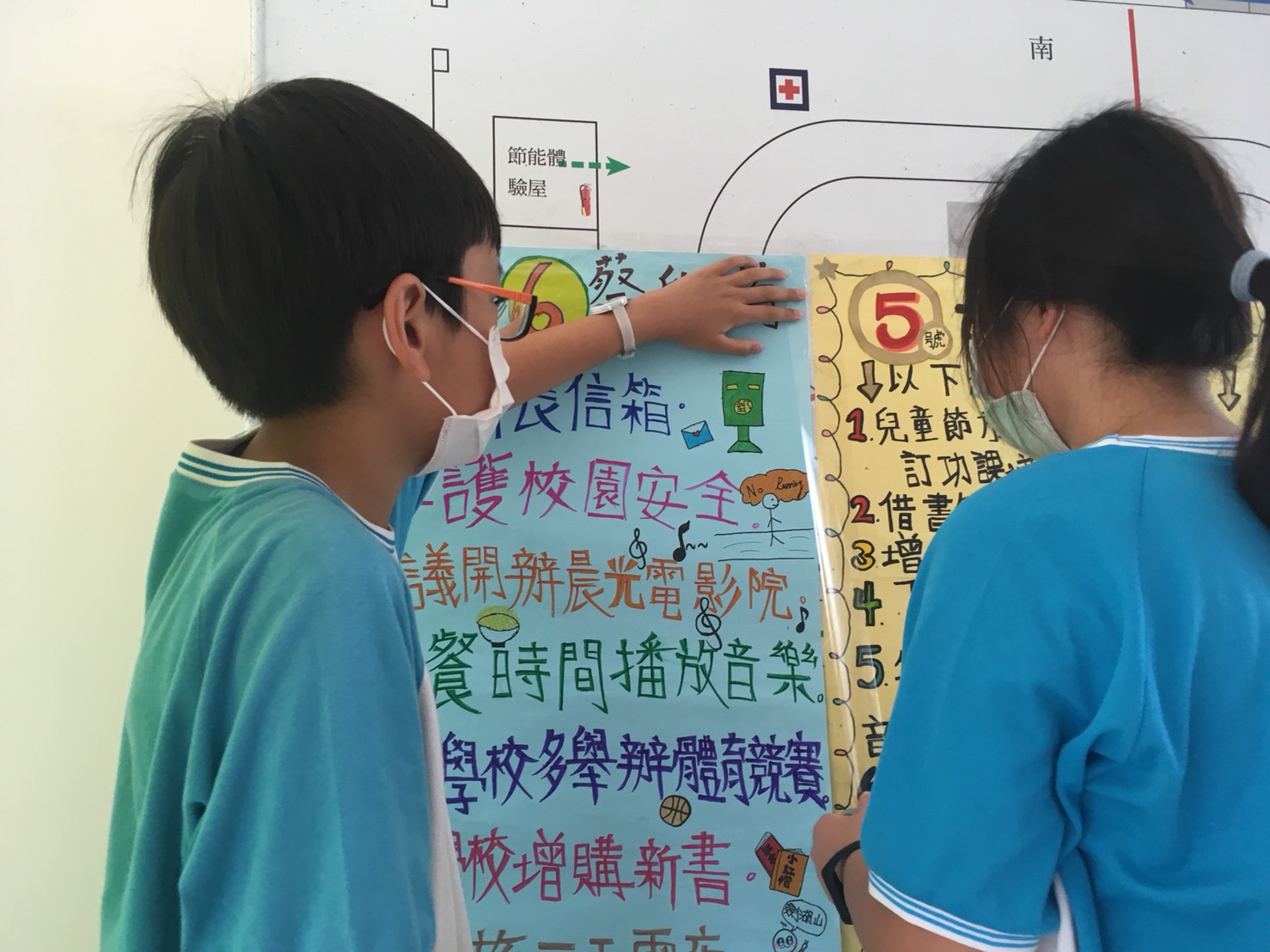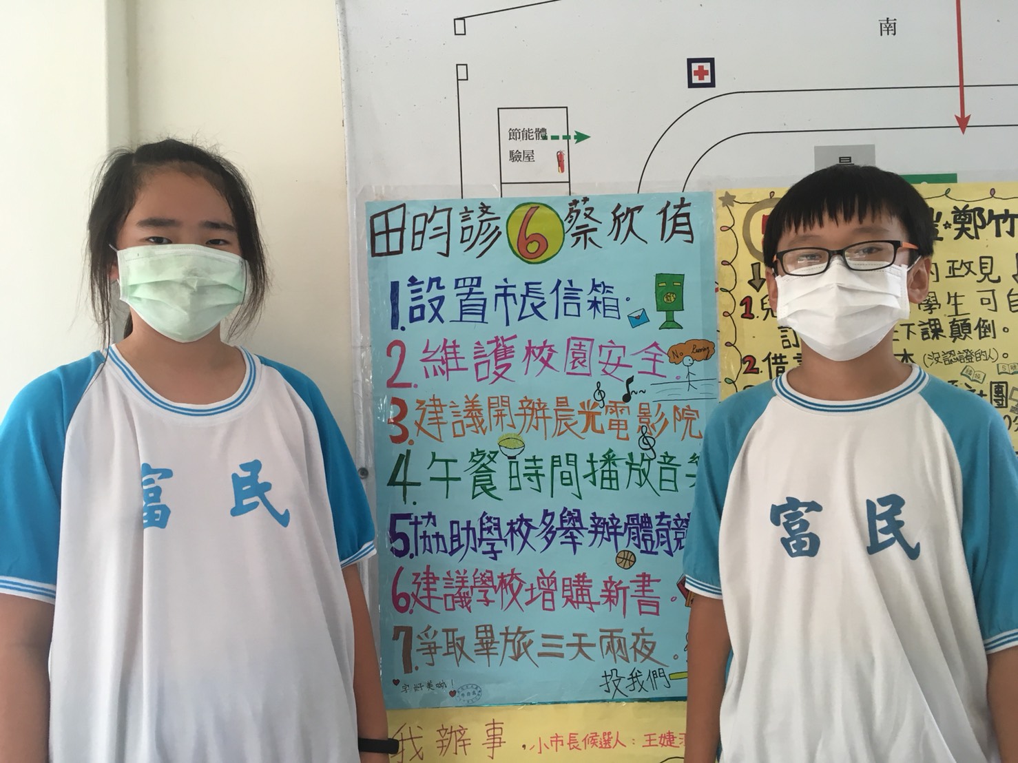 6號候選人--五年二班田昀諺、蔡欣侑提出的政見如下: