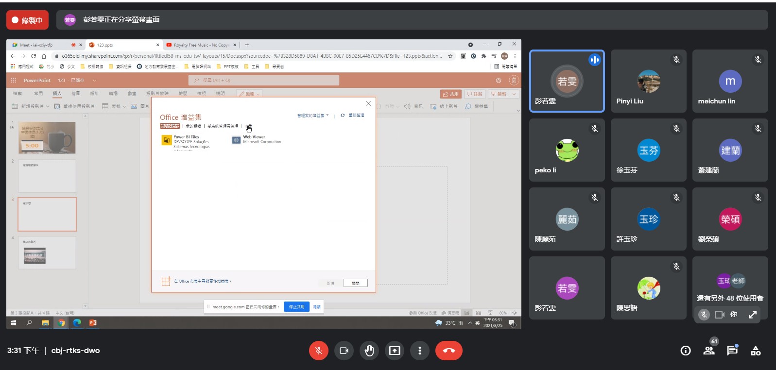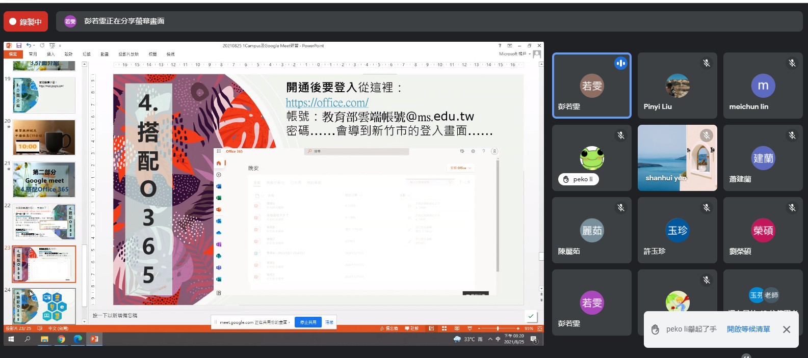 (4)Google meet使用線上版O365解決音訊與畫面切換問題(音樂、影片、電子書)