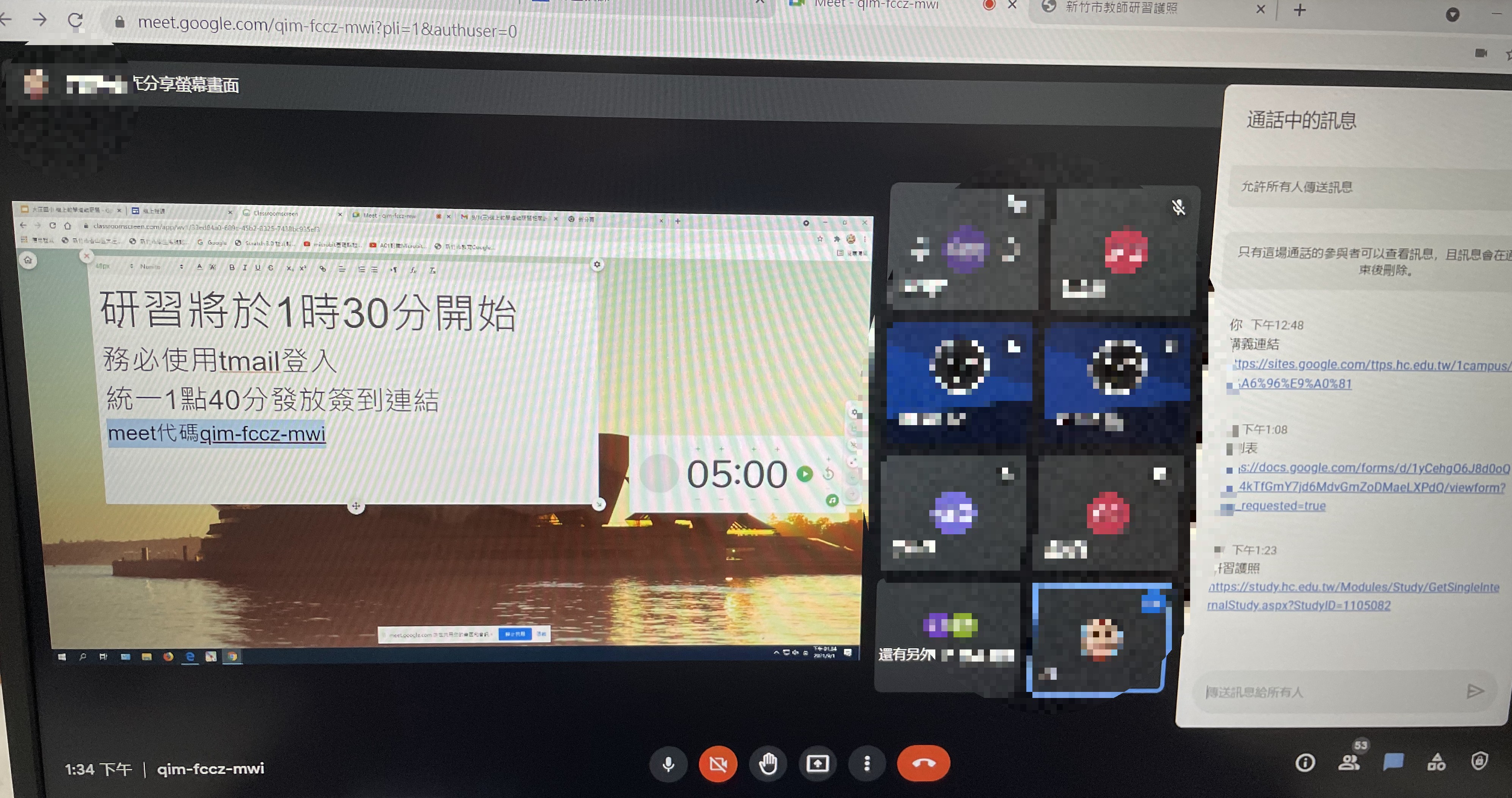 課程採線上會議模式辦理,內容為:新竹市1campus學習平台之建立與運用、Google Meet及Google Classroom之操作、線上教學常見問題與解決。
