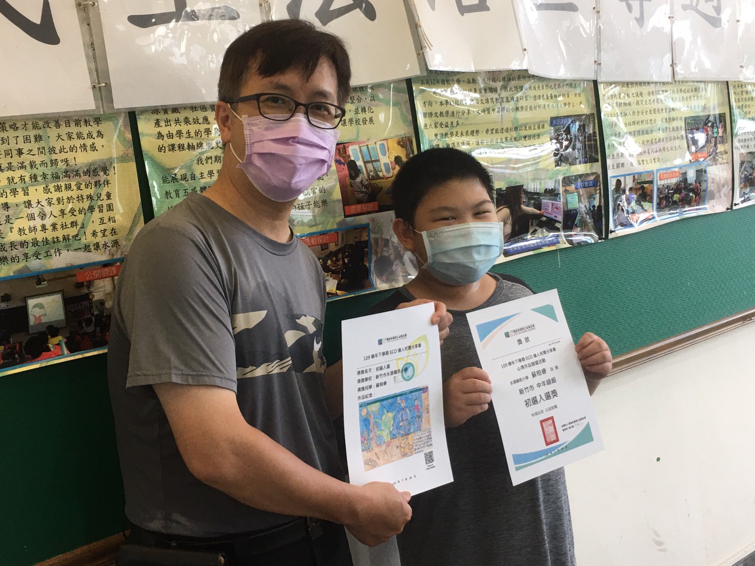 蘇柏睿小朋友參加109學年度下學期ECO達人校園分享會心得作品徵選活動初選入圍。利用今天學生朝會頒獎。