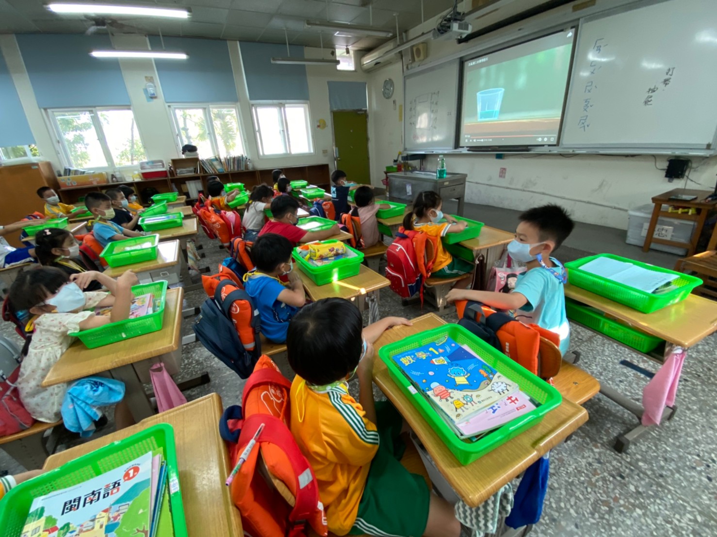 在小一新生班級中,也由護理師入班進行口腔保健的教學活動,透過全國牙醫師公會所提供的宣導影片,將含氟漱口水操作步驟逐一分解及說明,讓港南孩童小小保護牙 老來不缺牙。