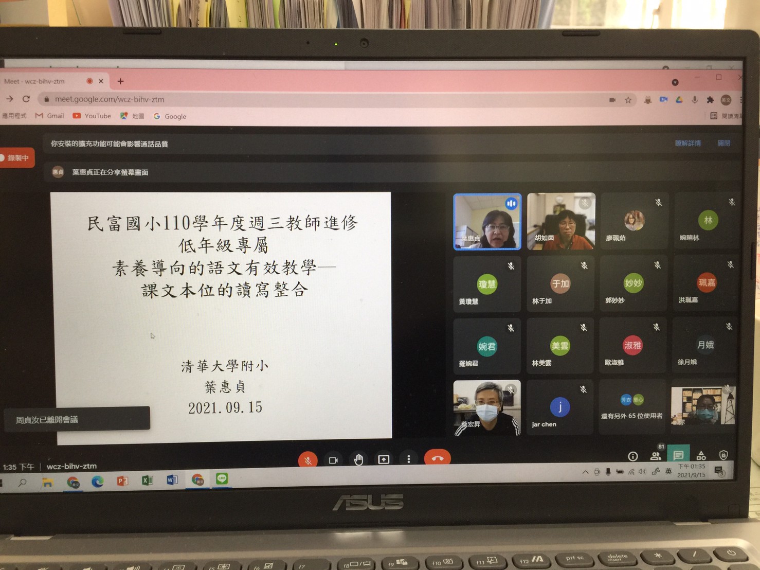今日下午1:30我們邀請清華附小葉惠貞老師線上分享「低年級國語文素養導向教學」,線上同時參與的老師高達91位,葉老師分享教學現場如何進行讀、寫教學,教科書也是最好運用的素材,透過老師的引導,學生的表現,往往令人驚艷不已,期待大家一起動起來,耕耘教育這美好的園地!
