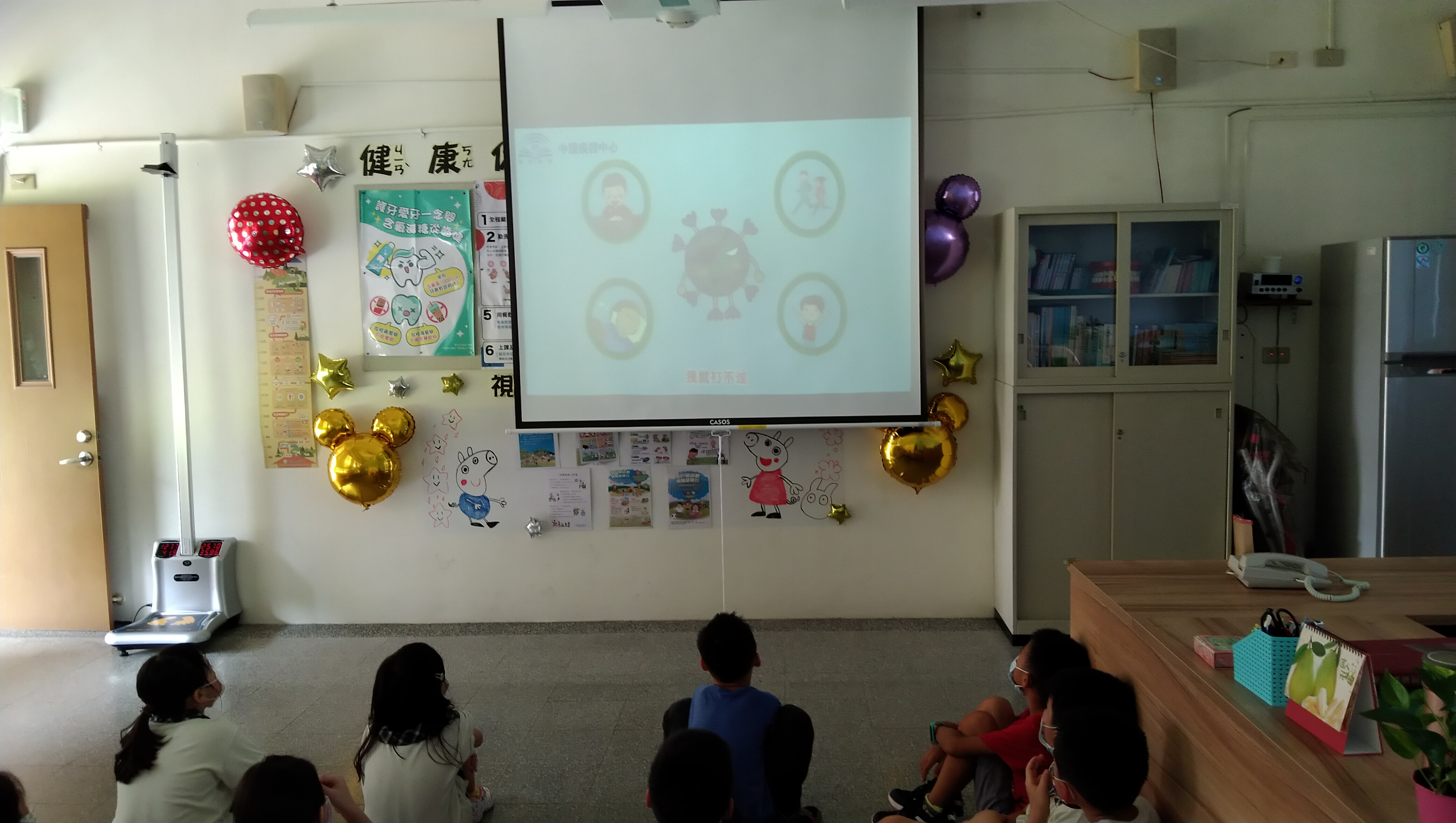 2020年初起,新冠肺炎造成各國災情,也使人們產生恐慌,因此在期初健康檢查時便進行相關的知識宣導,影片透過女孩與病毒一來一往的問答將人們對於該疾病的各種疑問逐一解釋說明,淺顯易懂的向學童講述新冠肺炎的整體情況。也提醒學童要注意做好防護。