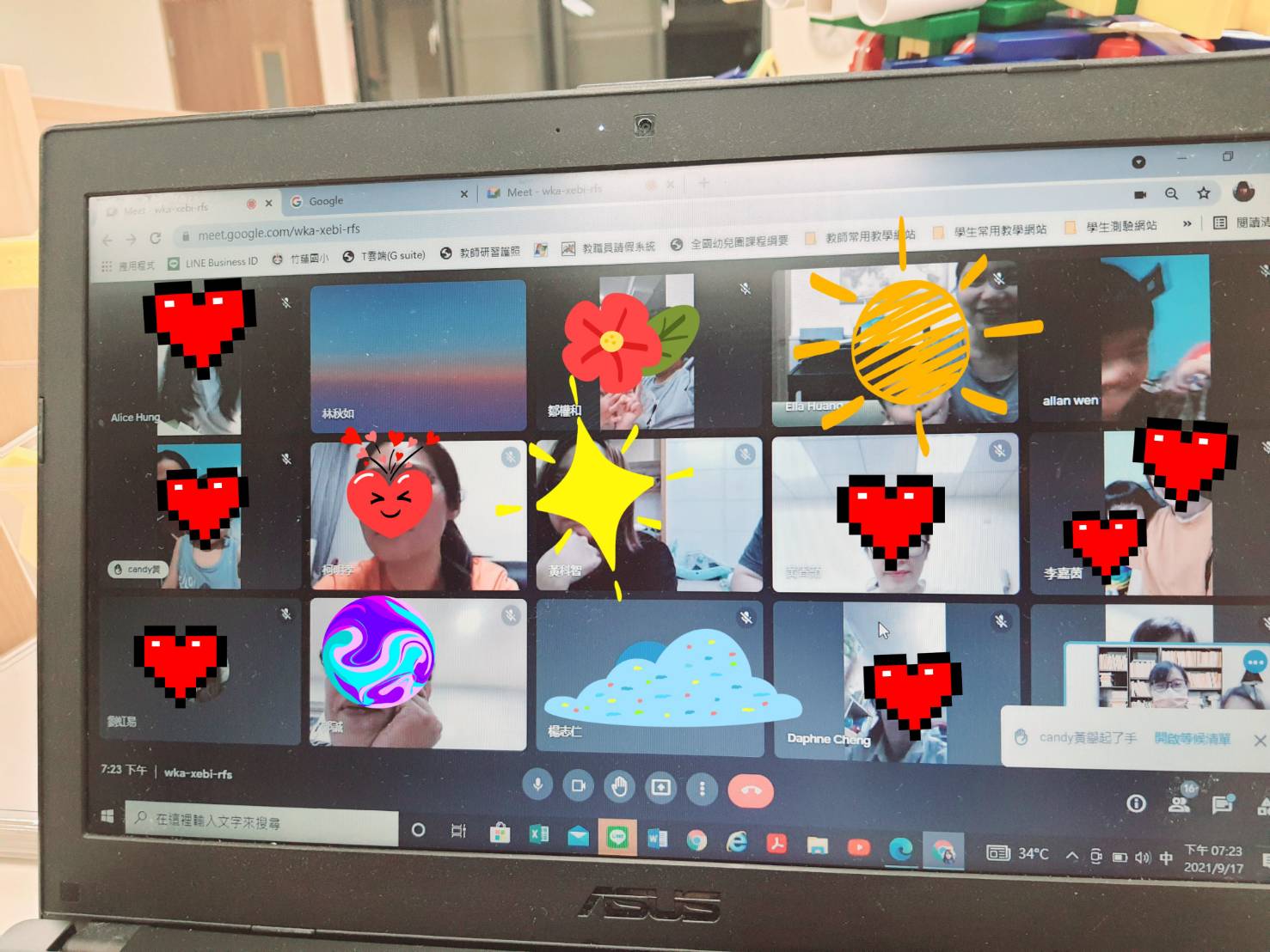 由於疫情的關係,今年的班親會改為線上模式。雖然少了親師面對面溝通的機會,好在因為家長需要親自接送小孩,親師每天還是有機會可以當面溝通,各班也有班群隨時可與家長傳送訊息,保持良好的溝通管道。雖然是現上會議,不過家長還是很準時的上線,聽取園務及教保業務的相關報告,儘管是線上會議,但很感謝家長的支持,上線率很高,校長及主任們也很熱情的逐間教室探班打氣,有了來自行政端與家長的配合與支持,相信老師依定能傾全力給孩子最優質的學習品質。110年度第一學期線上班親會圓滿結束!