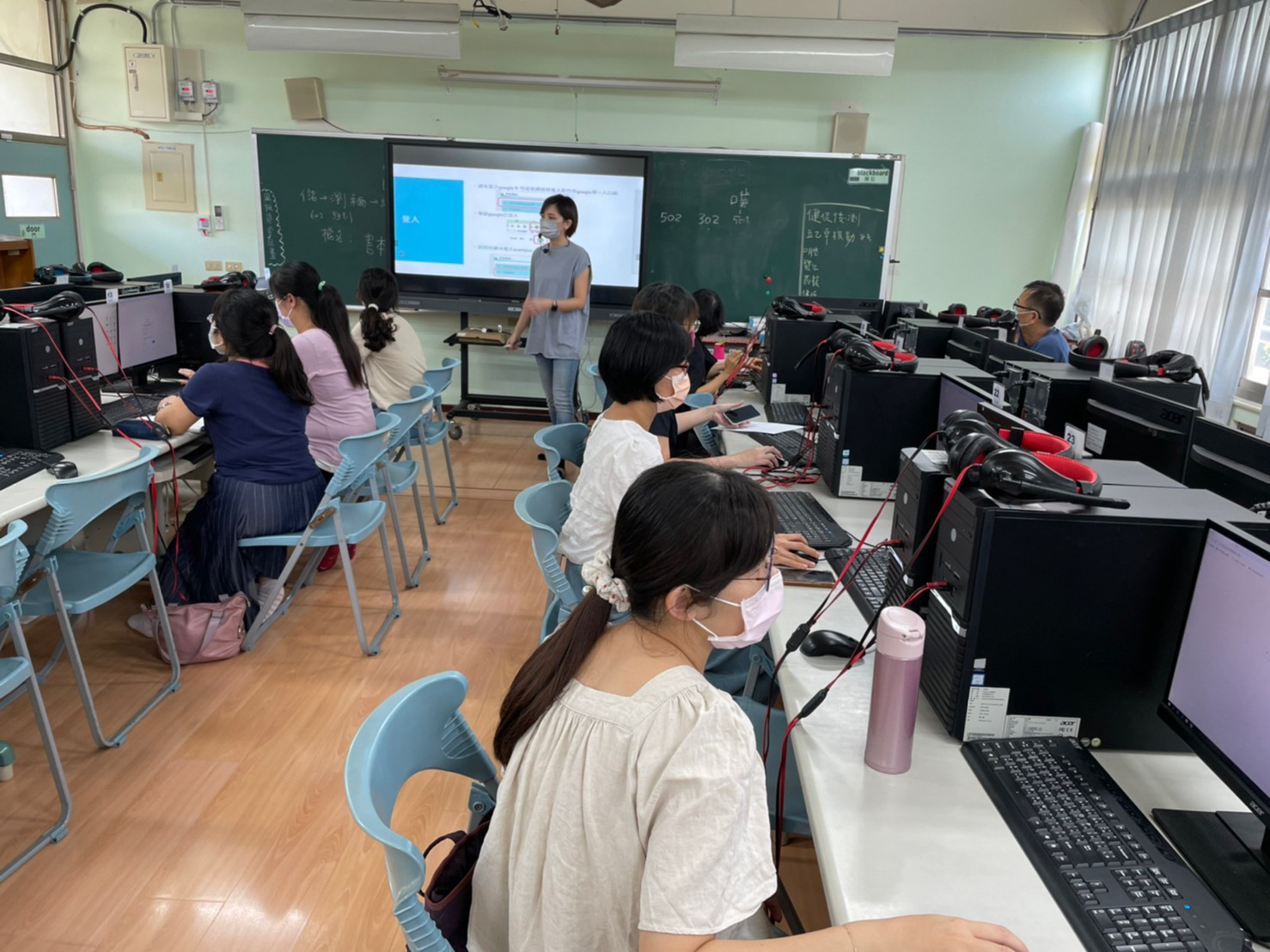 老師們經歷了之前停課的慌亂日子,各個練出一身線上教學的基本能力,回到實體課程後,經過市府提供的1campus整合系統,藉由這次研習,整合了之前以及現在的線上上教室。