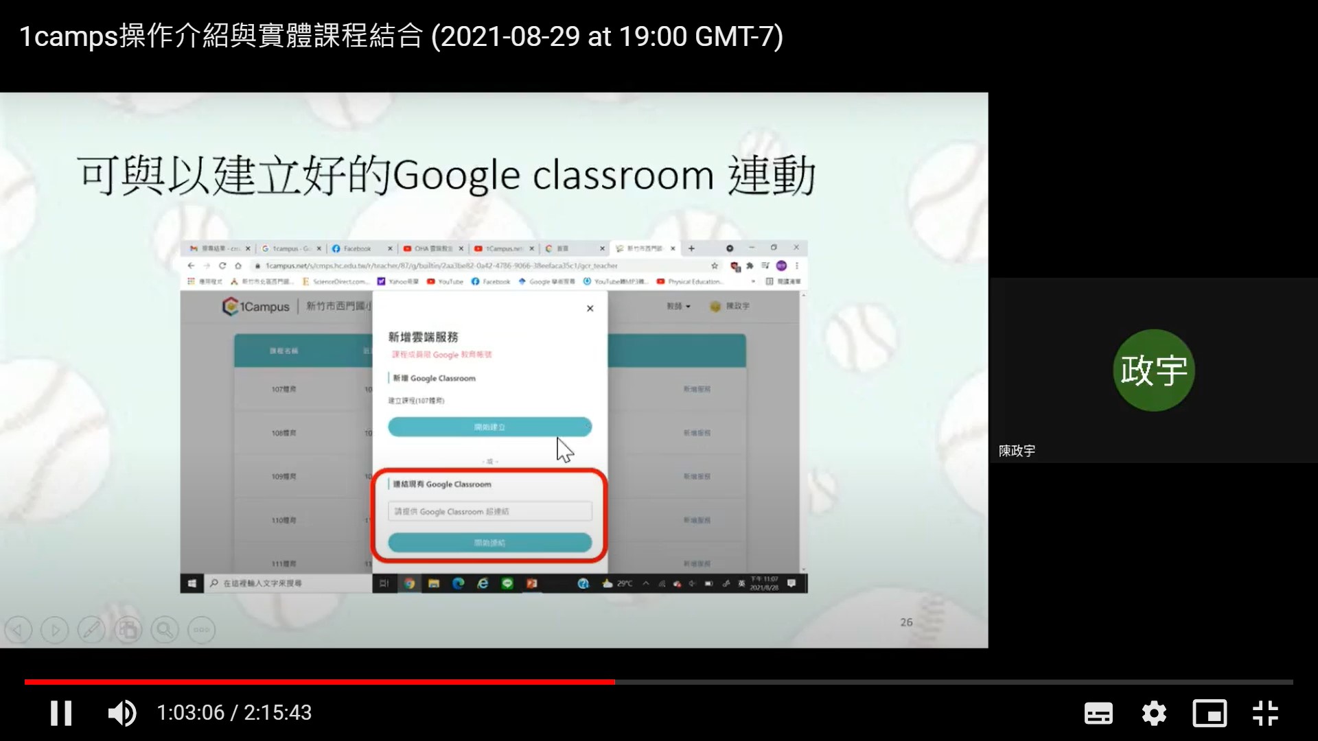 從一開始的教師與學生的帳號設定、CSV檔轉成Google表單、Jamboard應用、其他Google小程式的融入,最後介紹1campus。