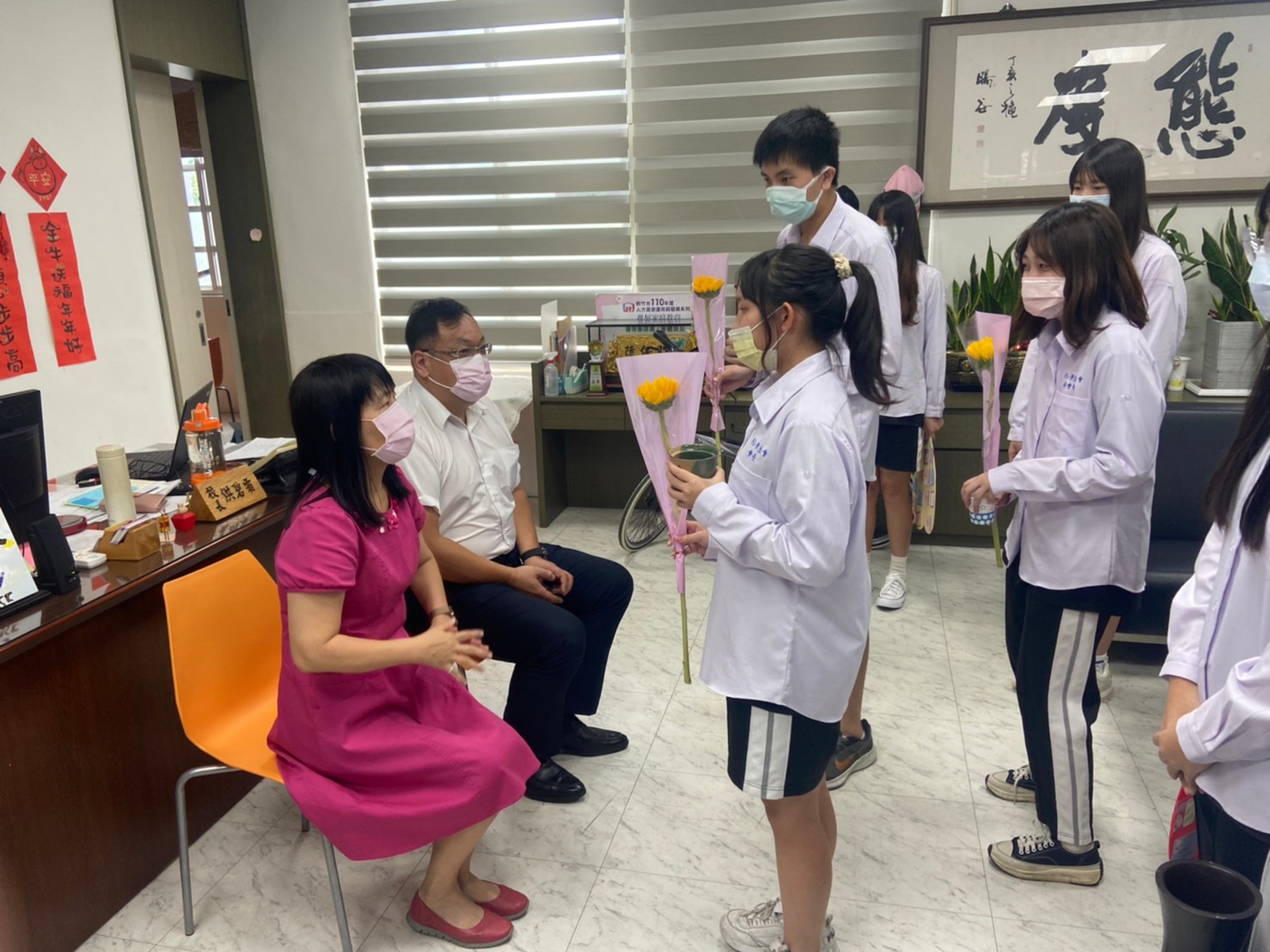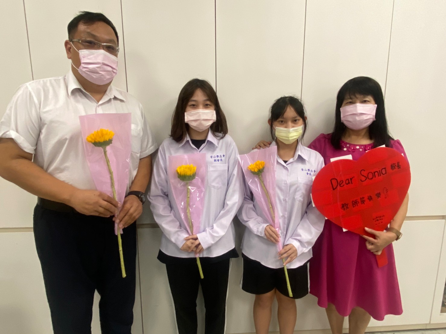 教師節學生會代表香中全校學生向教師進行敬師奉茶活動,更準備了向日葵送給全校老師以表敬意,讓教師與學生可以分享滿滿的喜悅,繼續迎接未來的教與學。